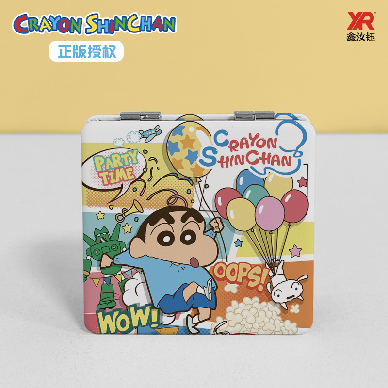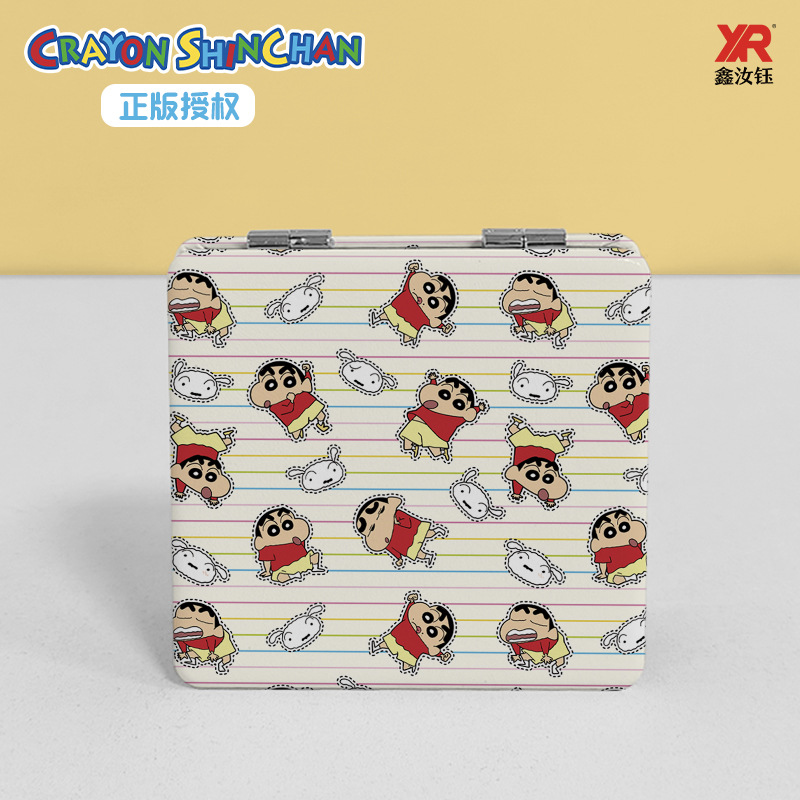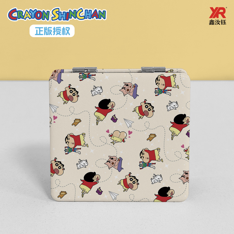 Cermin Rias Tangan Crayon Shin-chan Asli Cermin Rias Dua Sisi Mini Portabel Portabel Model Wanita Asrama Pelajar