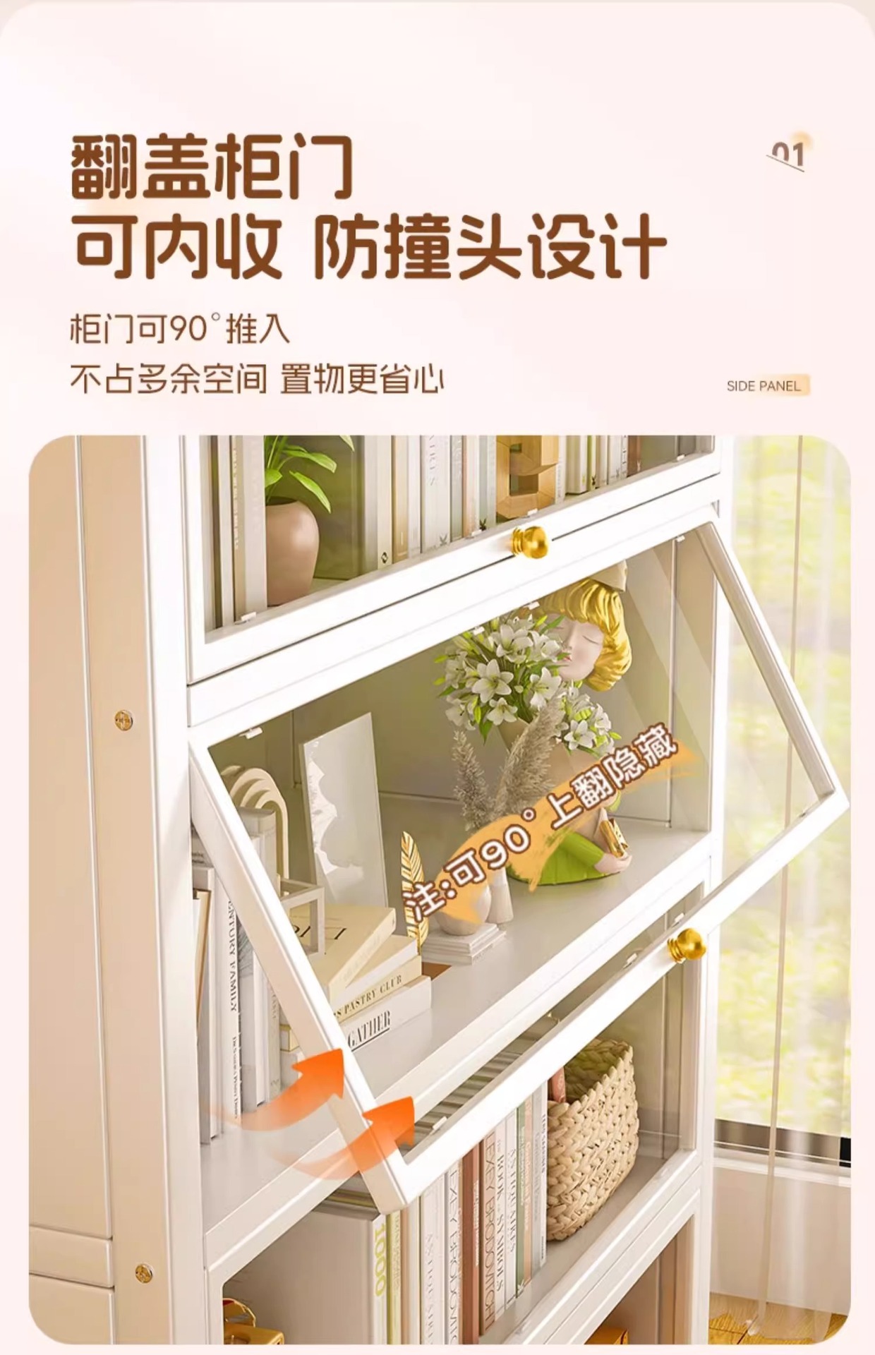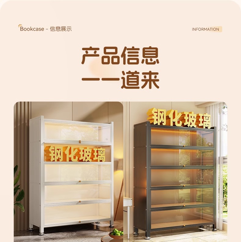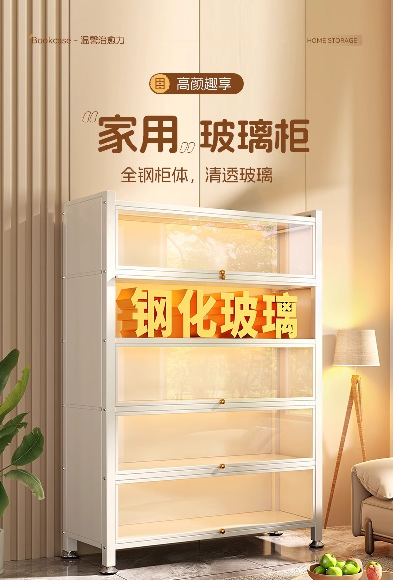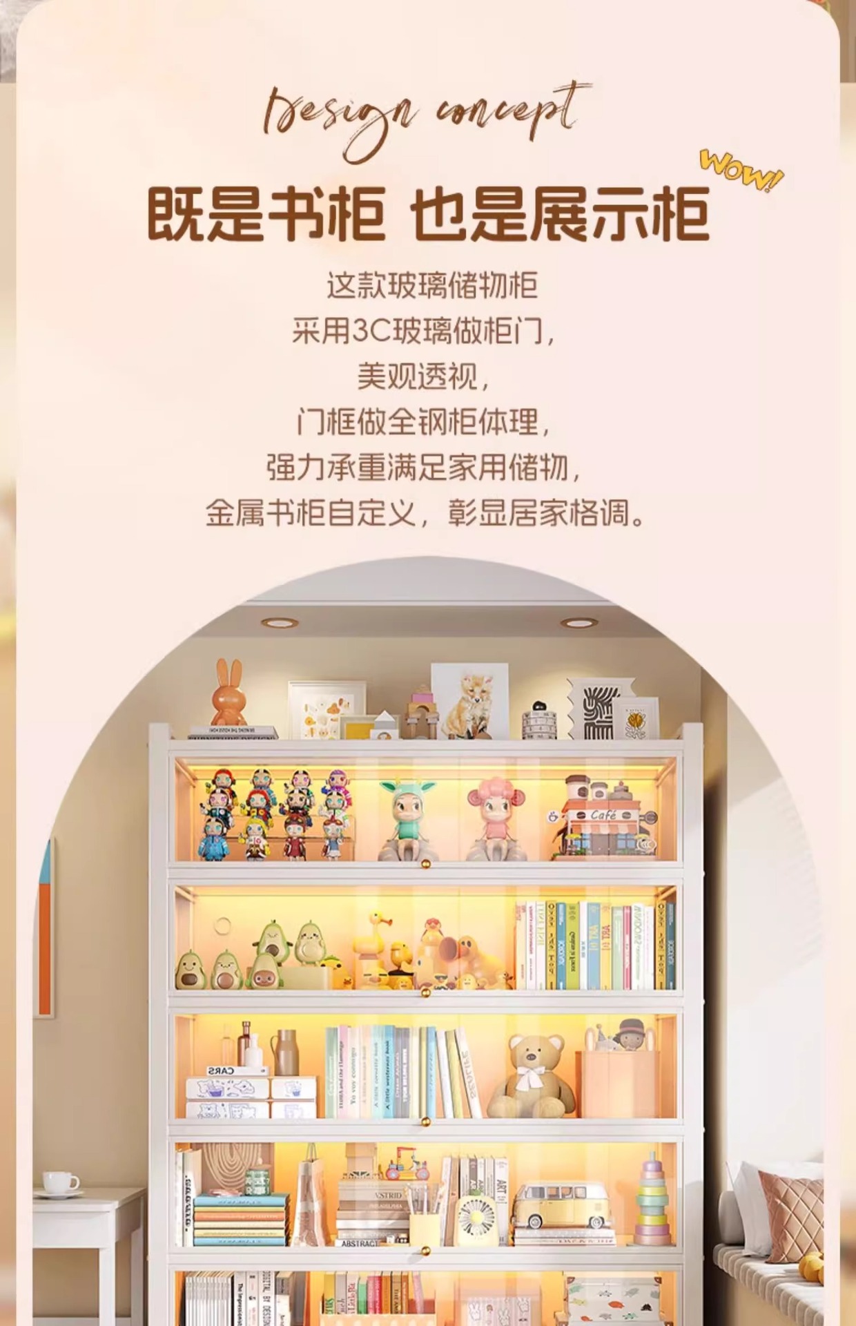 Rak buku baja dengan kaca pintu rak buku lantai tahan debu rak pajangan tangan besi rak penyimpanan lemari penyimpanan rumah tangga