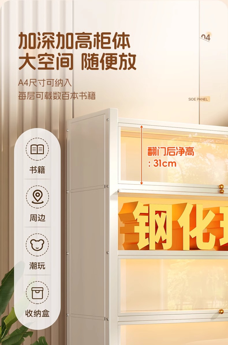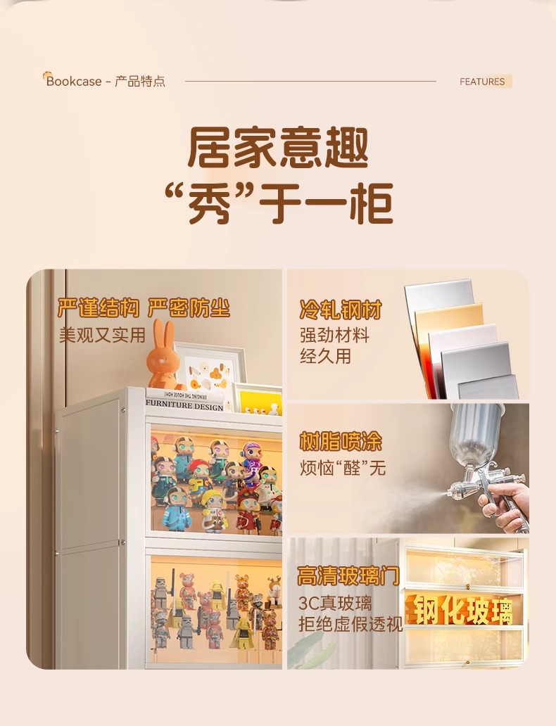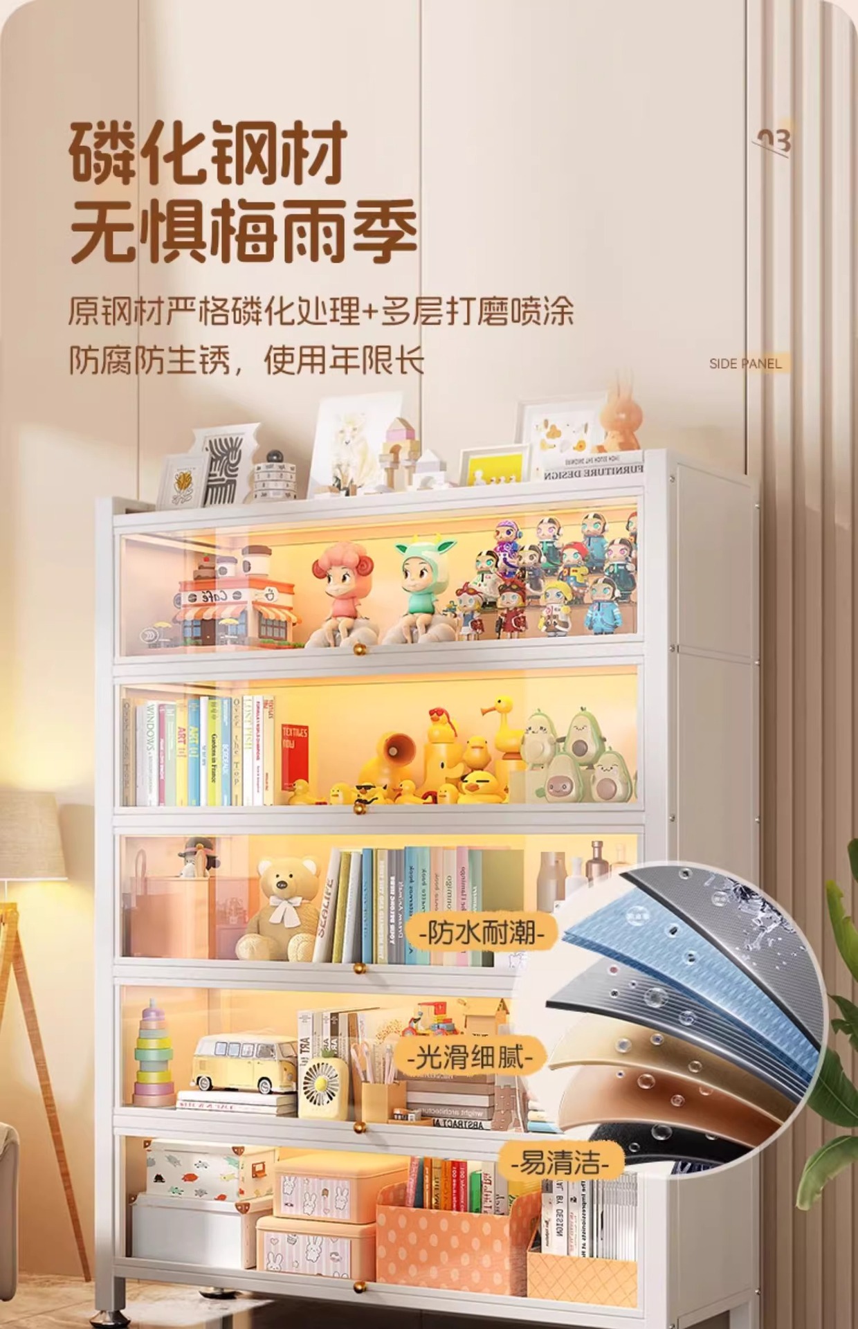 Rak buku baja dengan kaca pintu rak buku lantai tahan debu rak pajangan tangan besi rak penyimpanan lemari penyimpanan rumah tangga