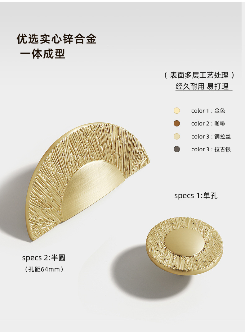 Aksesori Perangkat Keras Pegangan Pintu Lemari Lemari Pakaian Mewah Ringan dengan Laci Bentuk Bulat Warna Emas