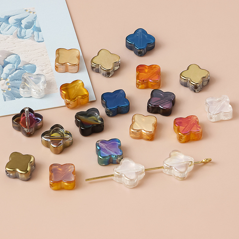 10mm manik-manik longgar lapis semanggi warna-warni manik-manik lubang lurus DIY manik-manik buatan tangan kalung bahan aksesoris buatan tangan