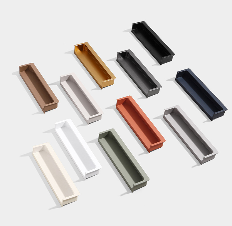 Panel pintu lemari pakaian tertanam pegangan Tidak terlihat minimalis ringan mewah pintu kabinet putih warna sama pegangan gelap kasmir abu-abu pegangan panjang