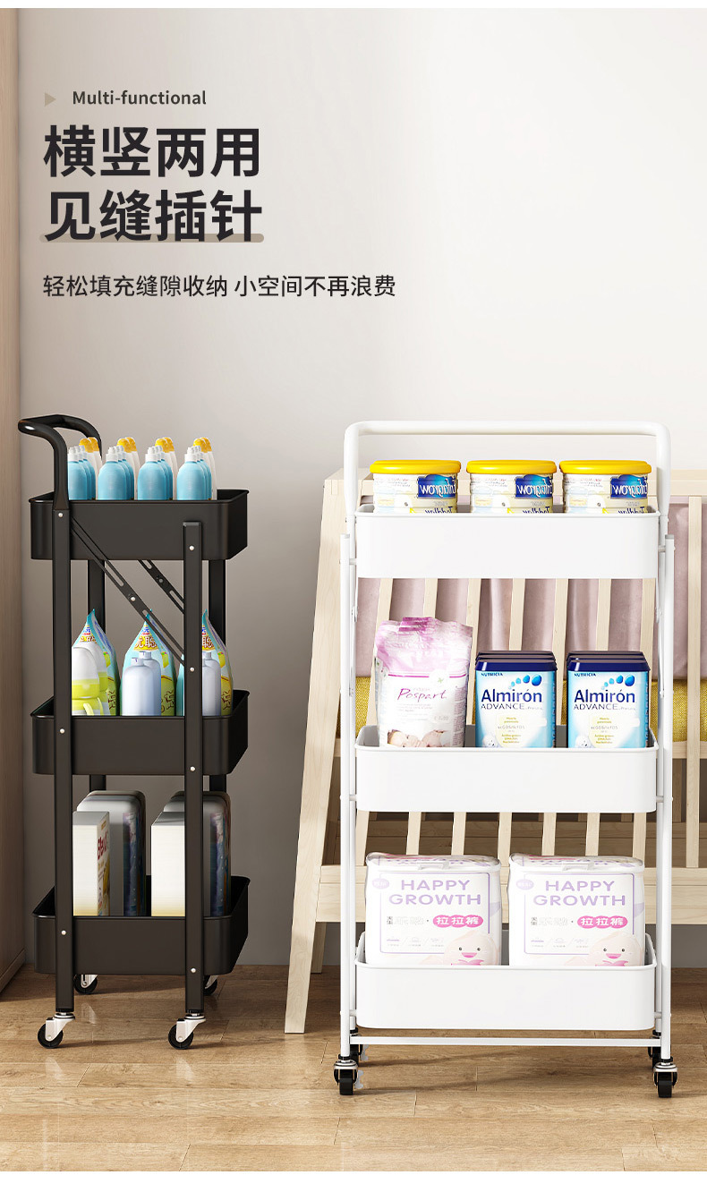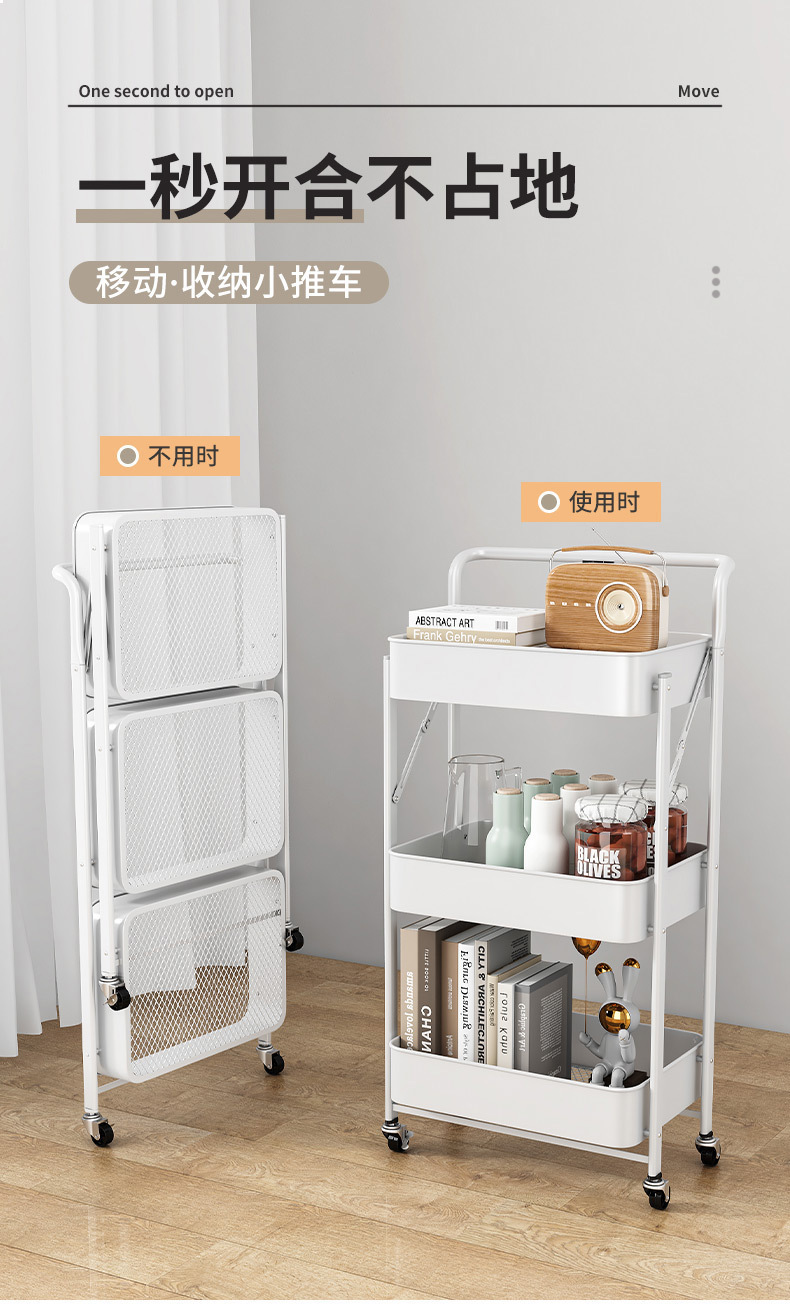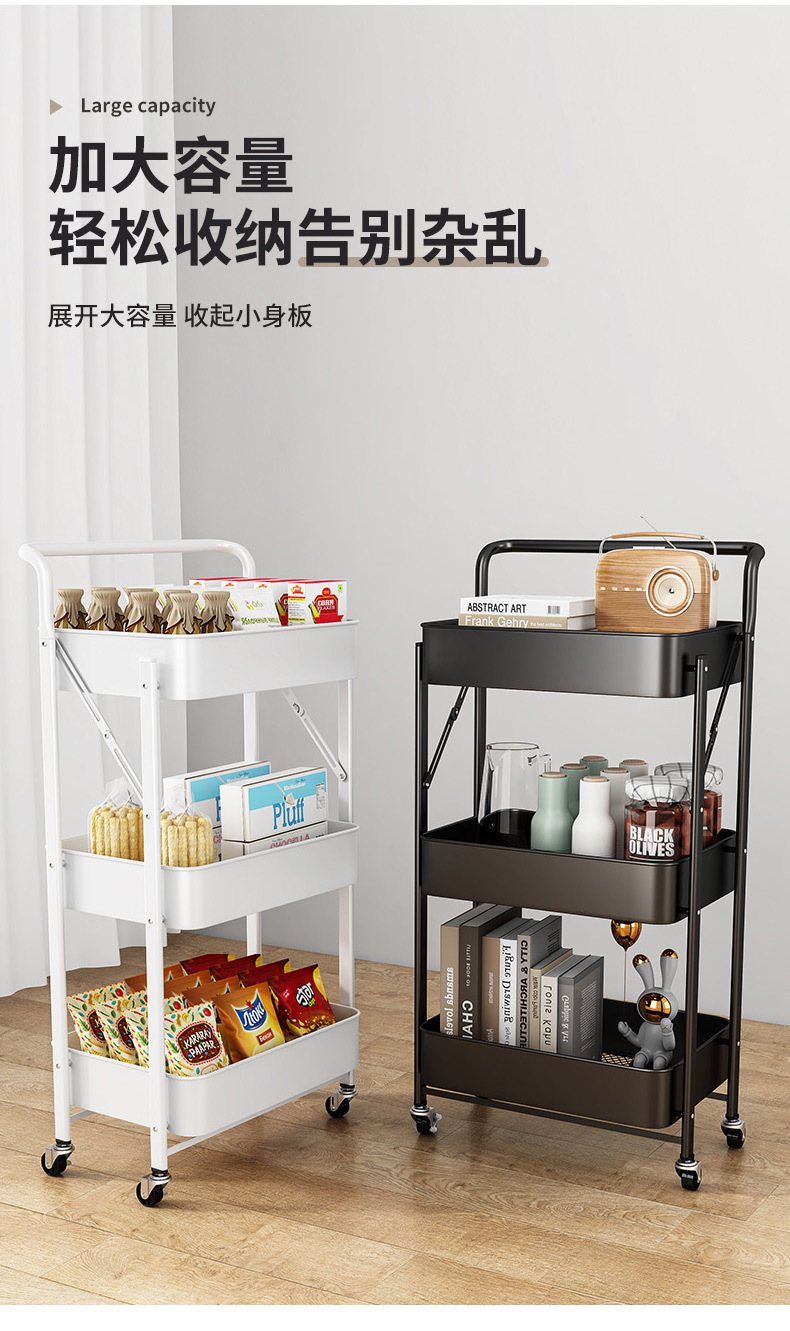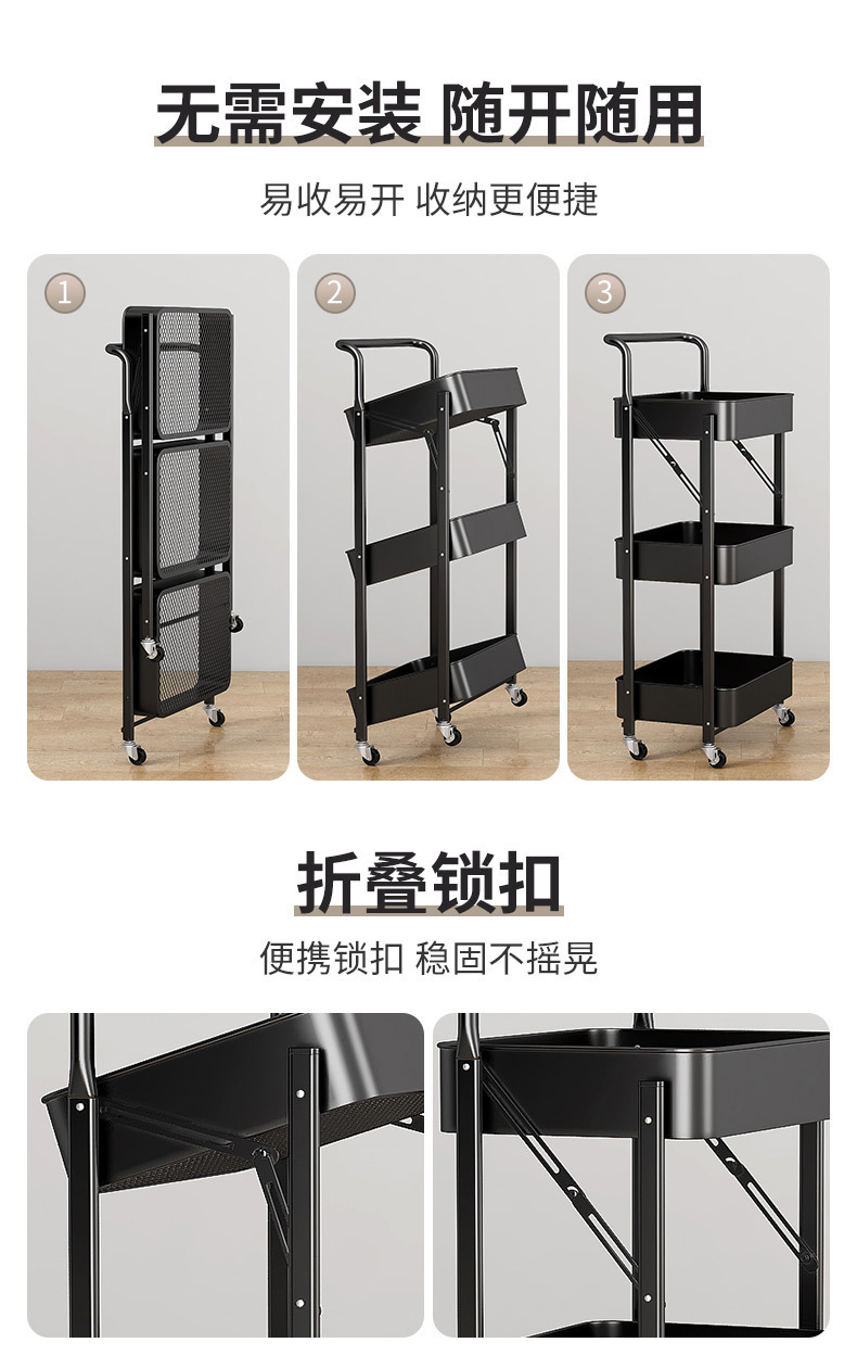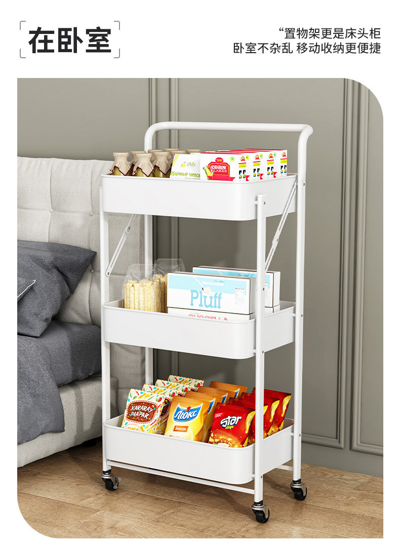 Rak Lipat Rak Penyimpanan Banyak Lapisan Troli Kecil Rak Penyimpanan Makanan Ringan Rak Penyimpanan Dapat Dipindahkan Tanpa Pemasangan