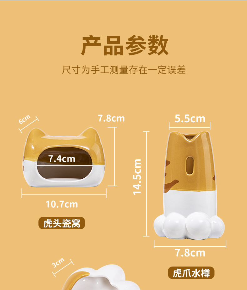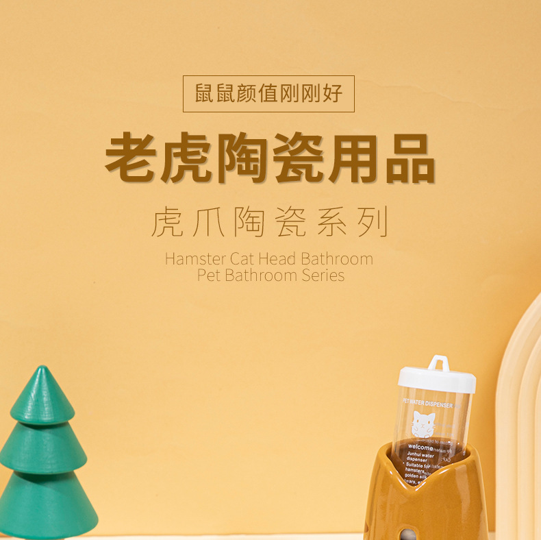 Mangkuk porselen kepala beruang emas, setelan perlengkapan hewan piaraan keramik botol air cakar macan kepala beruang emas rumah tersembunyi sarang porselen