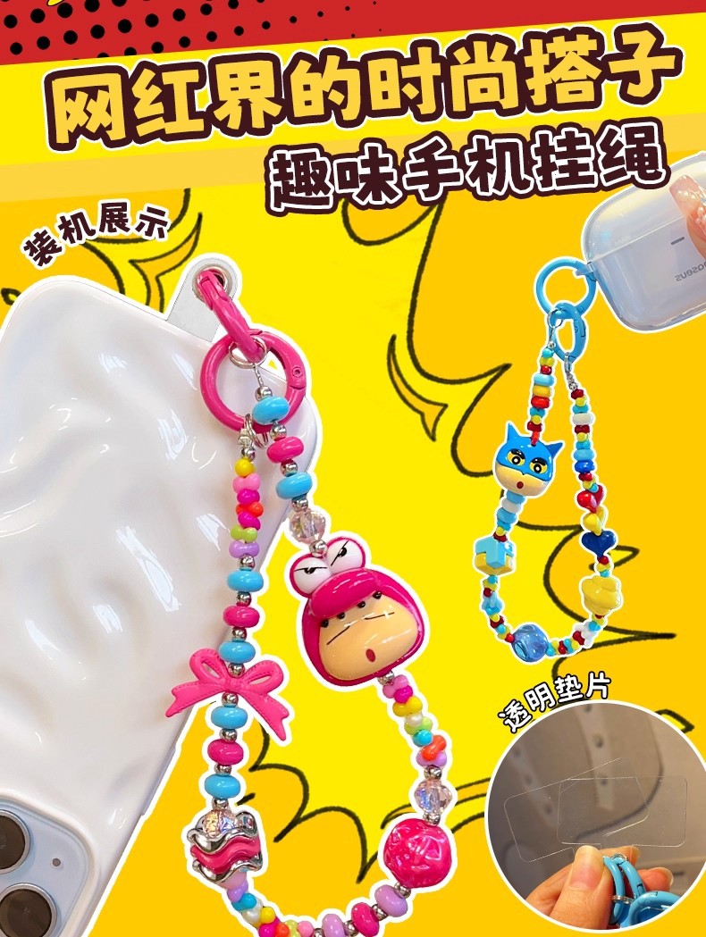 正版蜡笔小新系列手机链汽车钥匙扣包包挂件多功能解压玩具挂饰