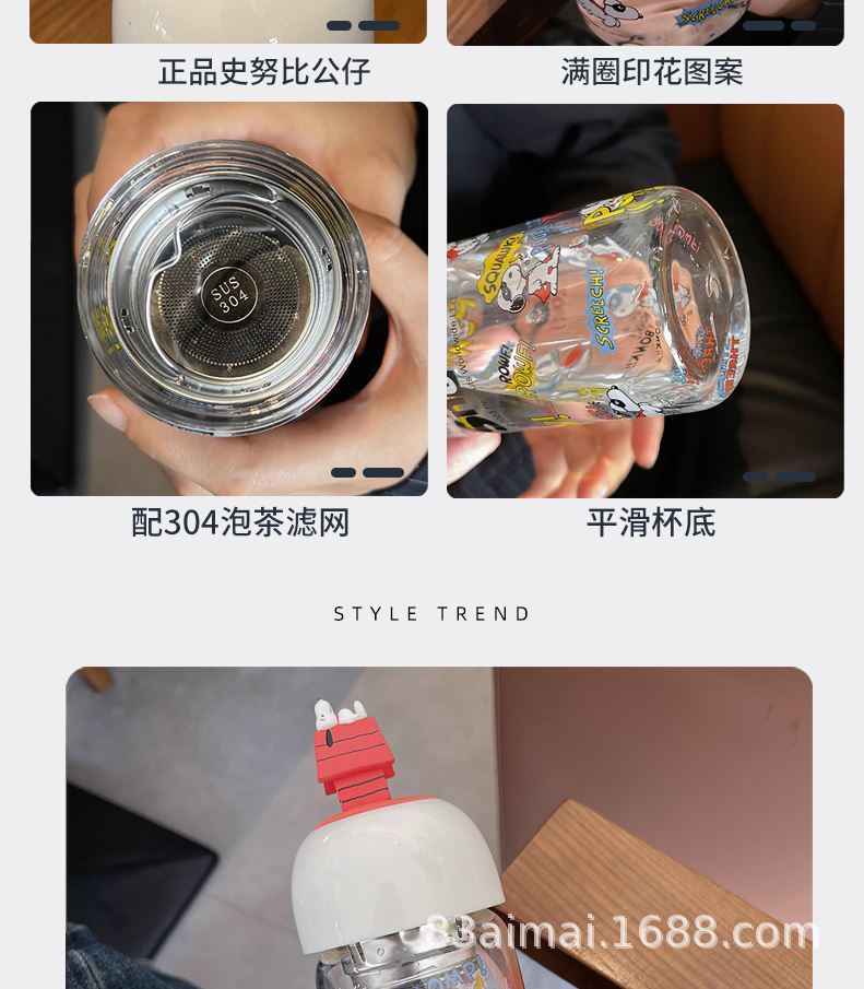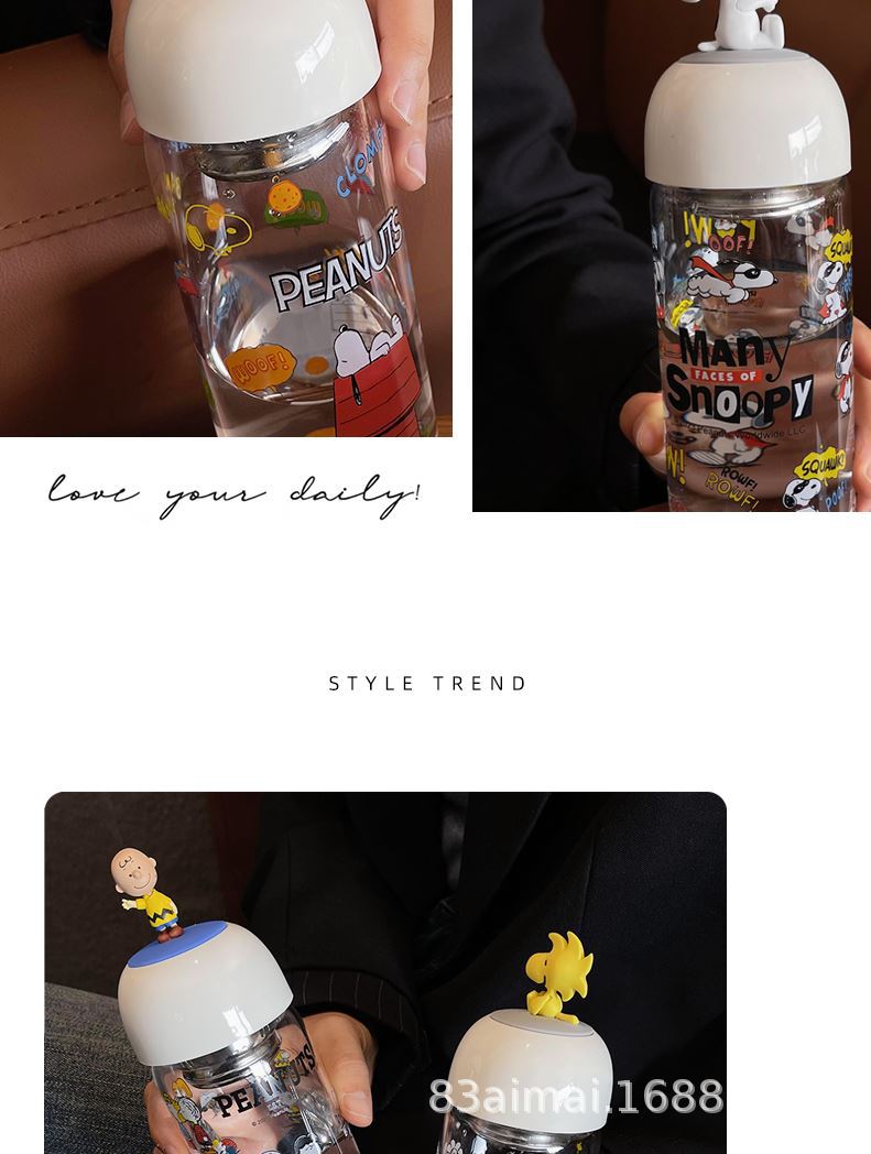 Gelas kecil anak perempuan, snoopy, teh pemisah kaca, cangkir susu, kopi borosilikat