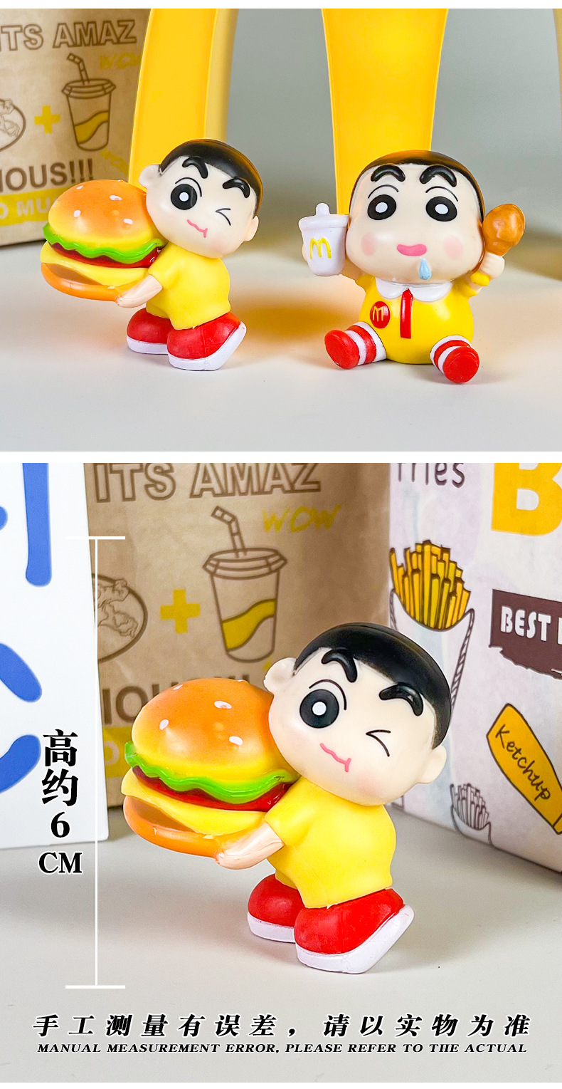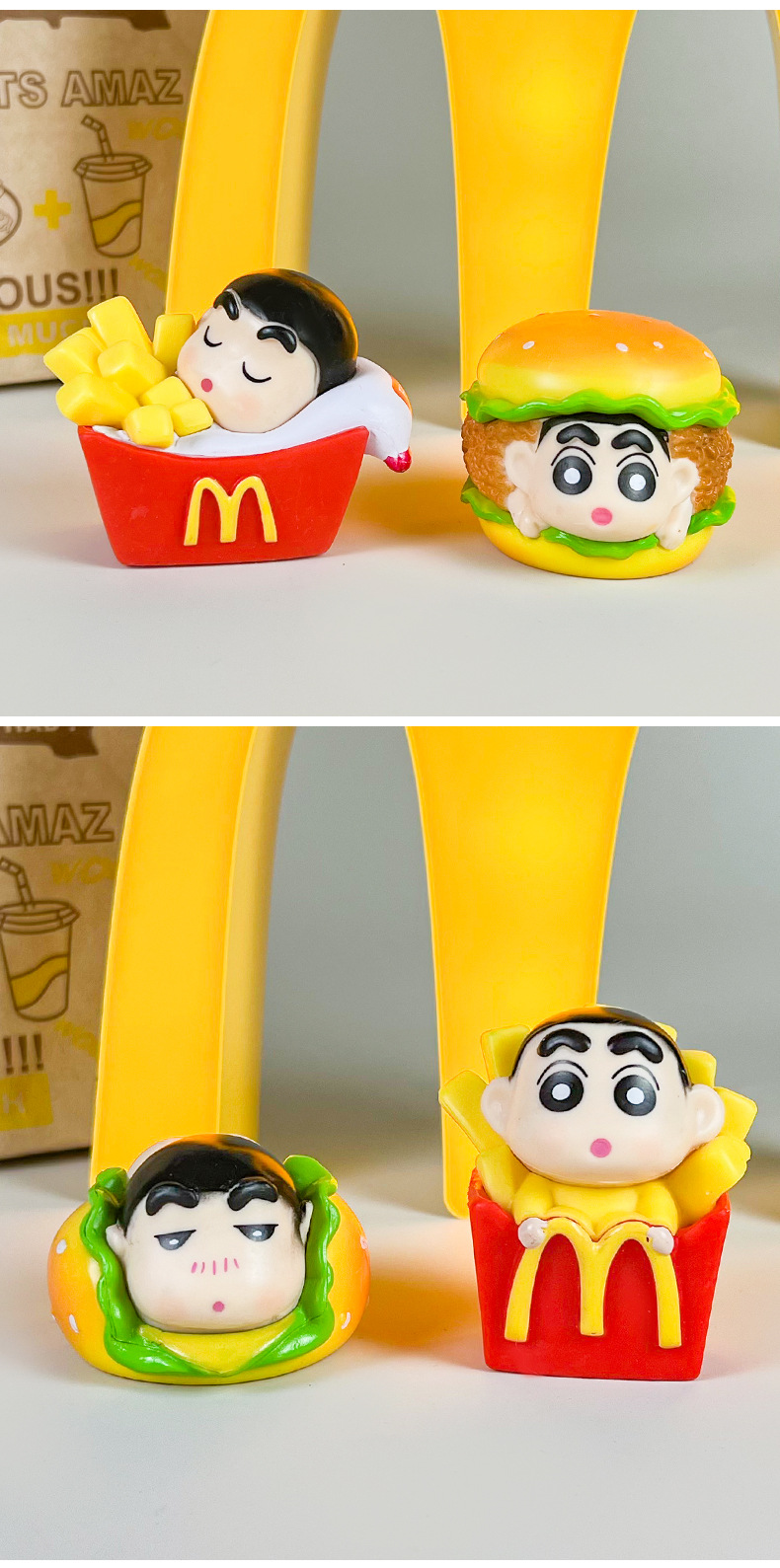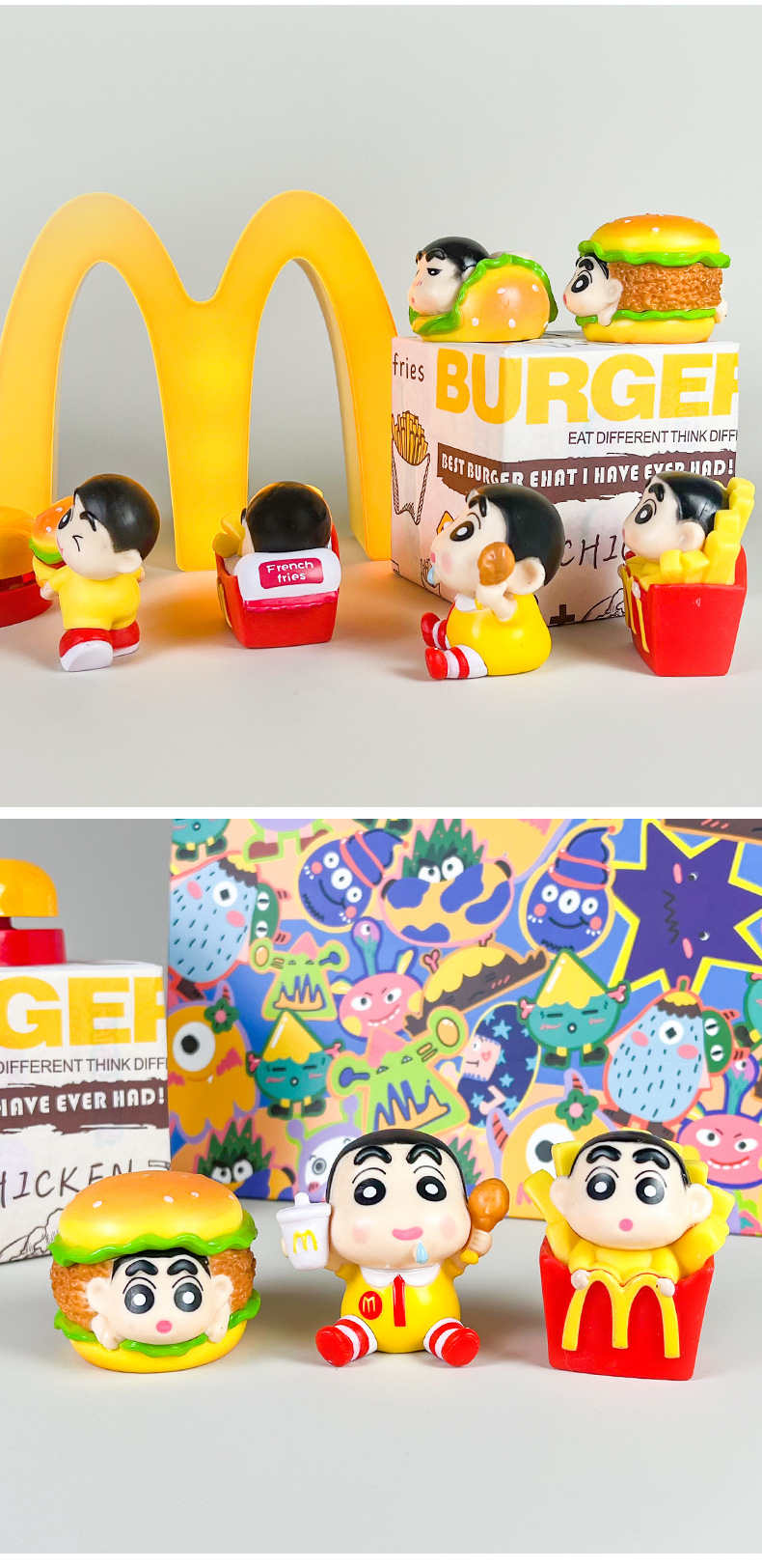 Crayon Shinchan Kentang Goreng Burger Maimen Kreatif Animasi Tangan Dekorasi Desktop McDonald's Xiaoxin Trendi Dekorasi Ornamen