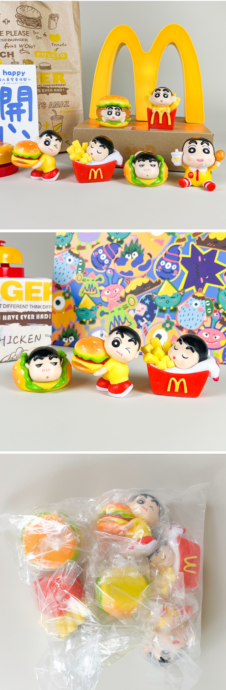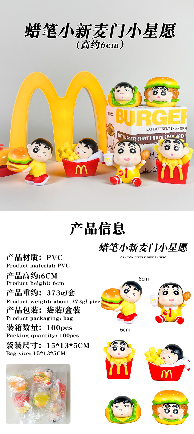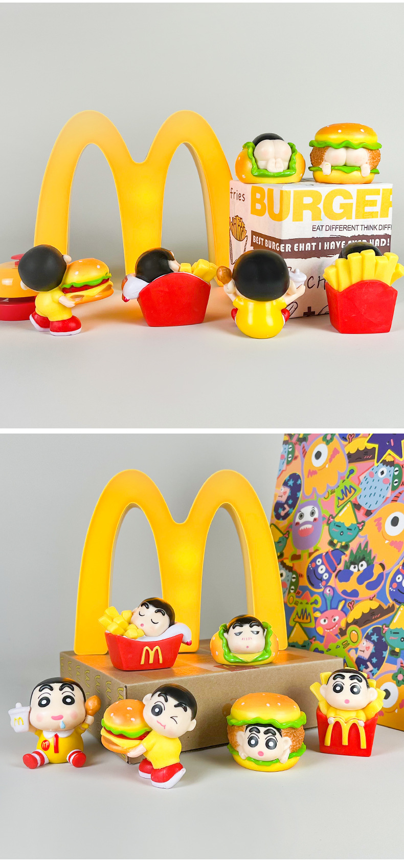 Crayon Shinchan Kentang Goreng Burger Maimen Kreatif Animasi Tangan Dekorasi Desktop McDonald's Xiaoxin Trendi Dekorasi Ornamen