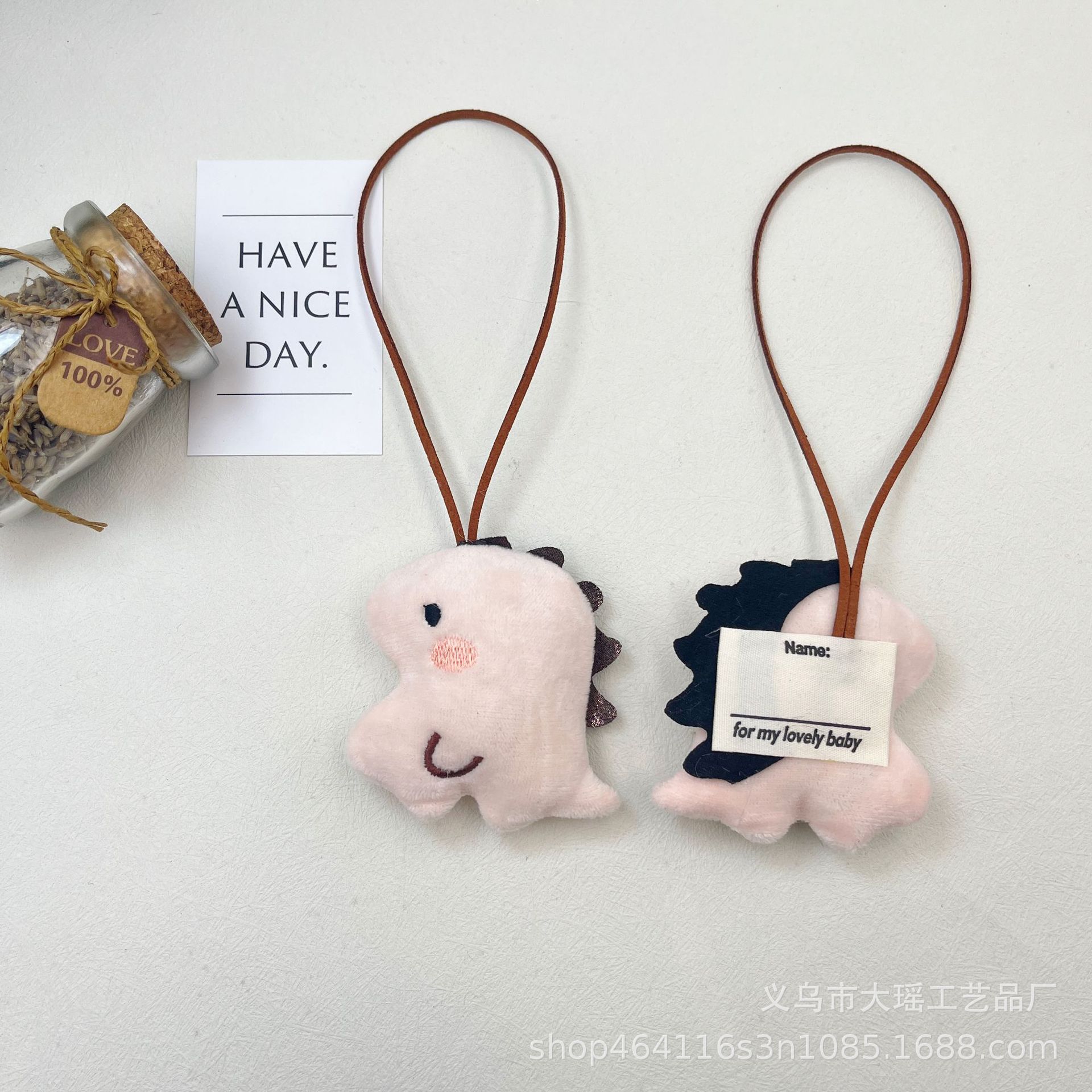 Aksesori dekorasi hadiah hadiah Hari Anak liontin stiker nama boneka kecil mewah dinosaurus kartun