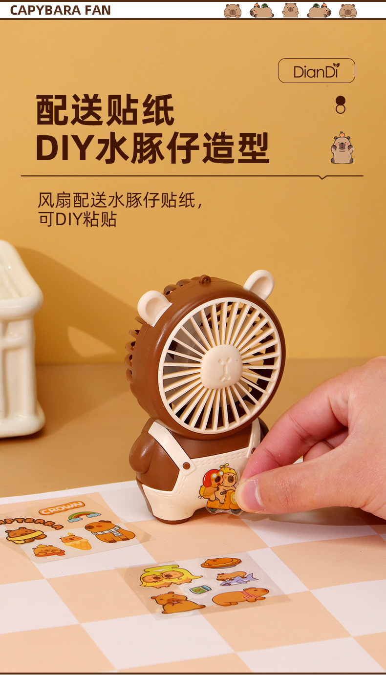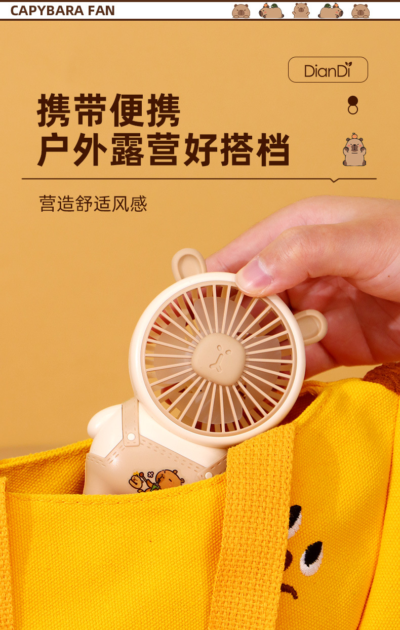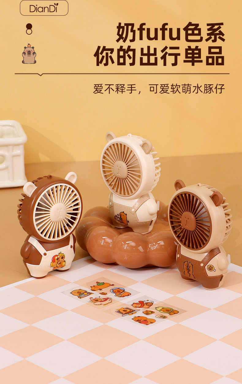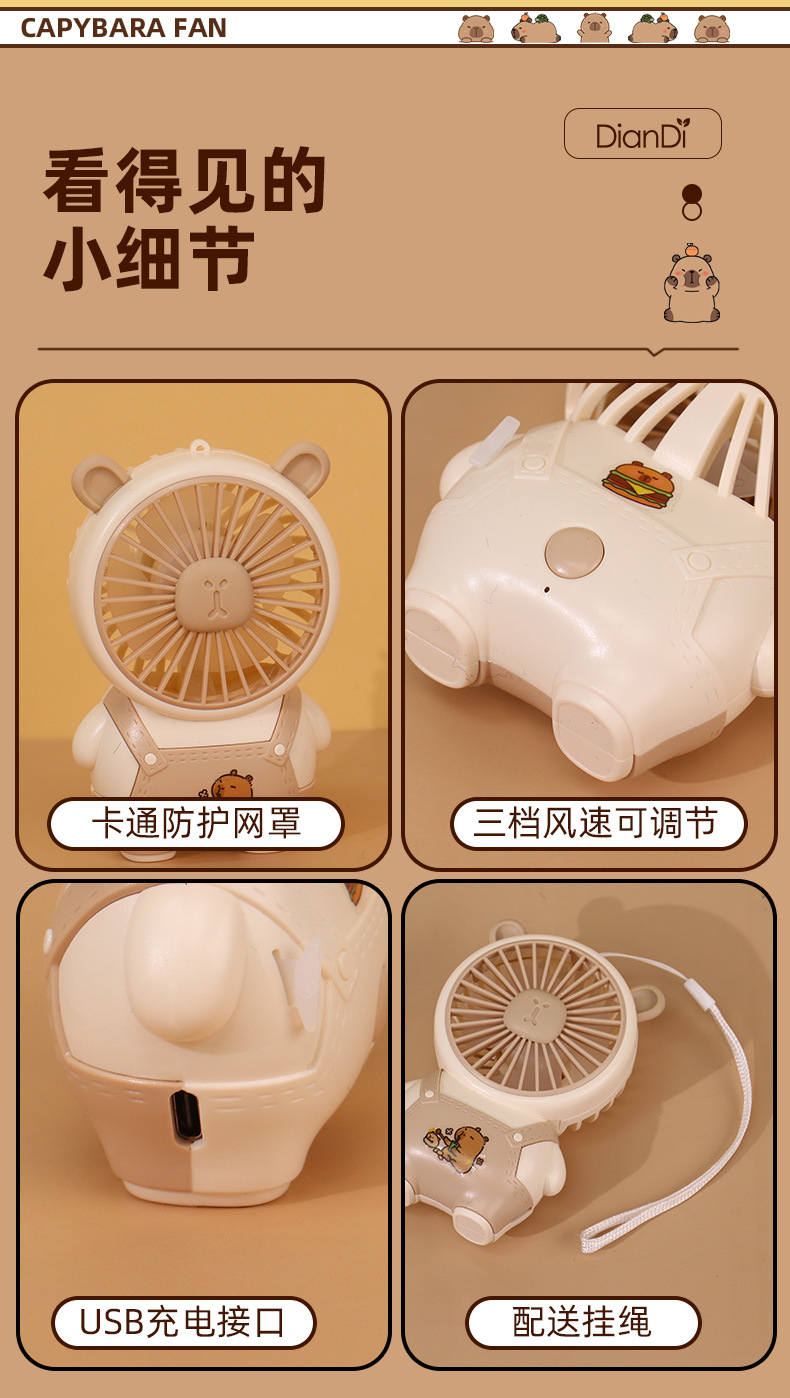Kapibara Model Baru Genggam Kartun Gantung Kipas Kecil Isi Ulang USB Mini Portabel Angin Besar Diam Kipas Listrik Pabrik