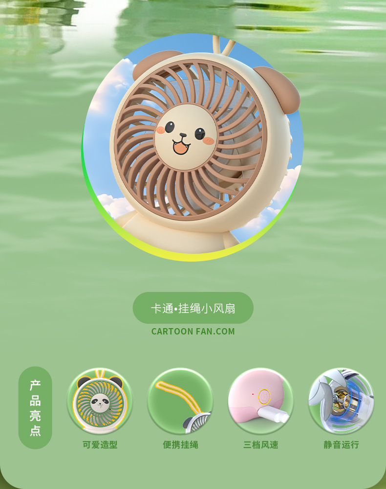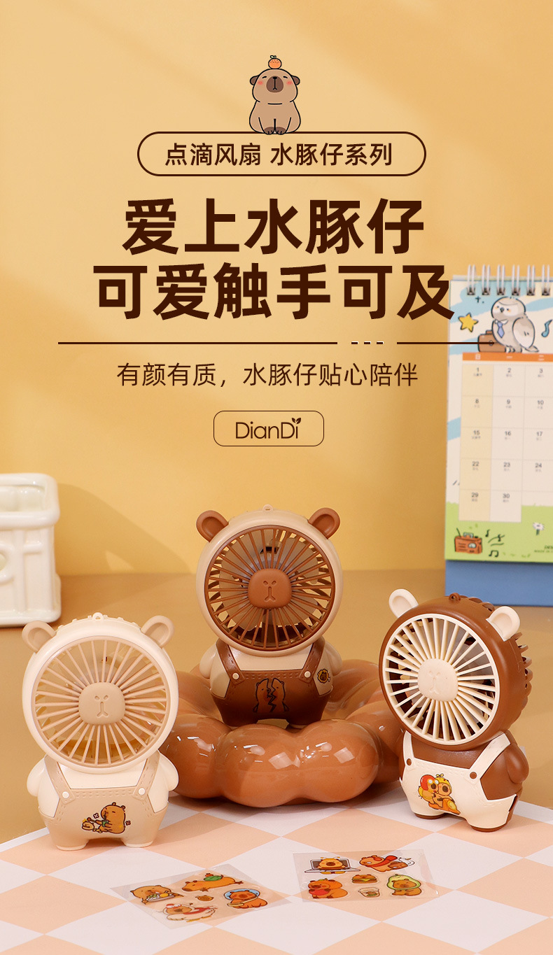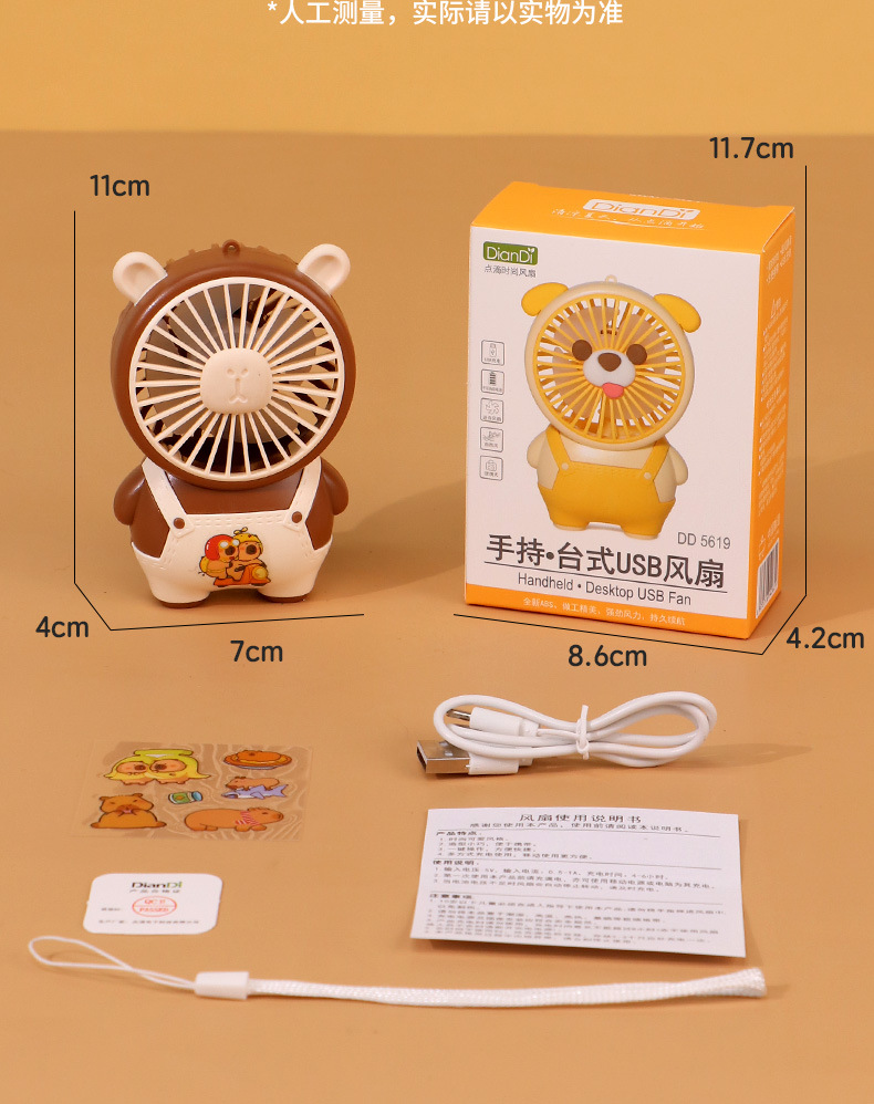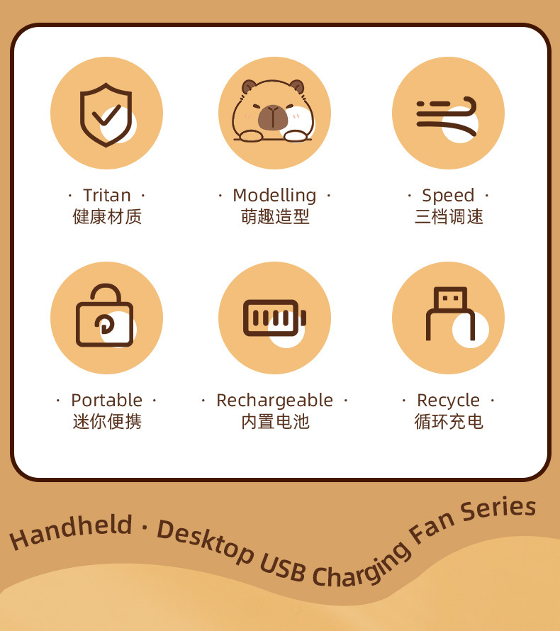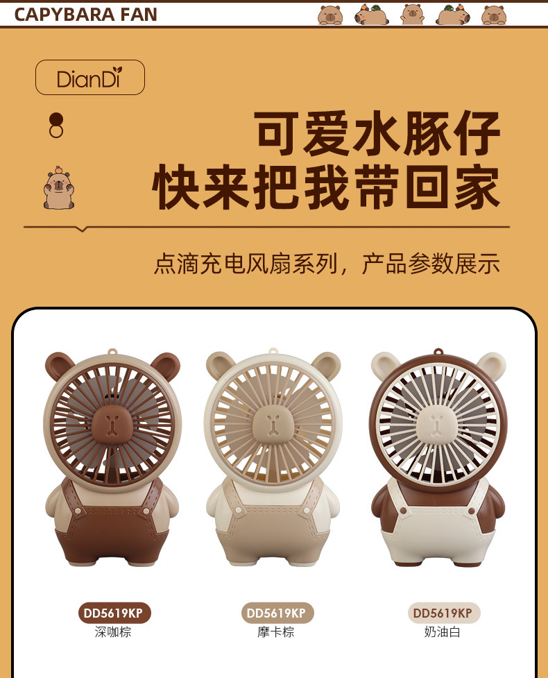 Kapibara Model Baru Genggam Kartun Gantung Kipas Kecil Isi Ulang USB Mini Portabel Angin Besar Diam Kipas Listrik Pabrik