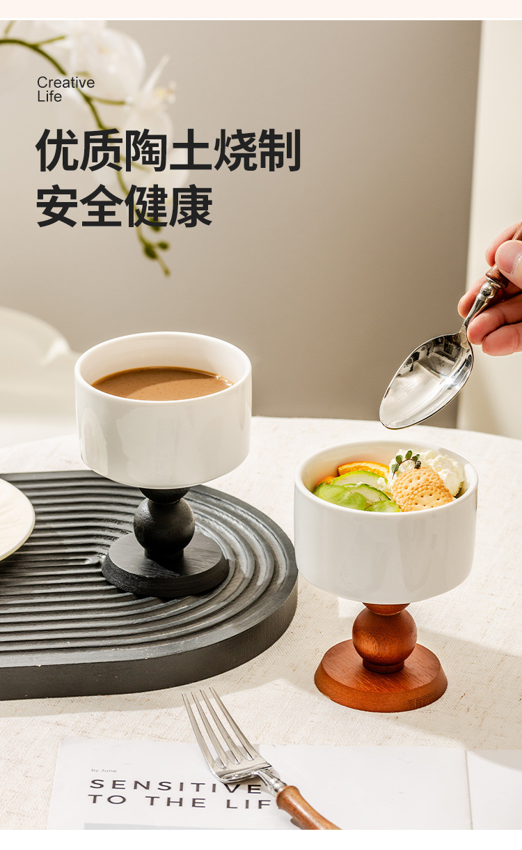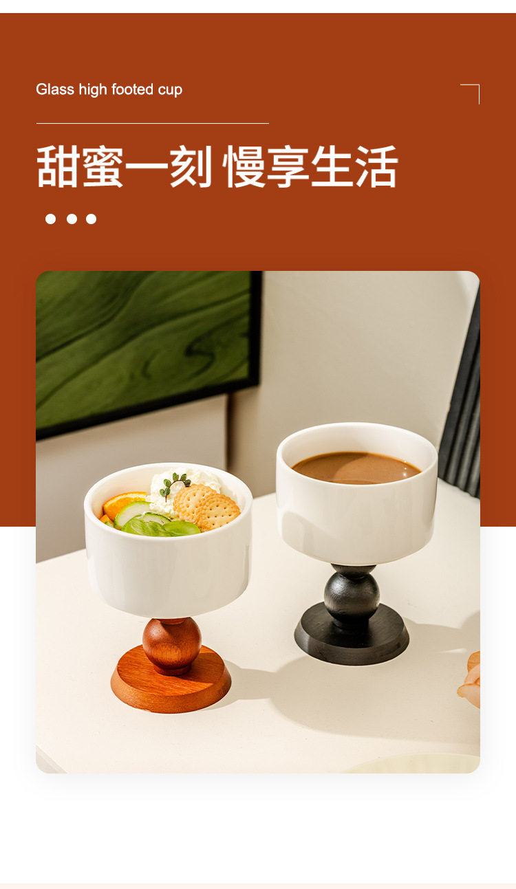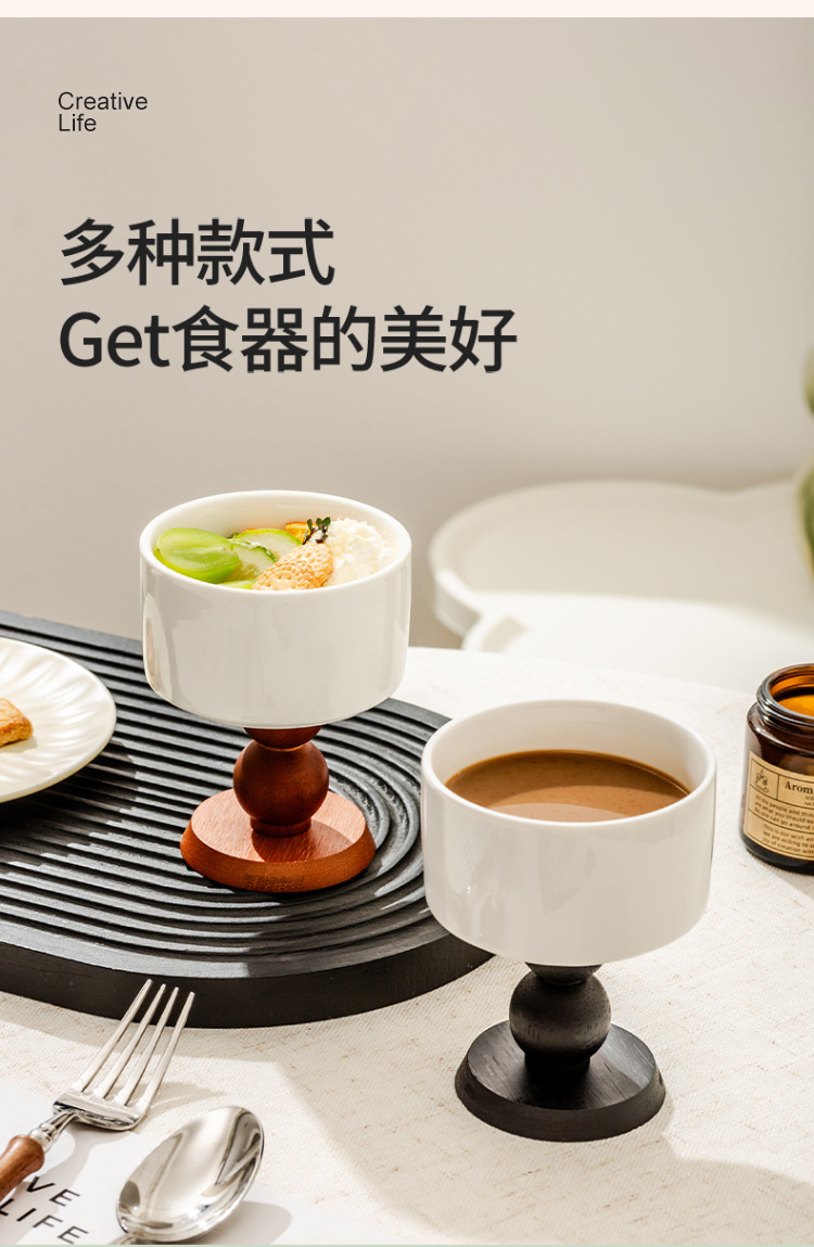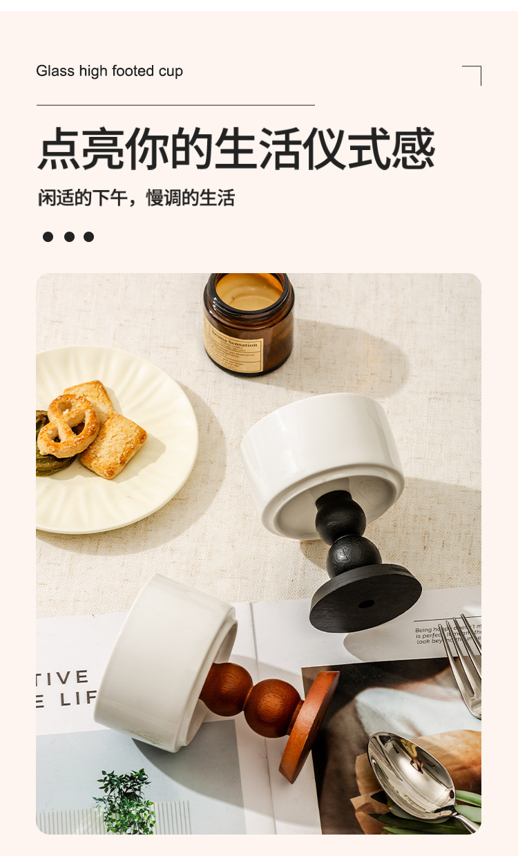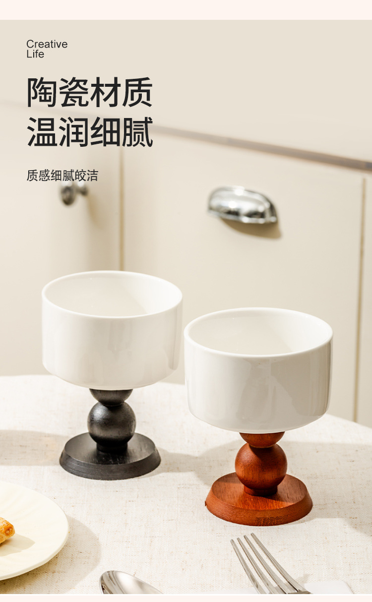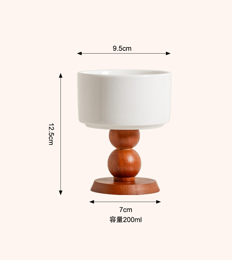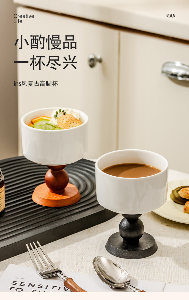 Cangkir Kaki Keramik Retro Cangkir Es Krim Gaya Prancis Mangkuk Makanan Penutup Puding Ins Tempat Lilin Cangkir Kaki Kayu Rumah Tangga