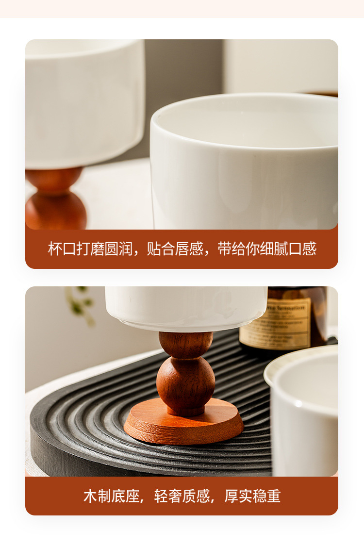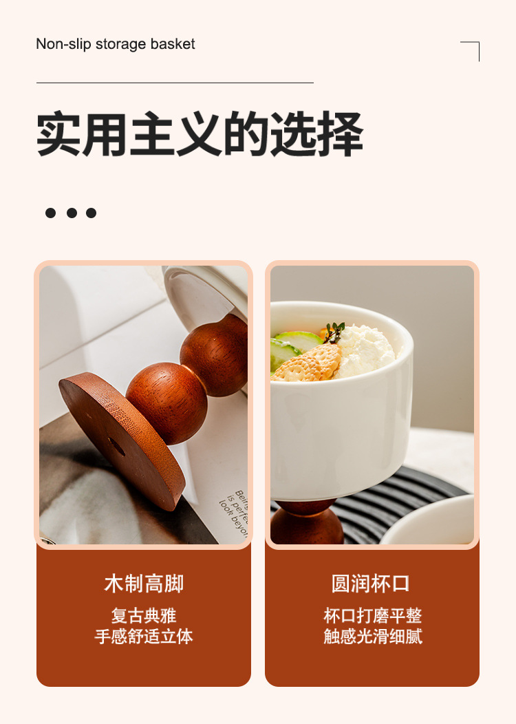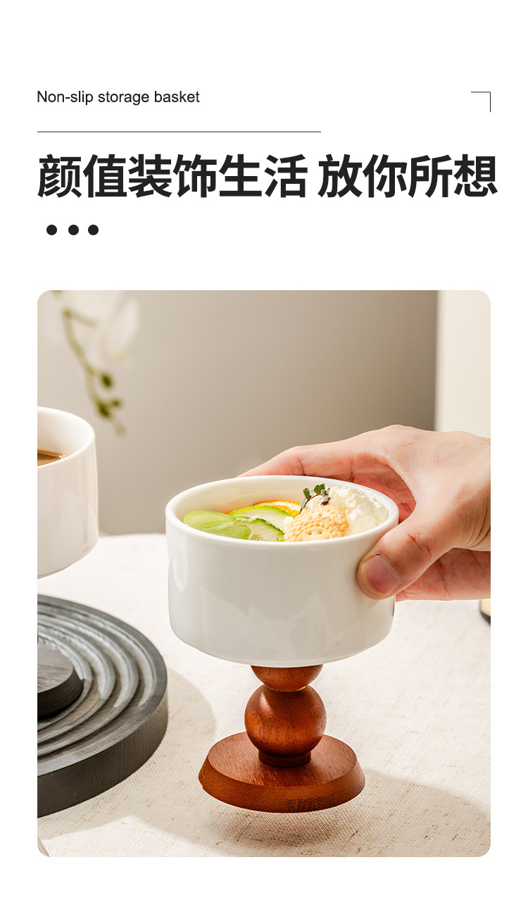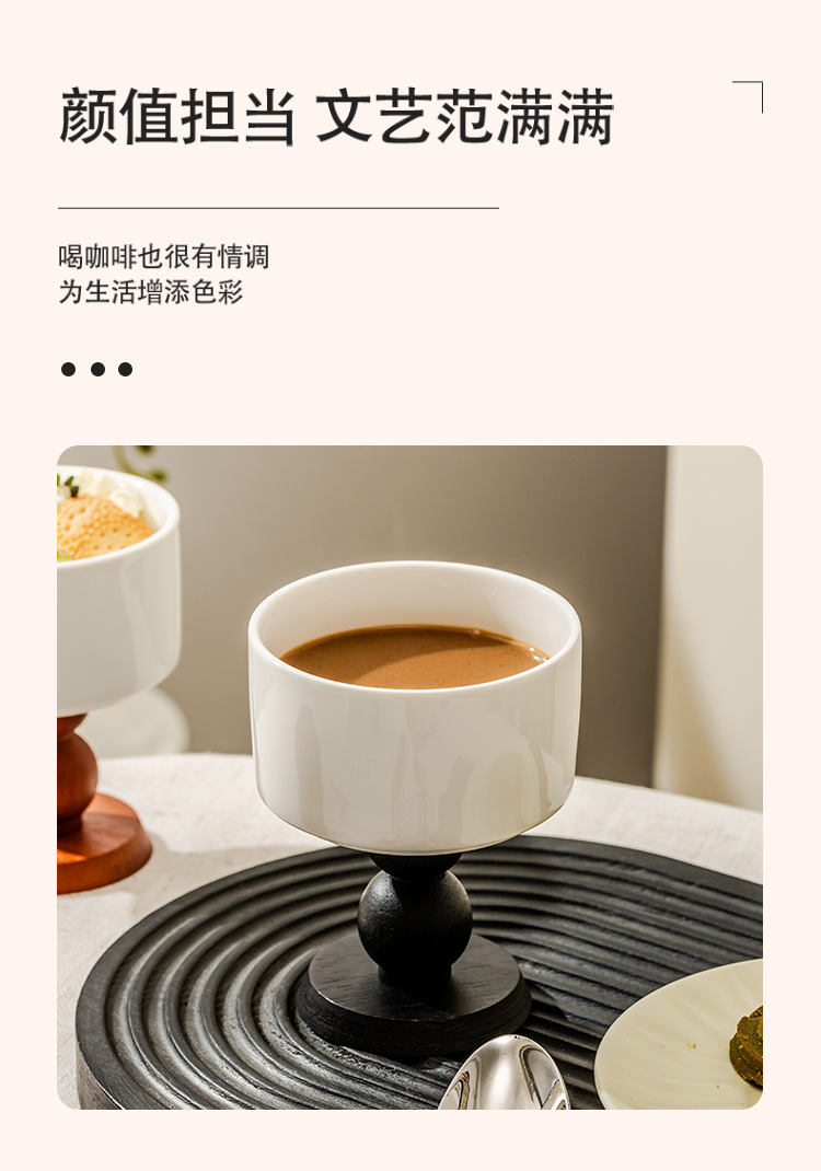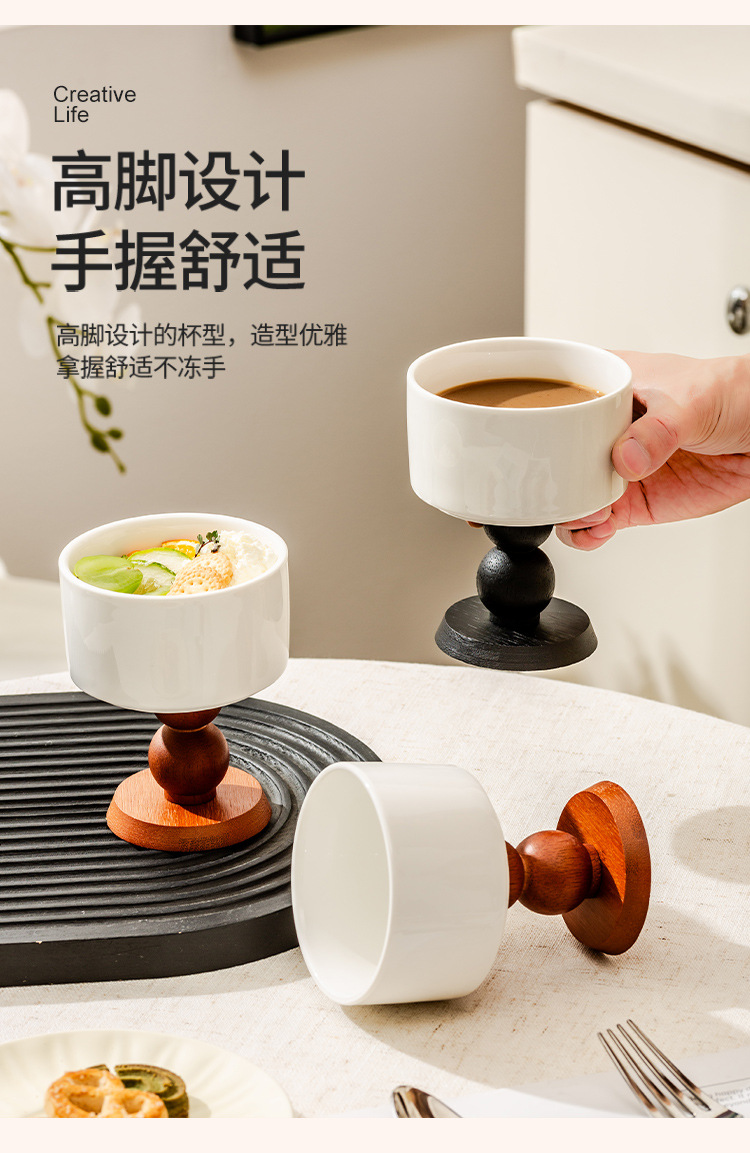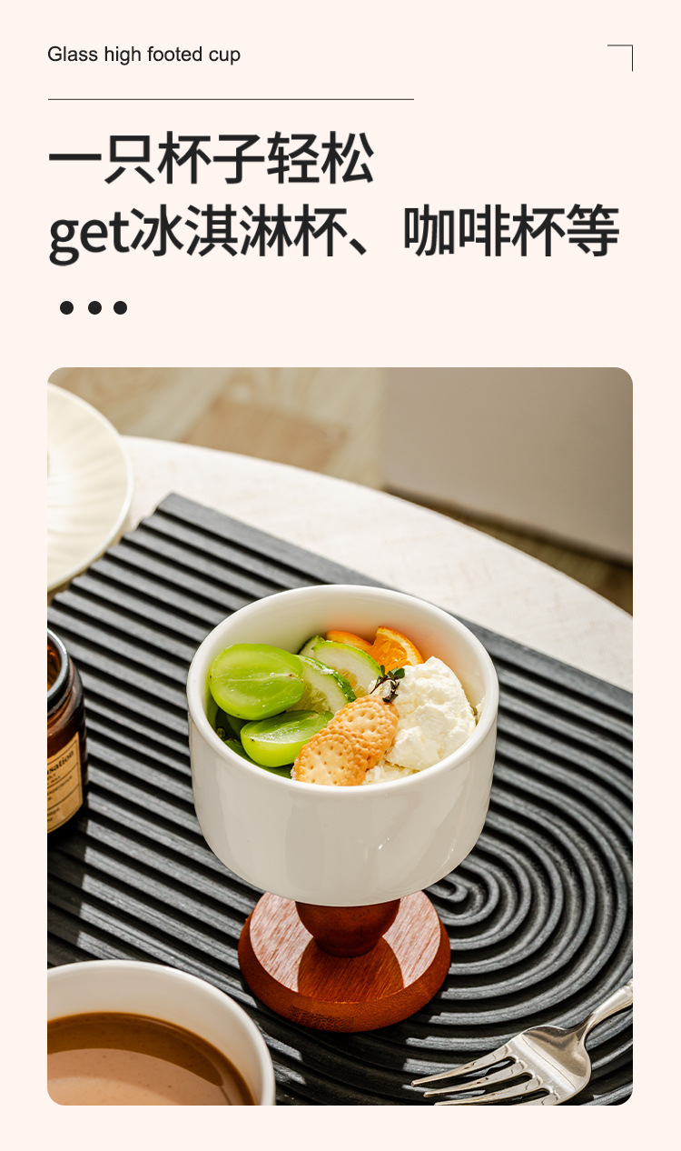 Cangkir Kaki Keramik Retro Cangkir Es Krim Gaya Prancis Mangkuk Makanan Penutup Puding Ins Tempat Lilin Cangkir Kaki Kayu Rumah Tangga