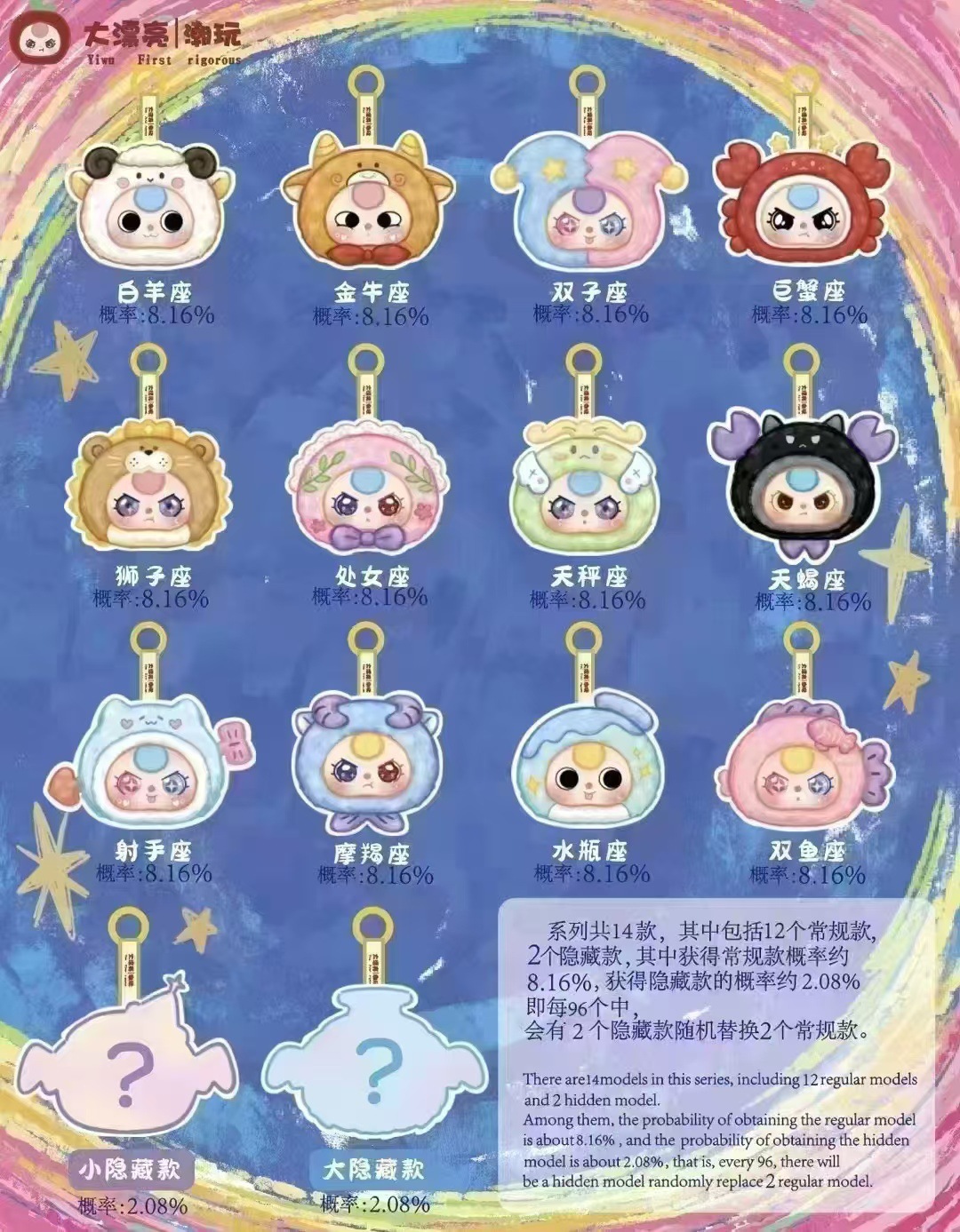 Boneka mainan tren zodiak bayi usia tiga tahun, figurin boneka hadiah ornamen kotak lengkap kemasan blind bag