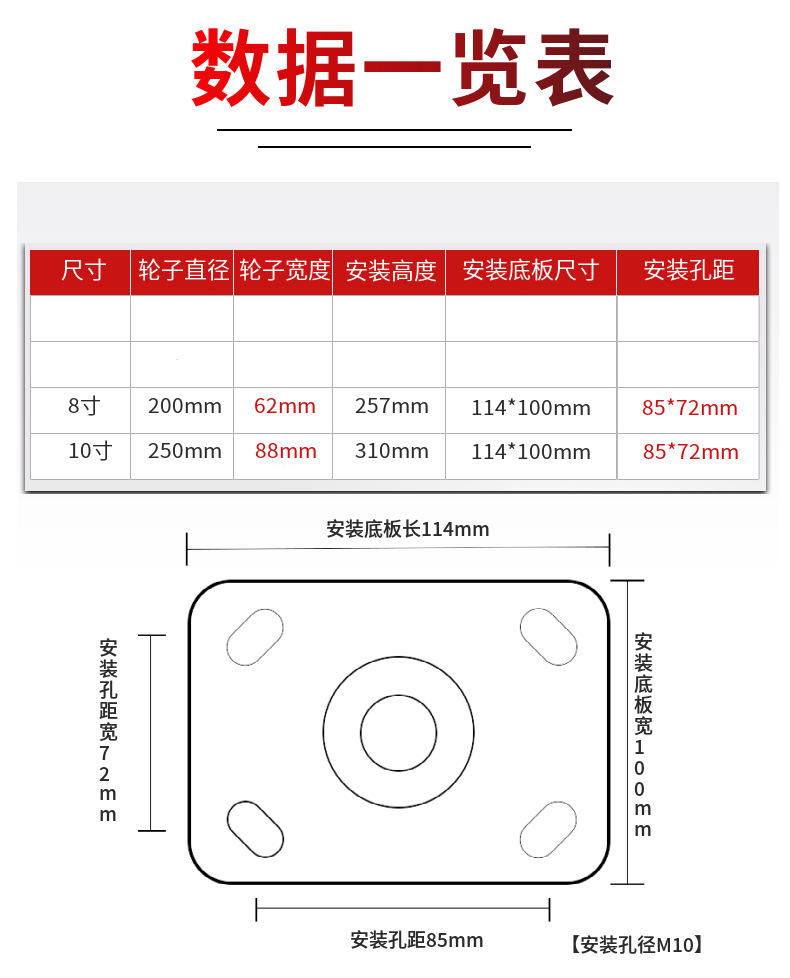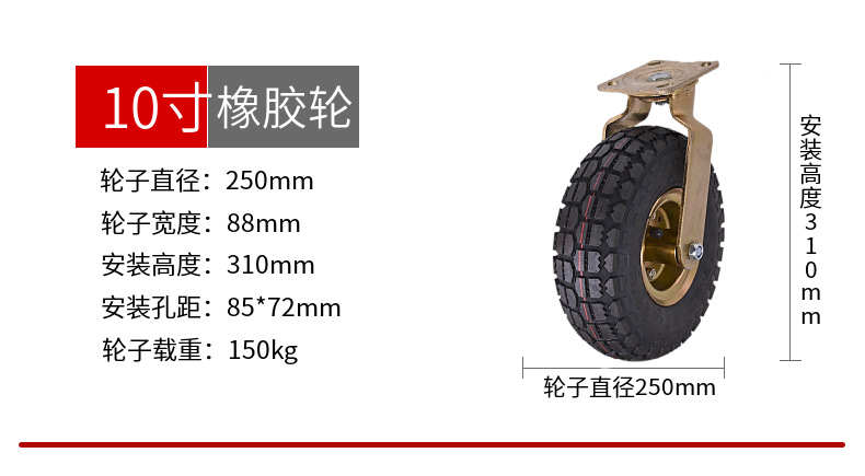 Xitu caster roda tiup 8 inci 10 inci, ban karet caster, roda troli bisu, roda berat