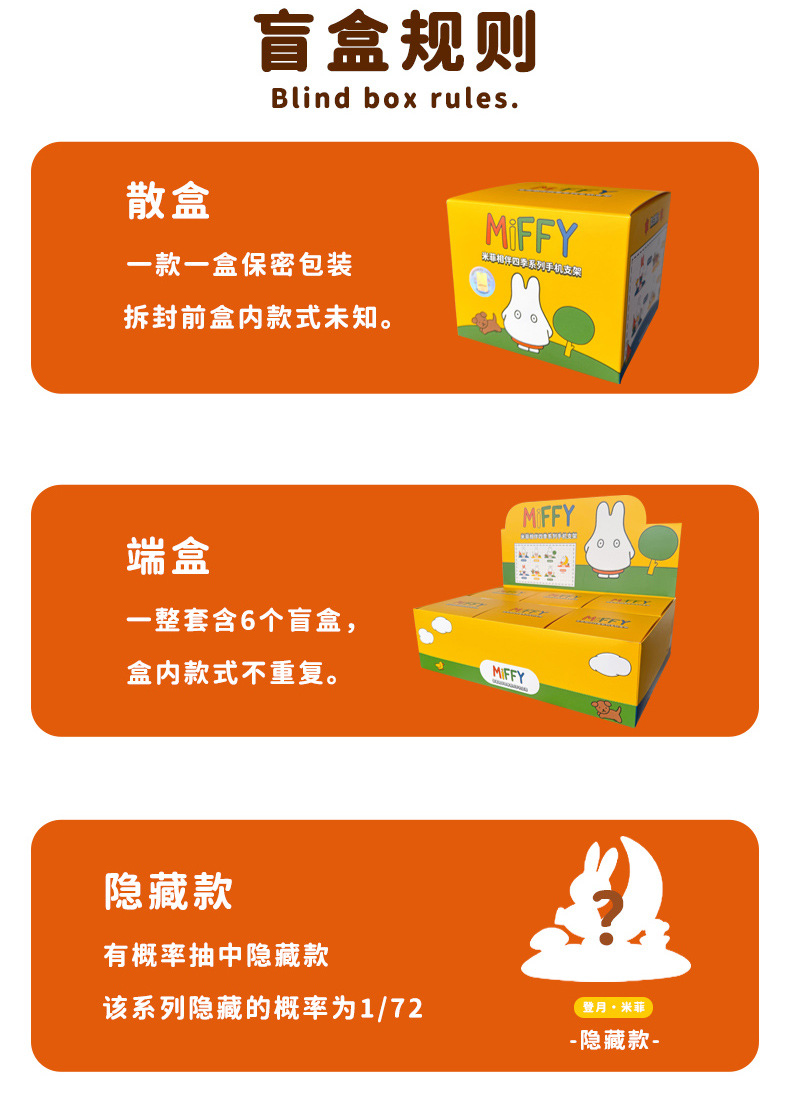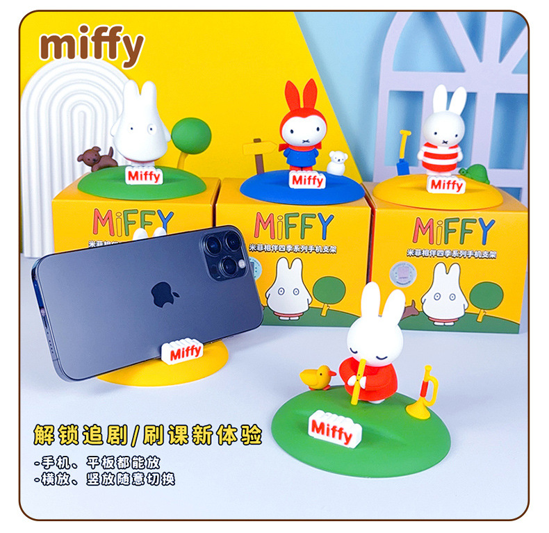 正版MIFFY相伴四季盲盒懒人手机支架卡通米菲兔桌面家居装饰摆件