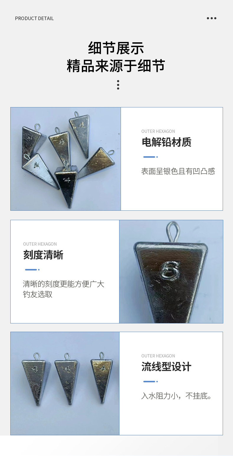 Liontin timbal segitiga empat sisi perlengkapan memancing pemosisian kapal selam liontin timah piramida memancing laut grosir