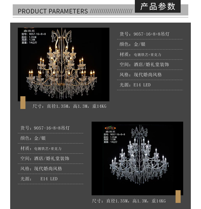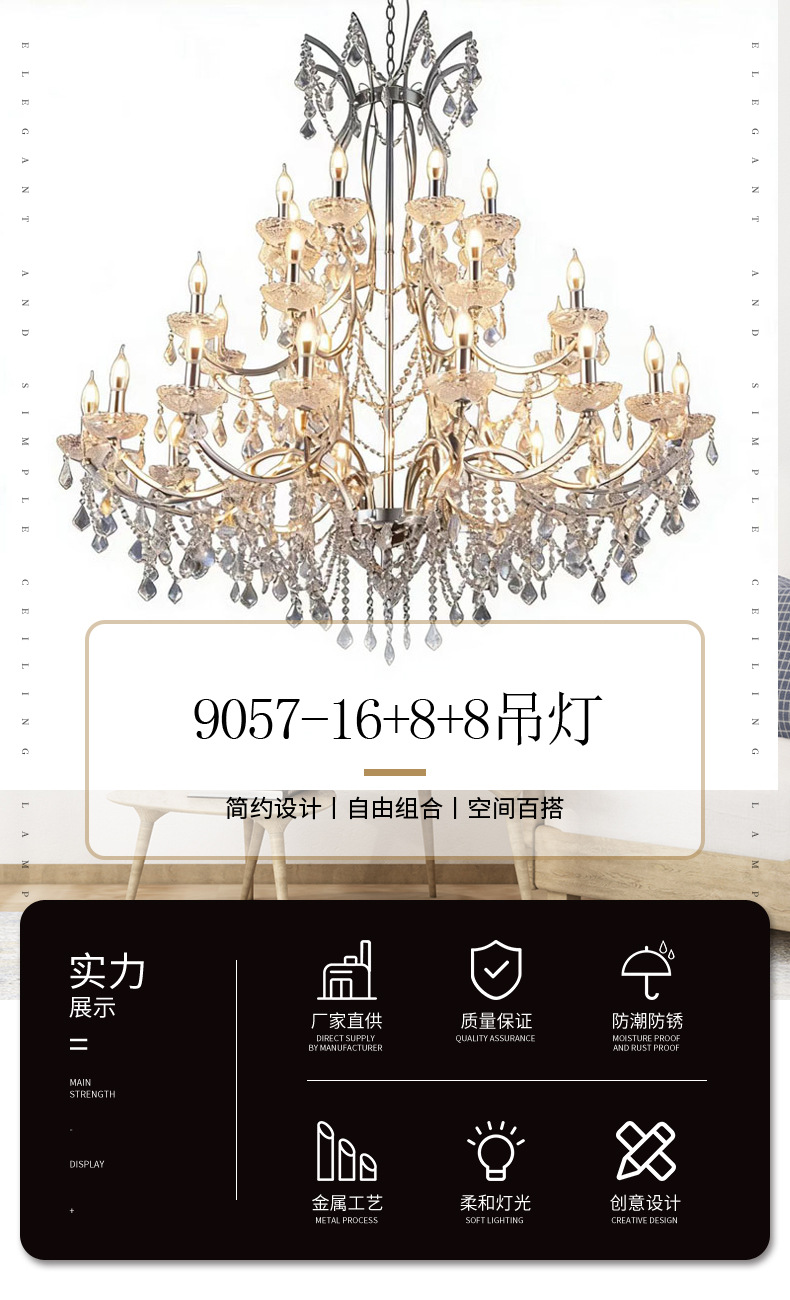 Lampu gantung kristal akrilik baru bergaya Eropa untuk pernikahan, hotel, besi berlapis elektro, lampu gantung besar, properti dekorasi