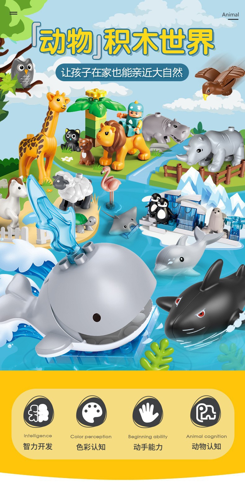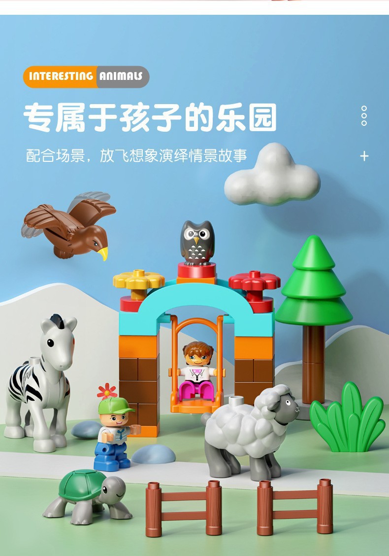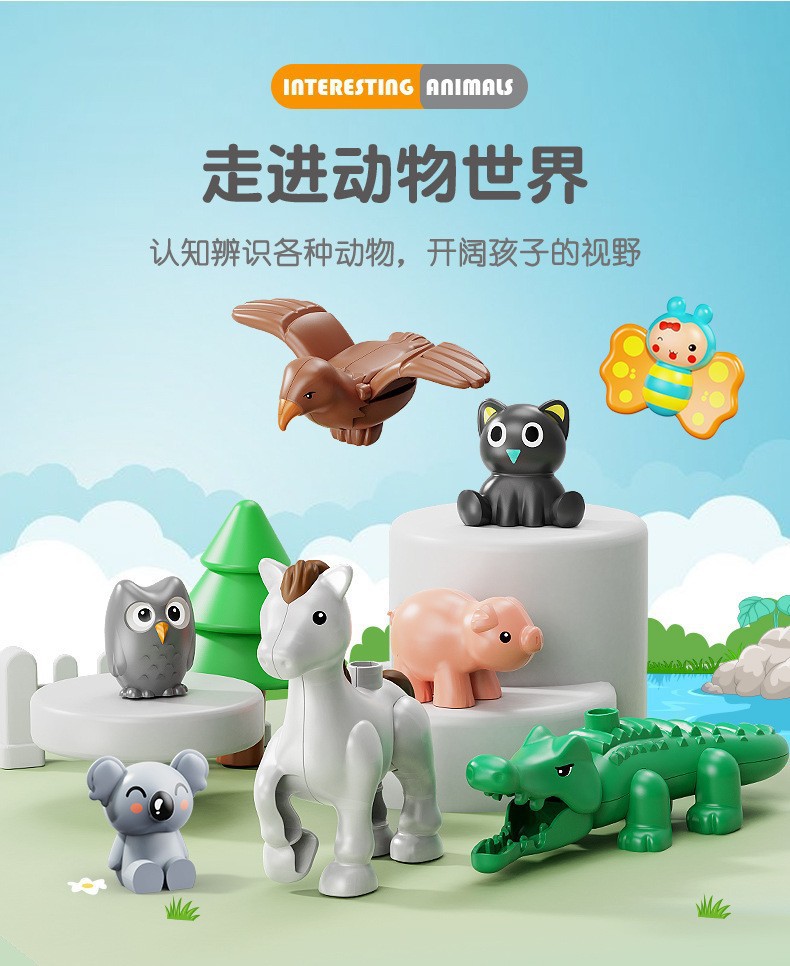 Kompatibel dengan Lego partikel besar kartun blok bangunan hewan menyenangkan rakitan anak kucing anak anjing kupu-kupu mainan burung 3 +