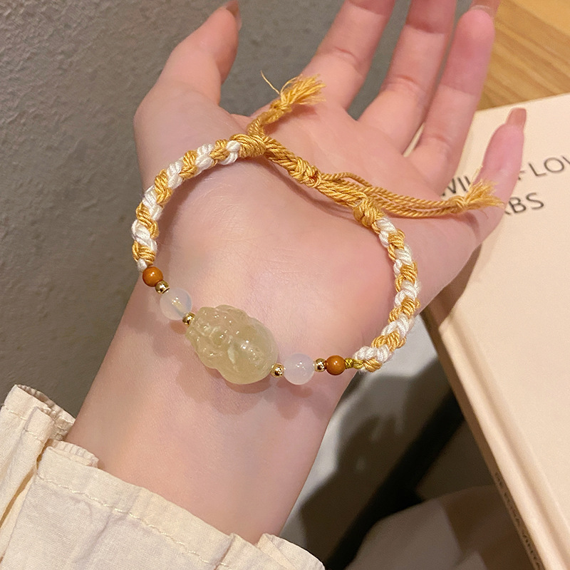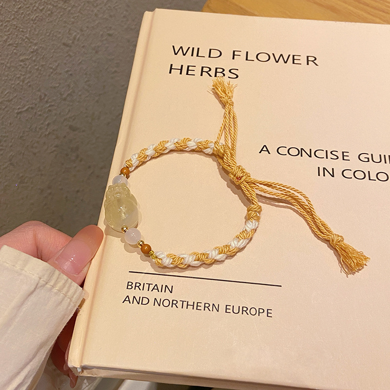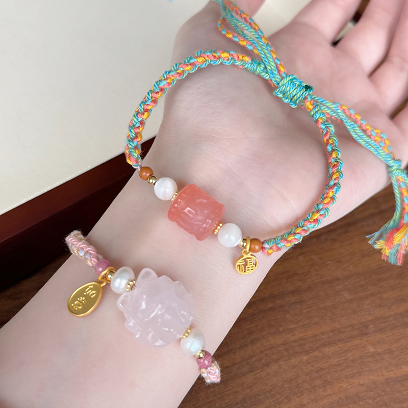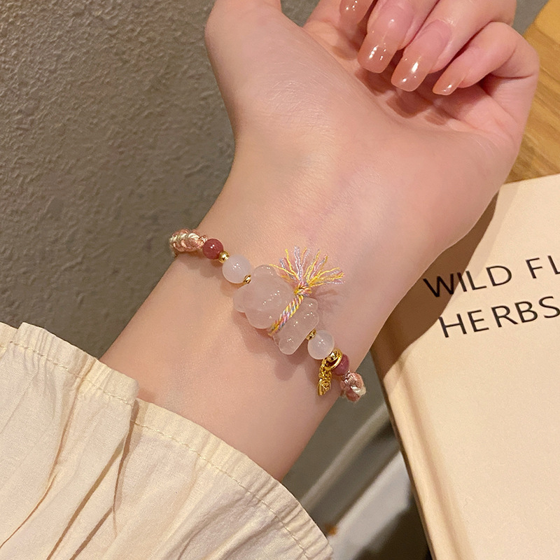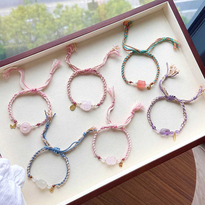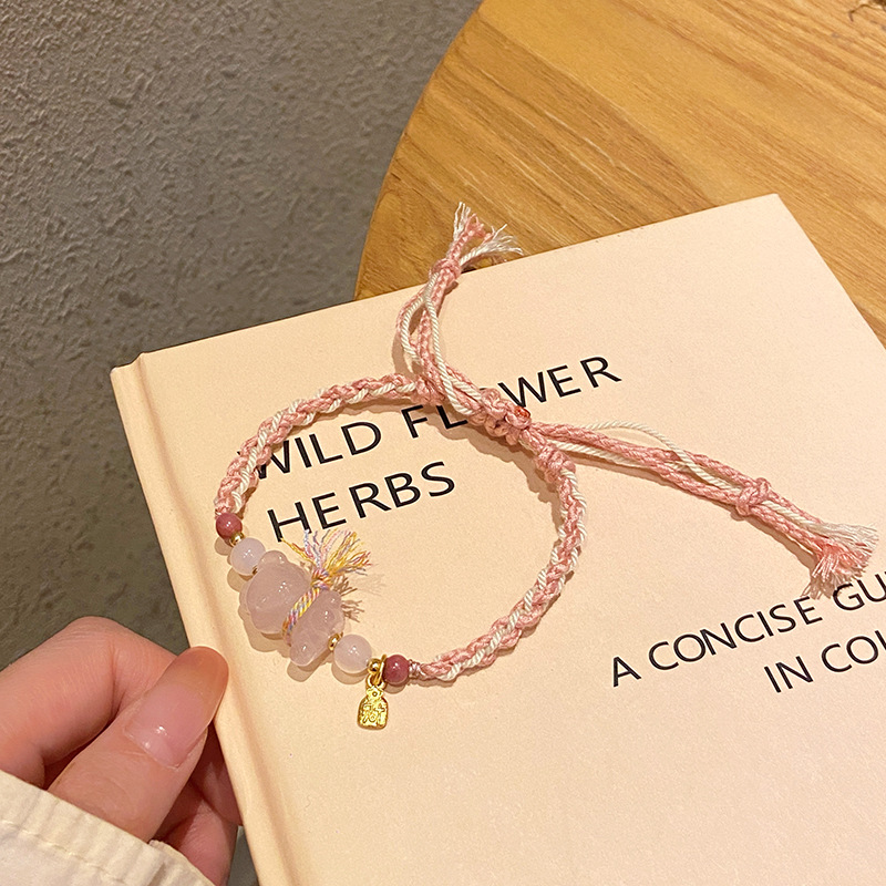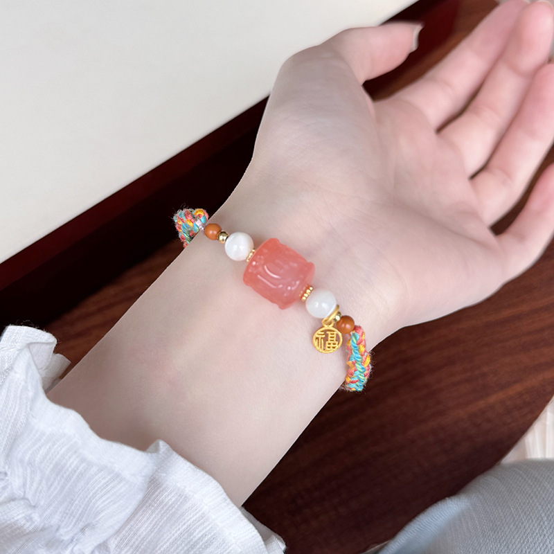 Tali Tangan Anyaman Tenun Gaya Etnik Gaya Xizang Super Peri Manis Lembut Alami Kristal Merah Muda Gesper Ping An Liontin Gelang Amethyst