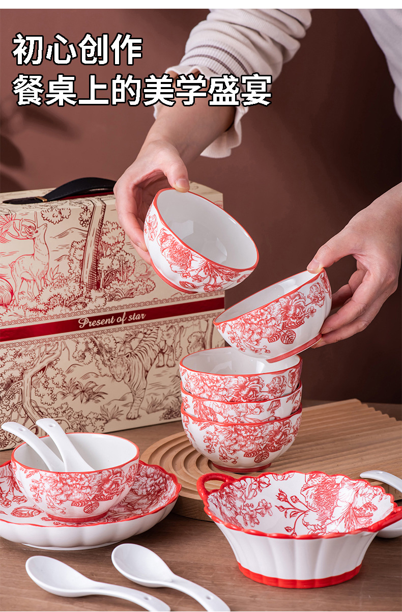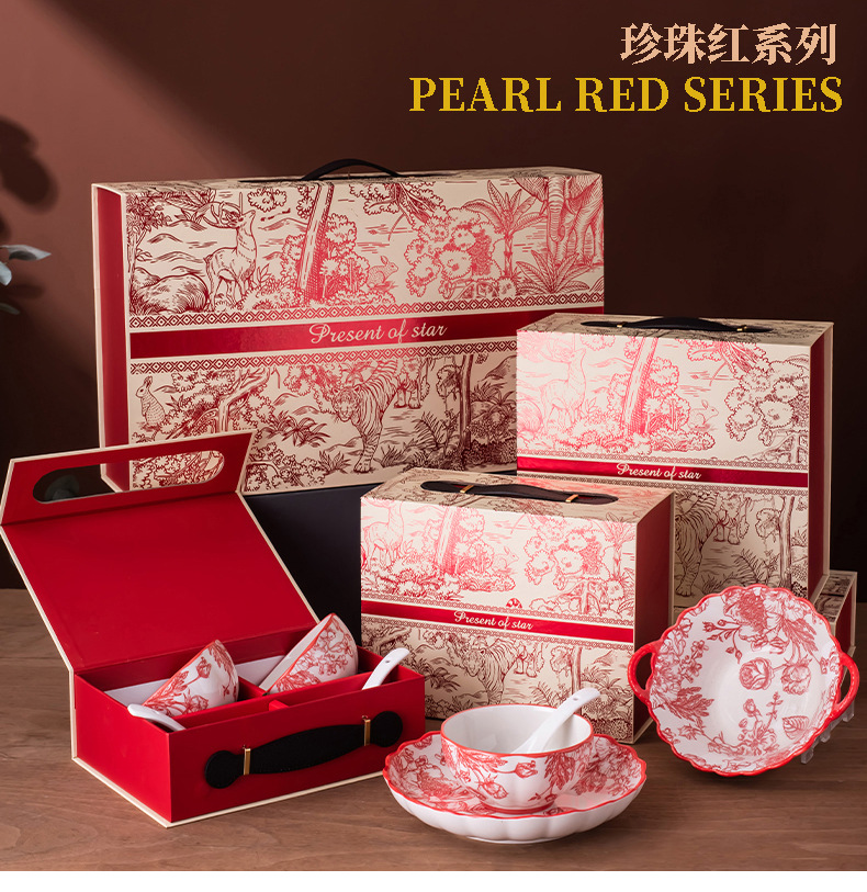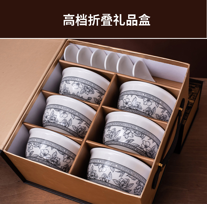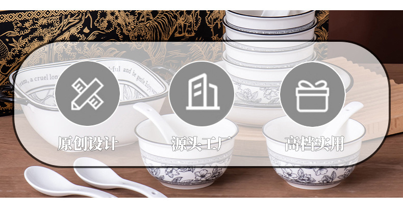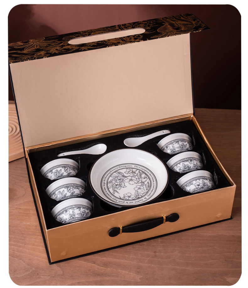Golden edge kotak hadiah mangkok keramik peralatan makan setelan pembukaan aktivitas hadiah keramik mangkuk piring setelan set mangkuk grosir