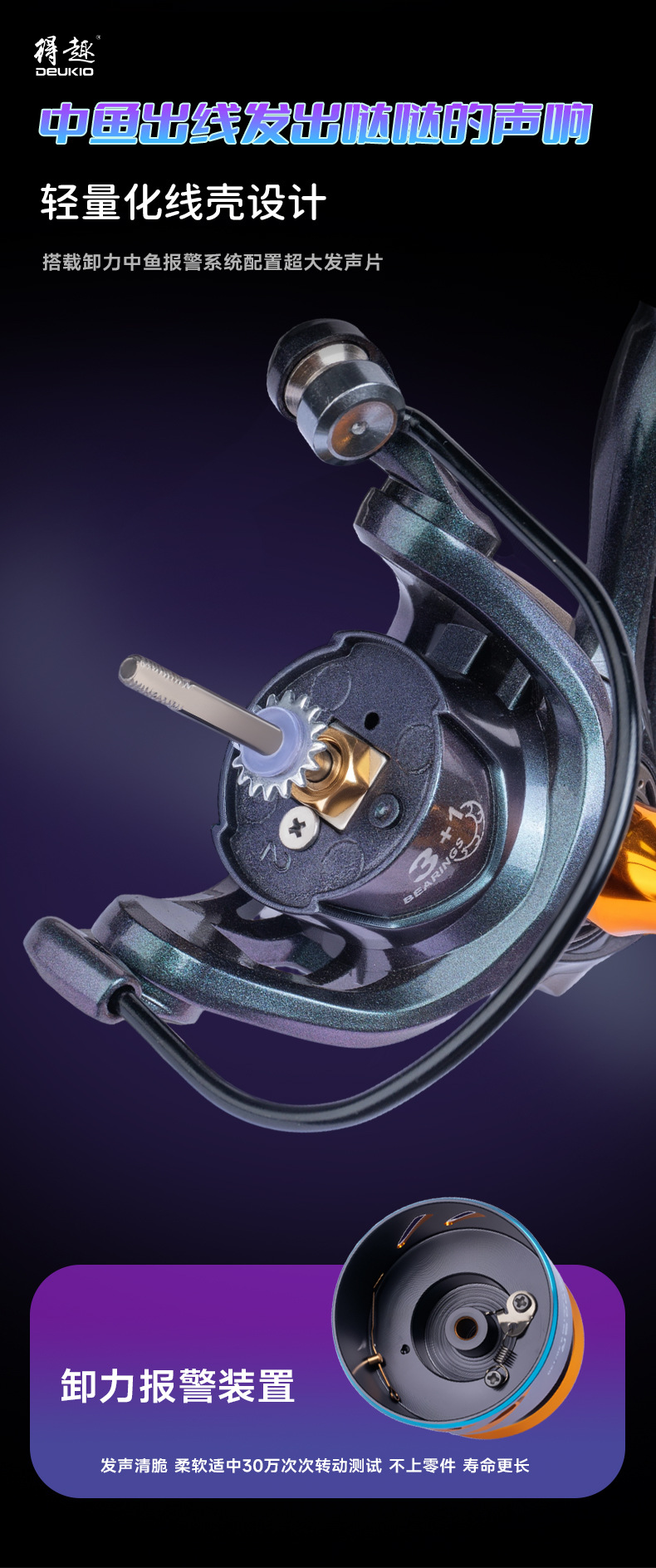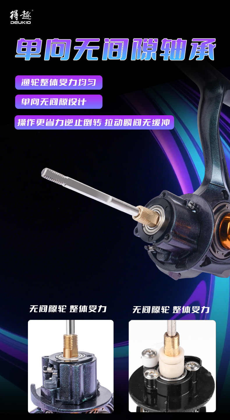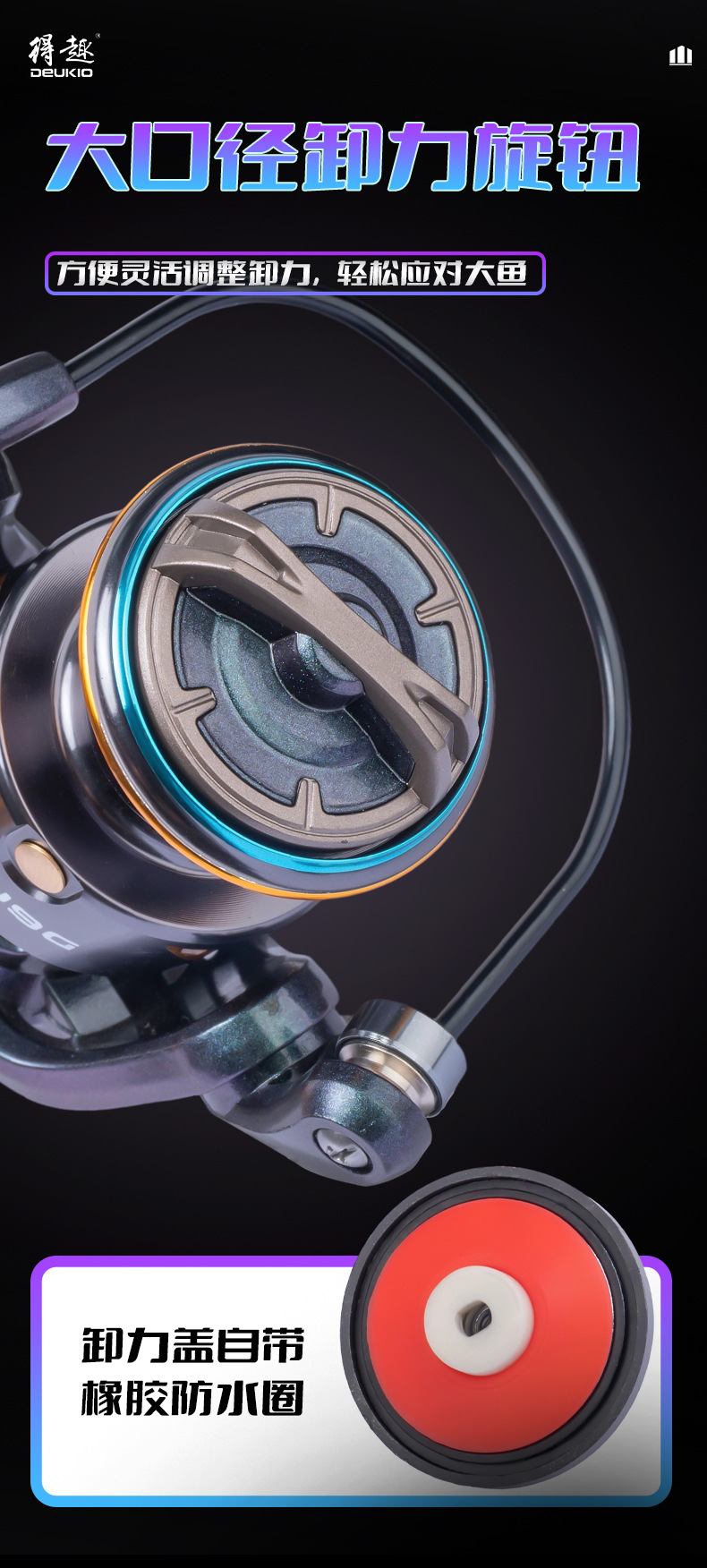 2:高达16KG大钓力,采用优质羊毛毡刹车片,为远投做钓提供强力保障刹车力输出平稳顺滑,硬搏大物,力挺远投 高效作钓。