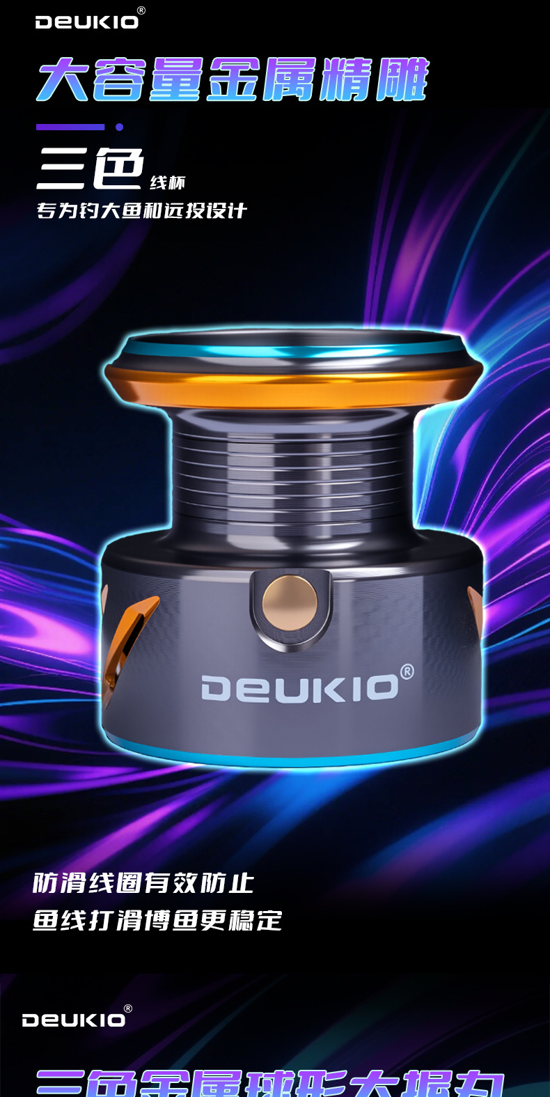 5:大角度斜口三色金属精雕线杯,出线顺畅,超远抛投。