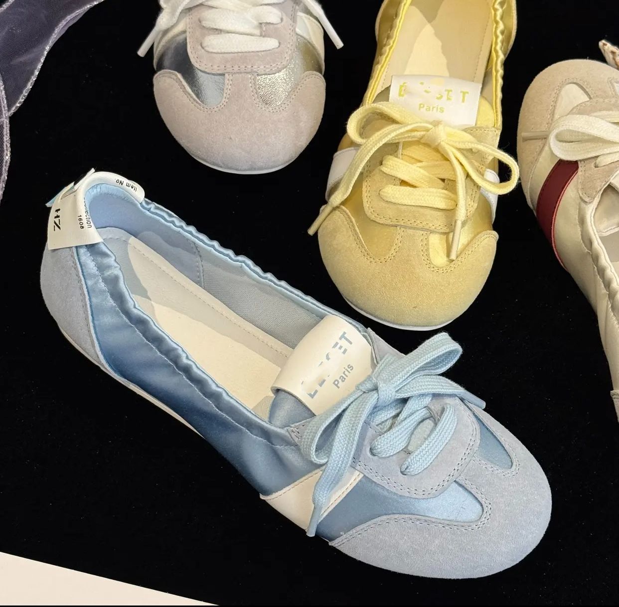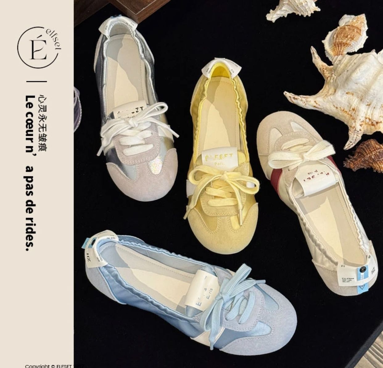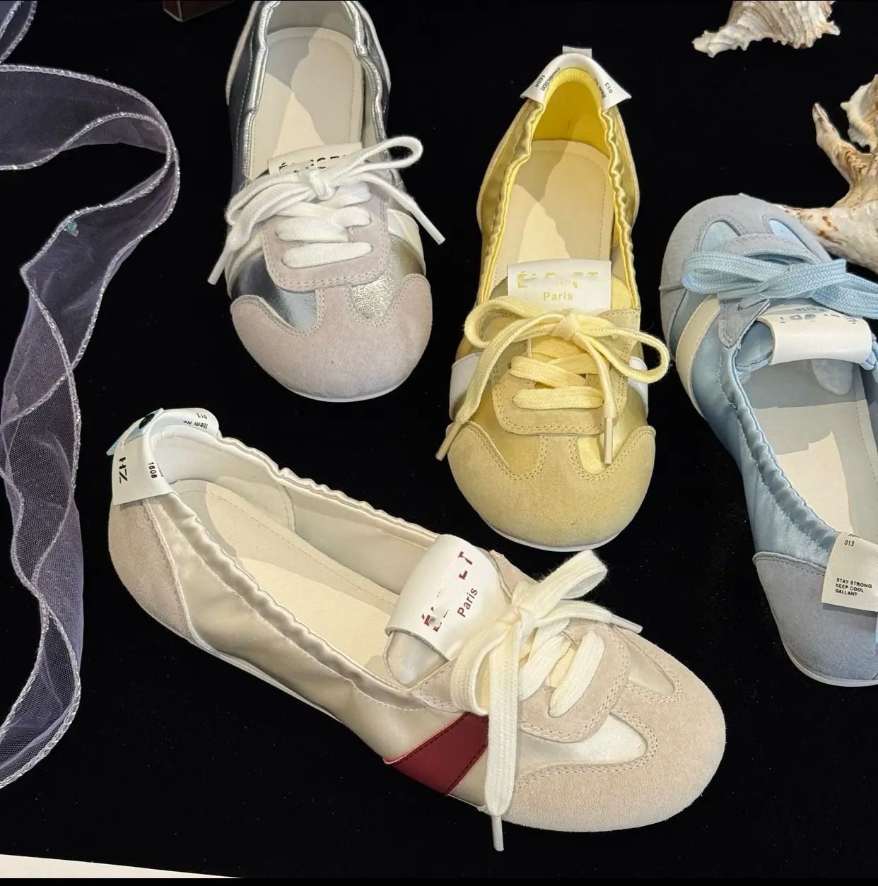 Sepatu Pelatihan Balet Gaya Prancis Sepatu Putih Kecil Sol Datar Bernapas Model Baru Musim Panas 2024 Sepatu Tunggal Modis