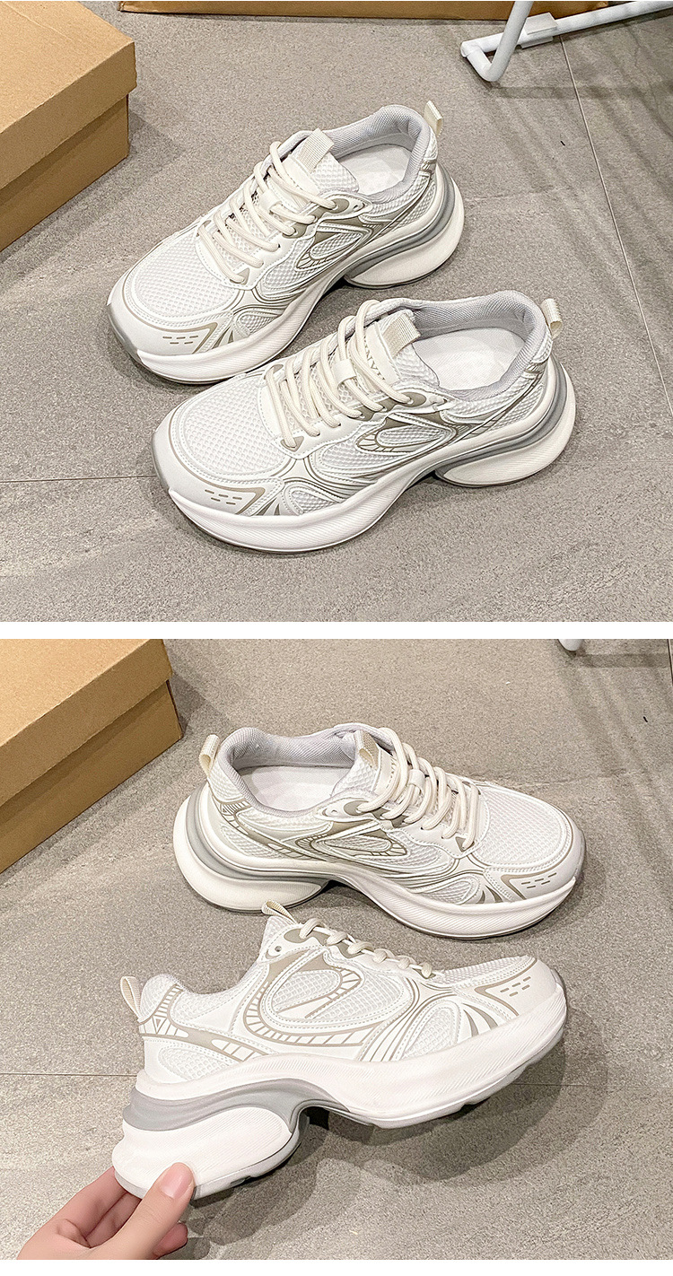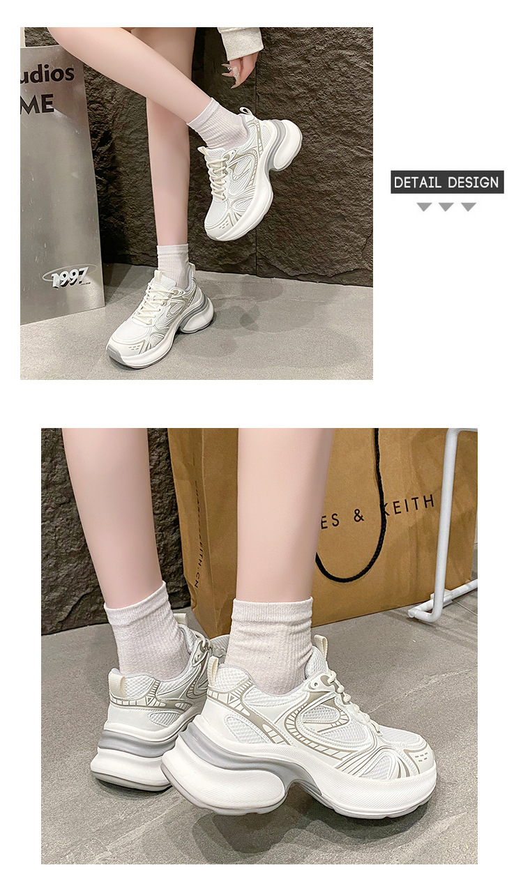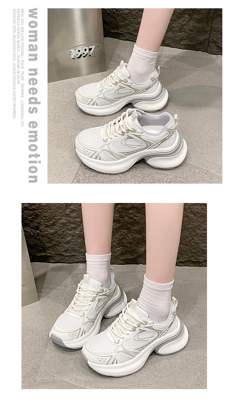 Sepatu Wanita Ukuran Besar 35-43 Sepatu Ayah Sepatu Kasual Modis Sepatu Olahraga Bernapas Perak Penambah Tinggi Sol Tebal 42