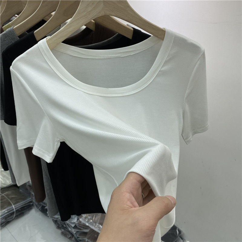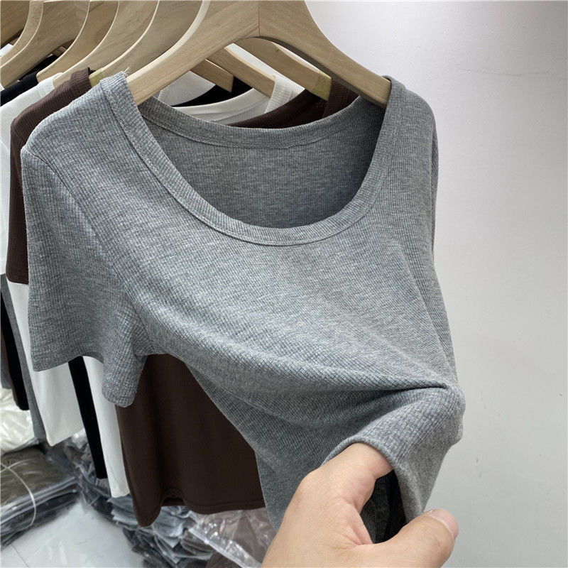 Pure desire kaus lengan pendek wanita, baju atasan kerah rendah banyak warna, slim fit musim panas untuk semua cocok
