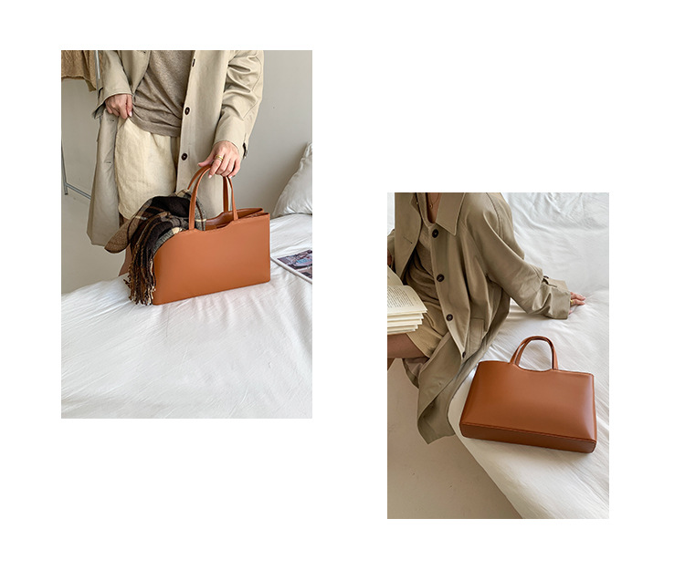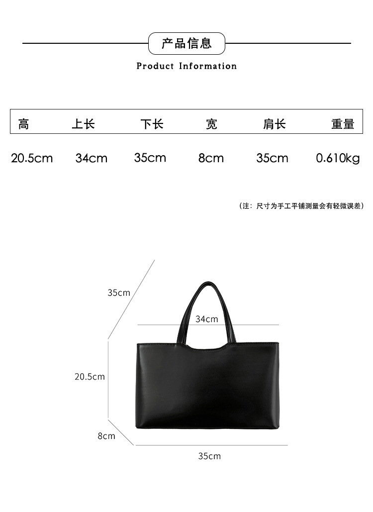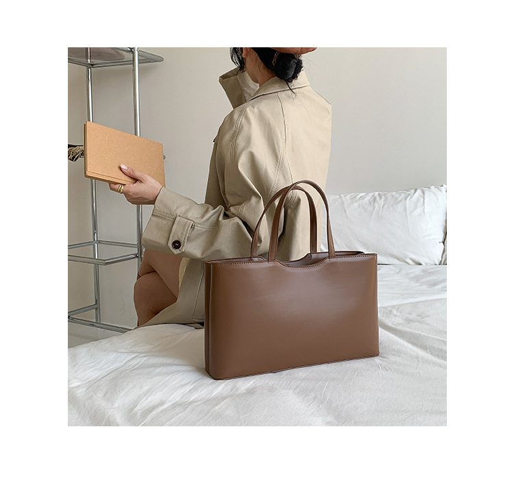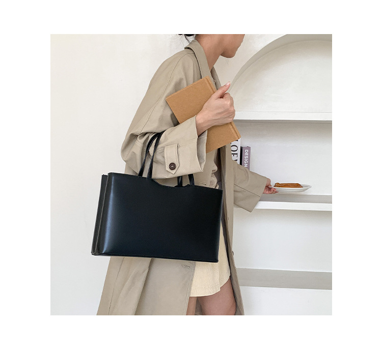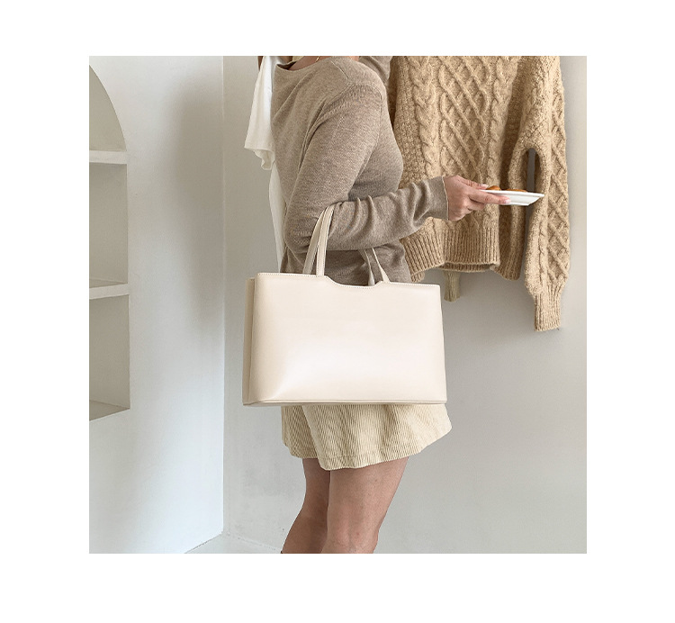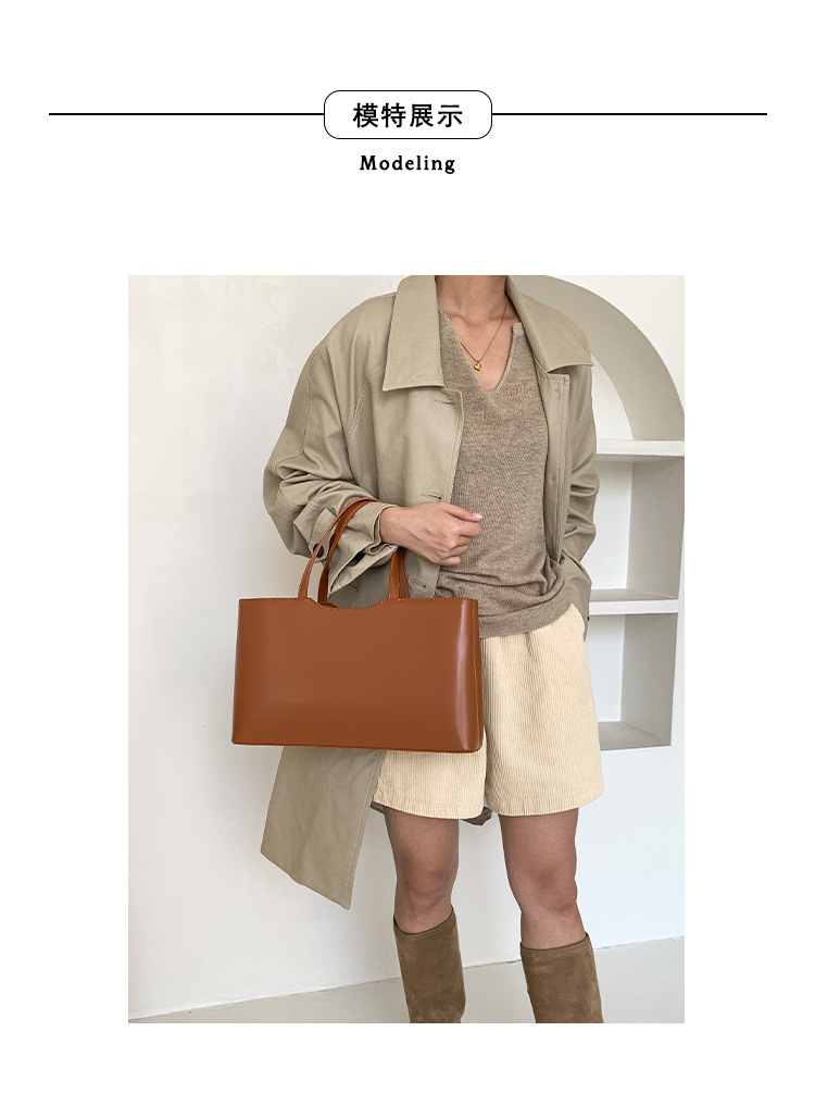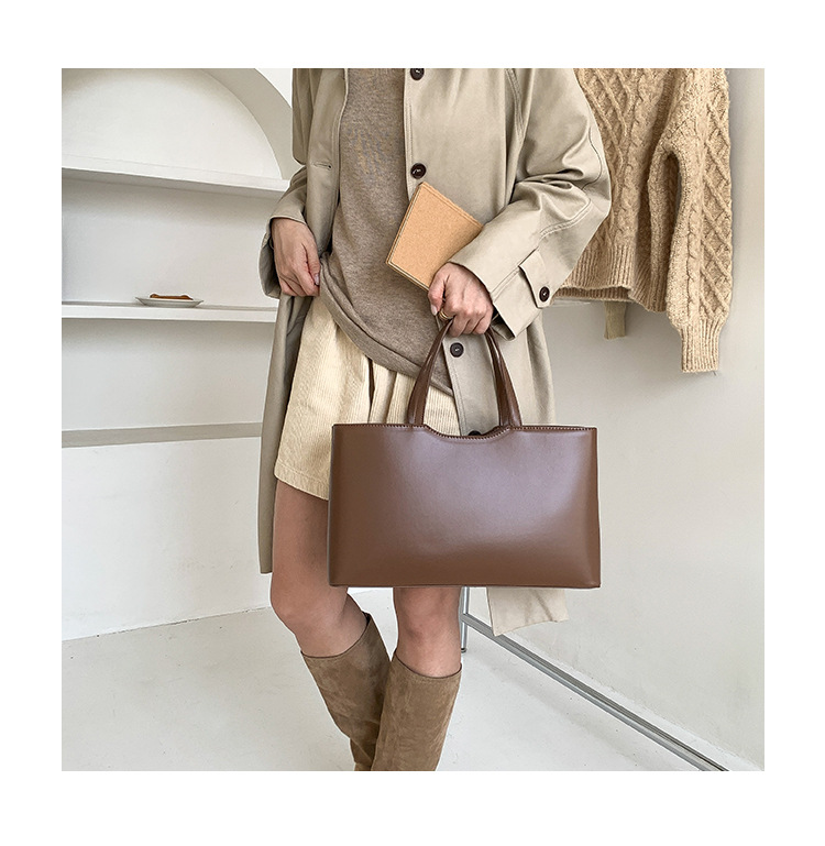 韩国ins风大容量手提托特包简约日常通勤手拎包纯色PU女包高级感