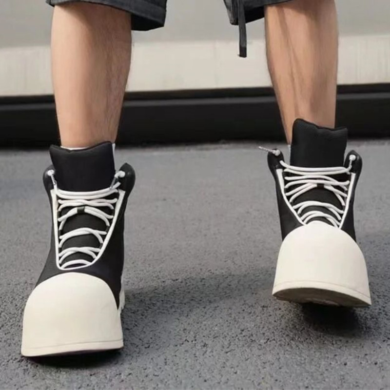 Sepatu Besar Catur Kaki Tinggi Sepatu Roti Lucu Kepala Bulat Penambah Tinggi Sol Tebal Model Sama Pria Wanita Sepatu Katun Tetap Hangat Olahraga Mudah Dipadu Padan