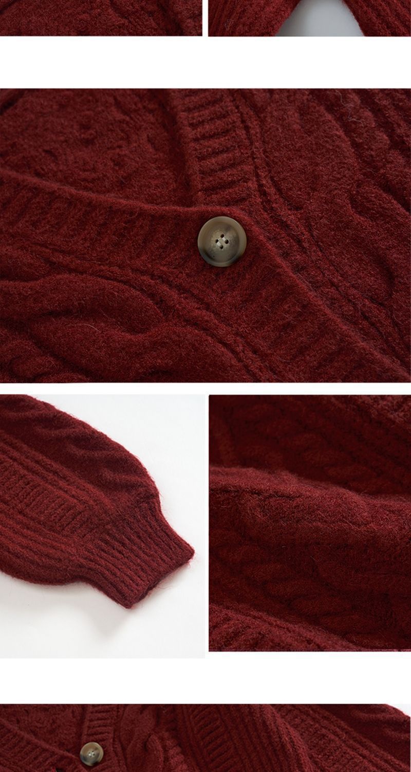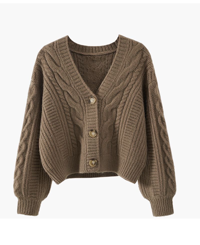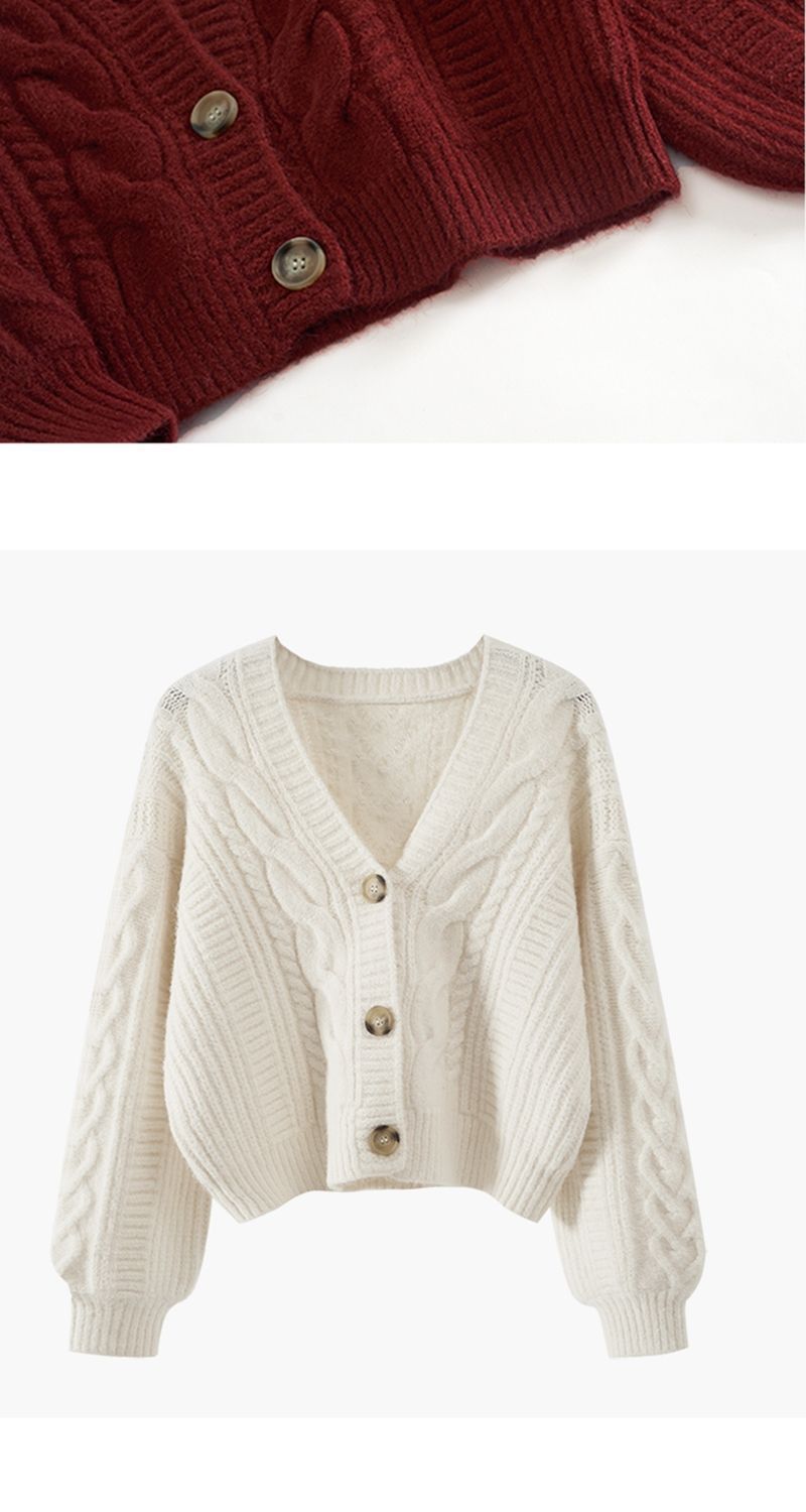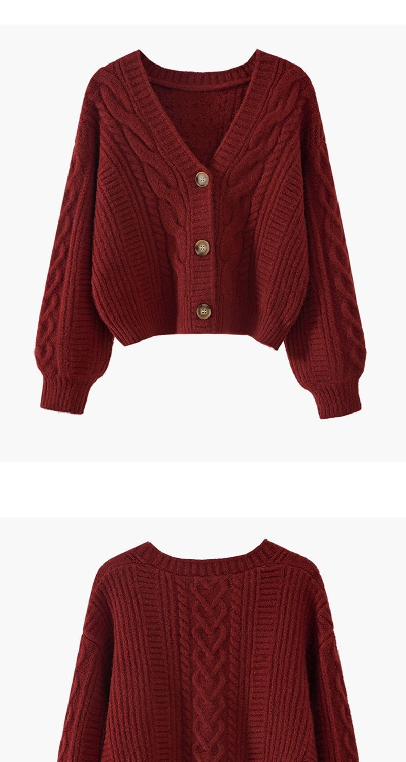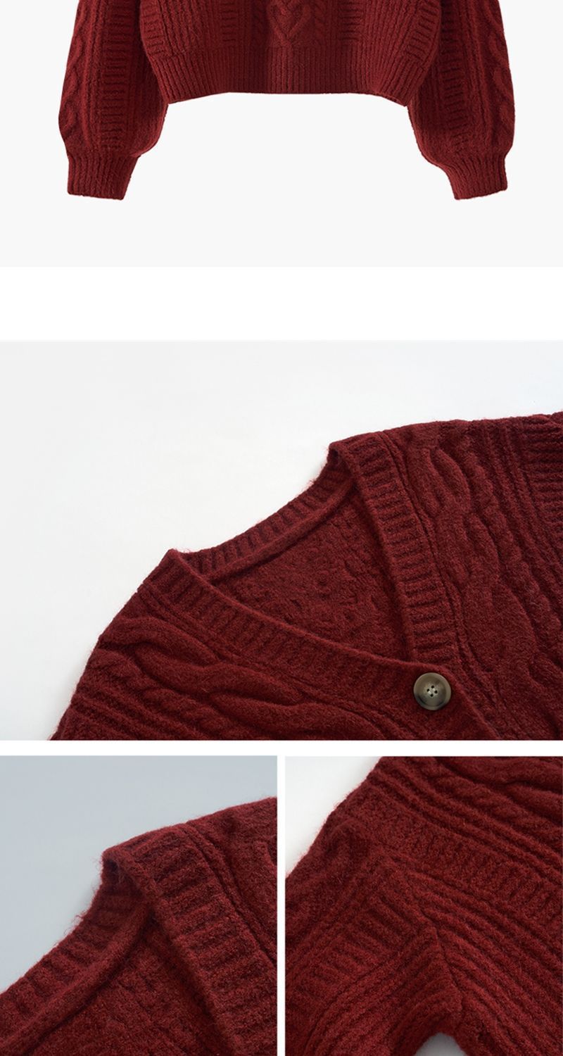 Sweater Kerah V Versi Korea Wanita Longgar Gaya Santai Musim Gugur dan Musim Dingin Pakaian Luar Kardigan Model Pendek Bunga Twist Retro Model Baru 2025