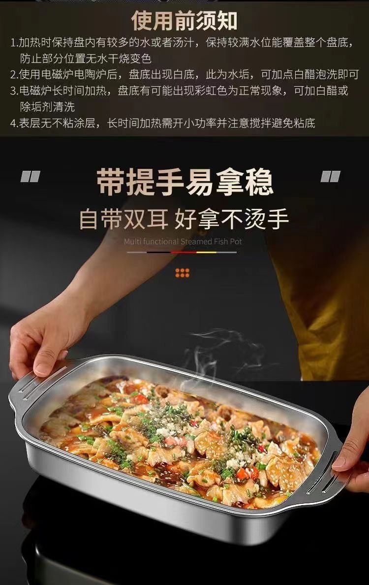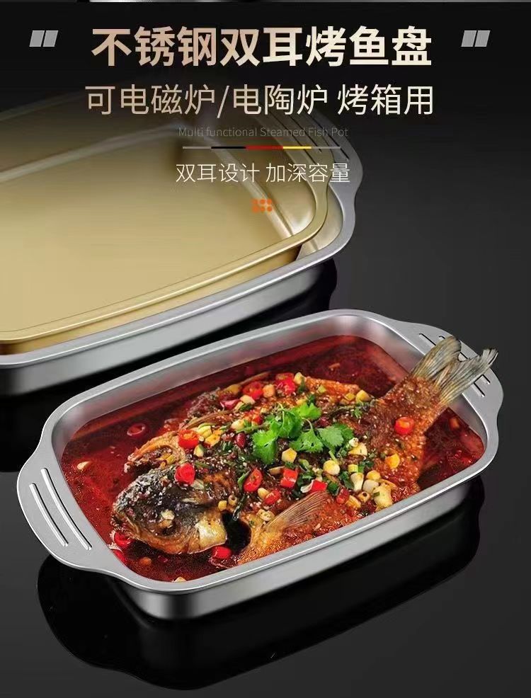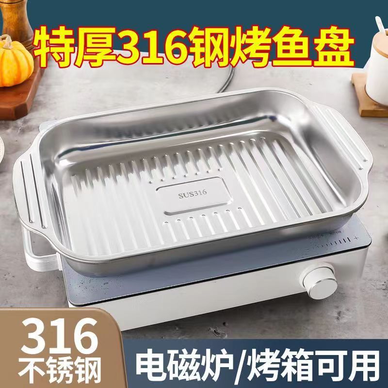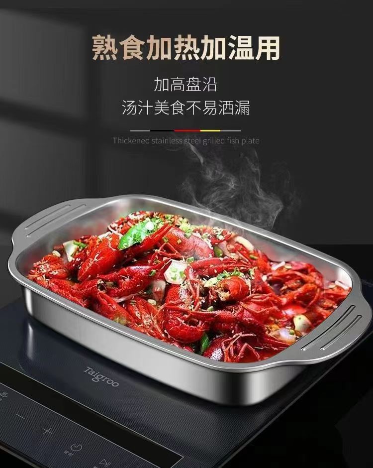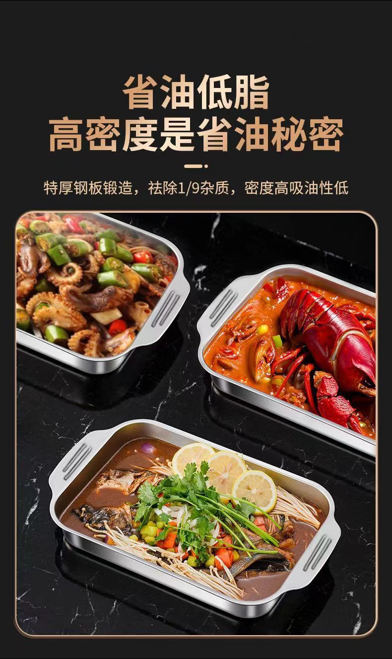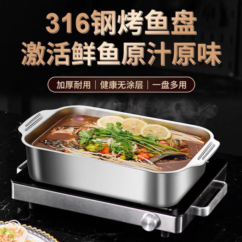 316 piring ikan bakar baja tahan karat persegi panjang kompor induksi khusus komersial pot udang piring makanan laut saus sayuran sup