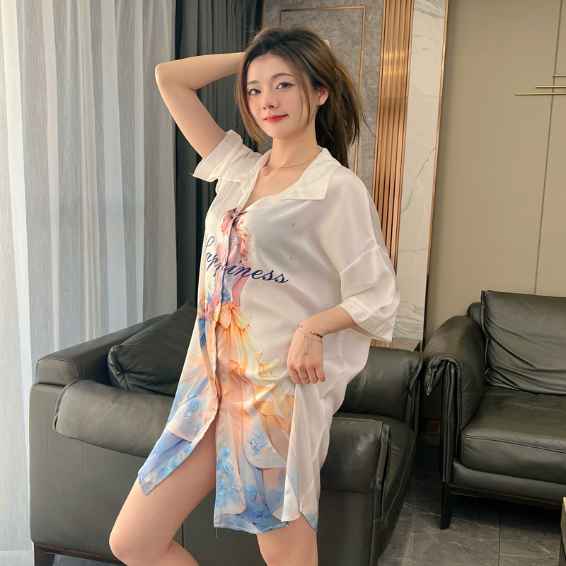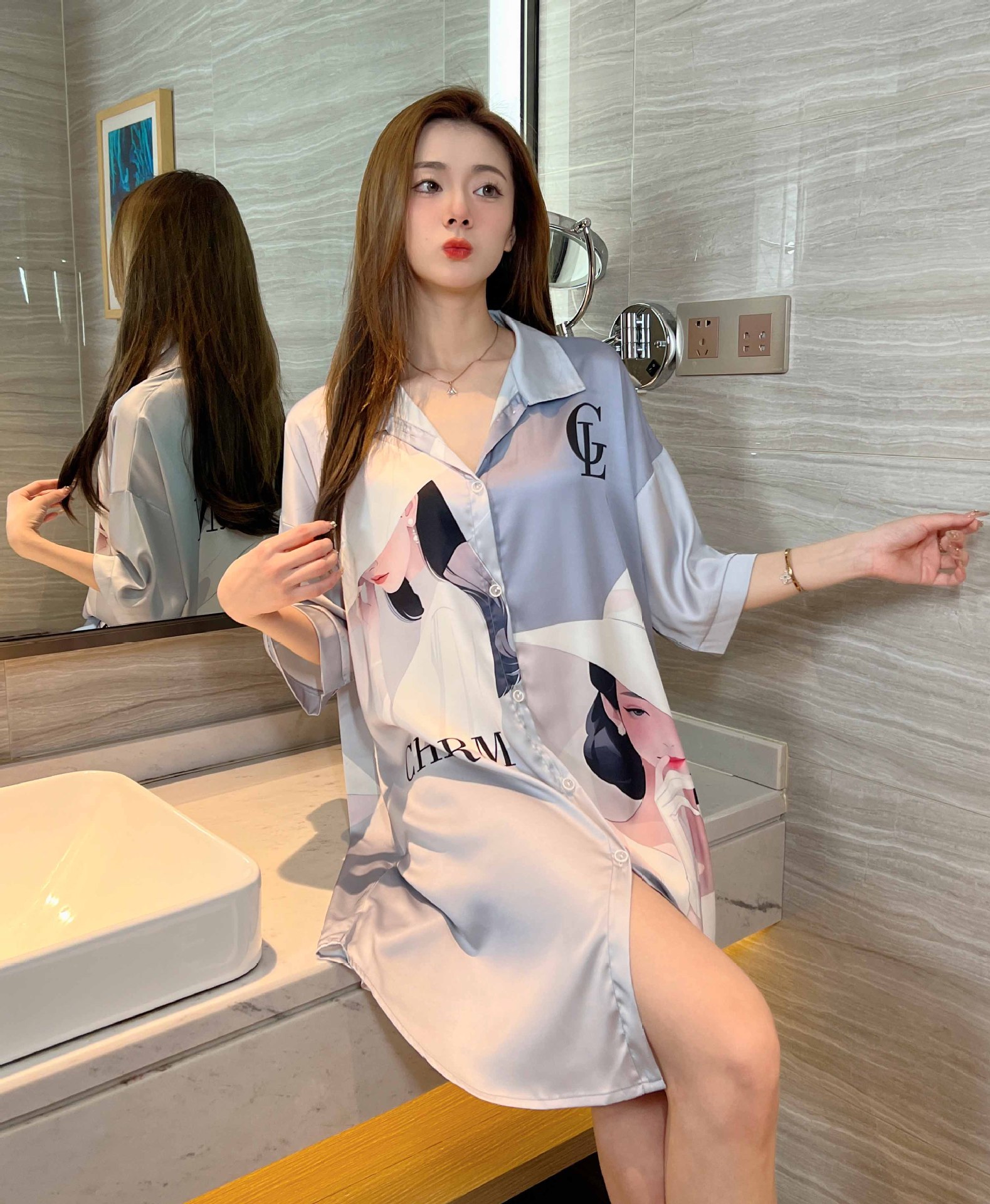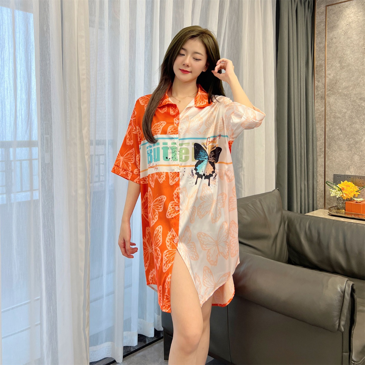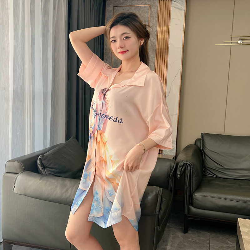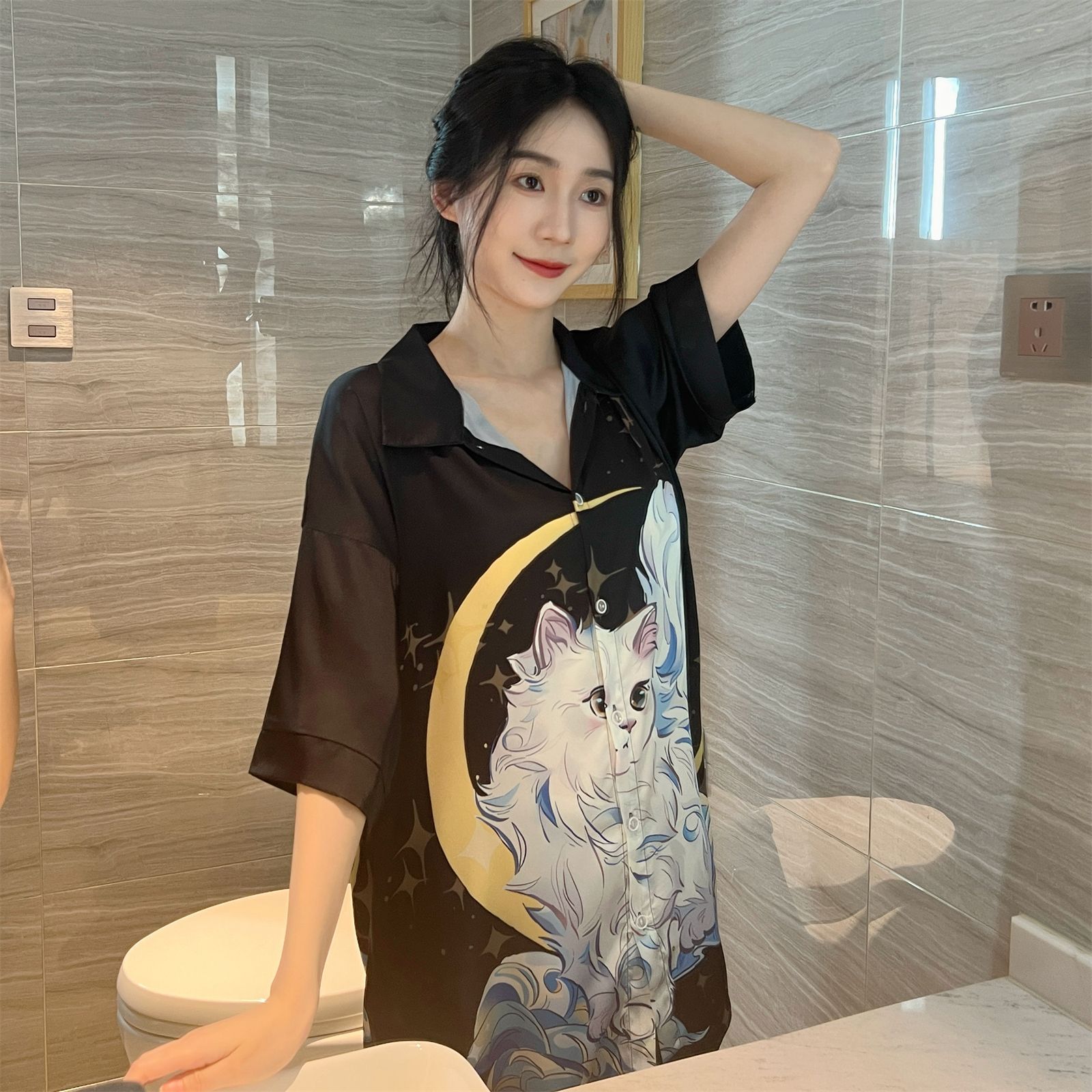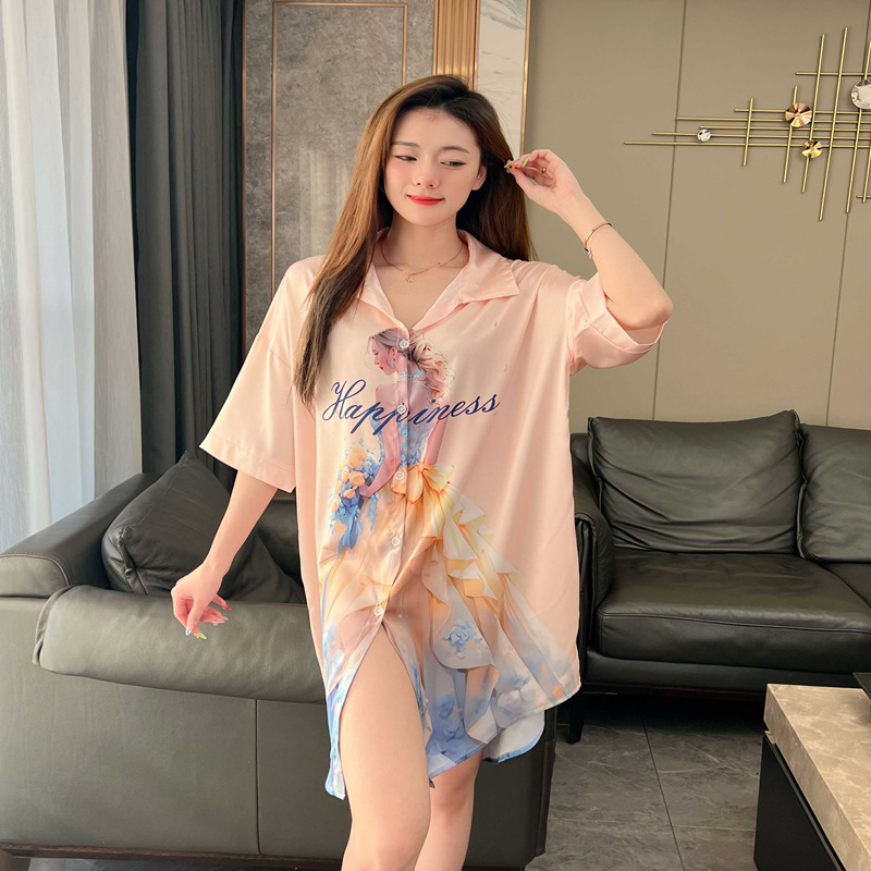 网红夏季睡衣可爱2025衬衫新款高级感冰丝宽松大码睡裙衣裙女裙