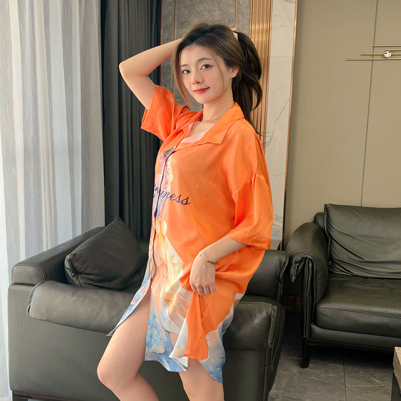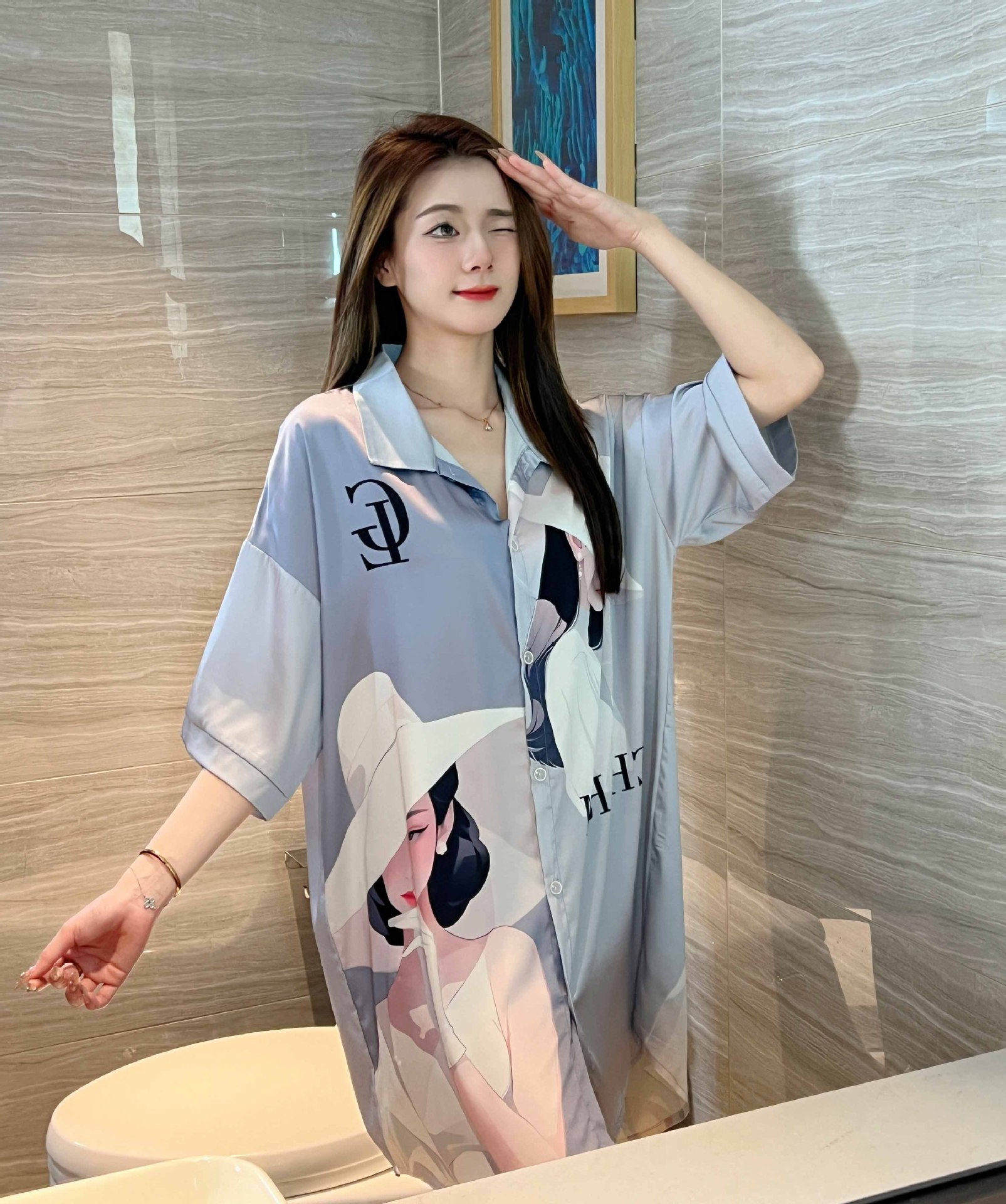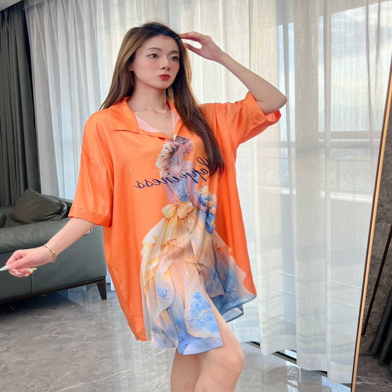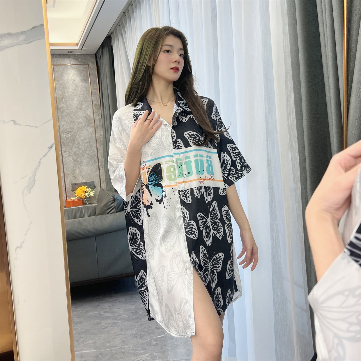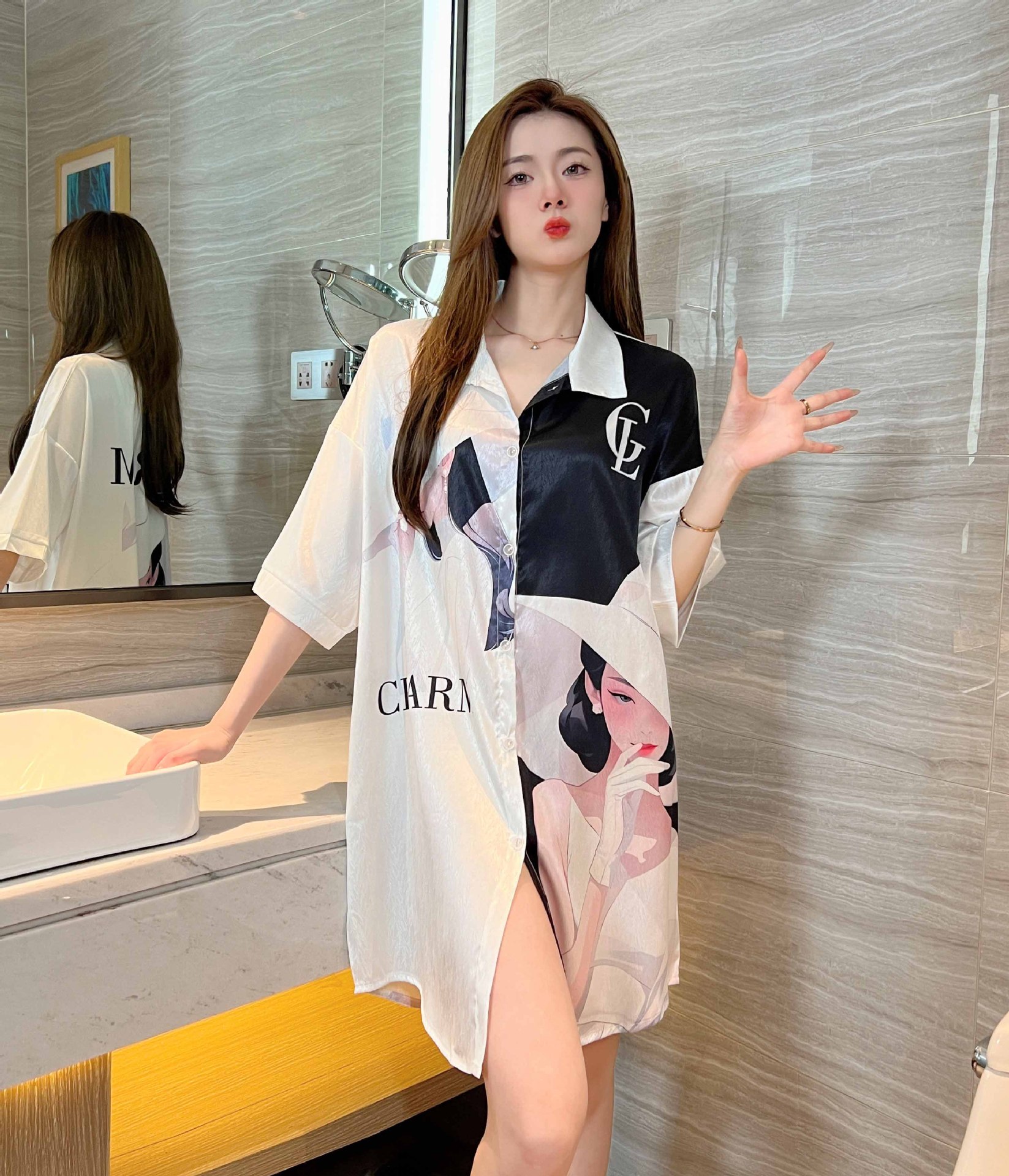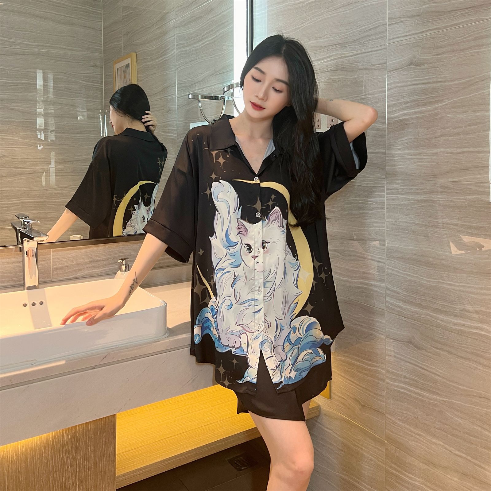 网红夏季睡衣可爱2025衬衫新款高级感冰丝宽松大码睡裙衣裙女裙