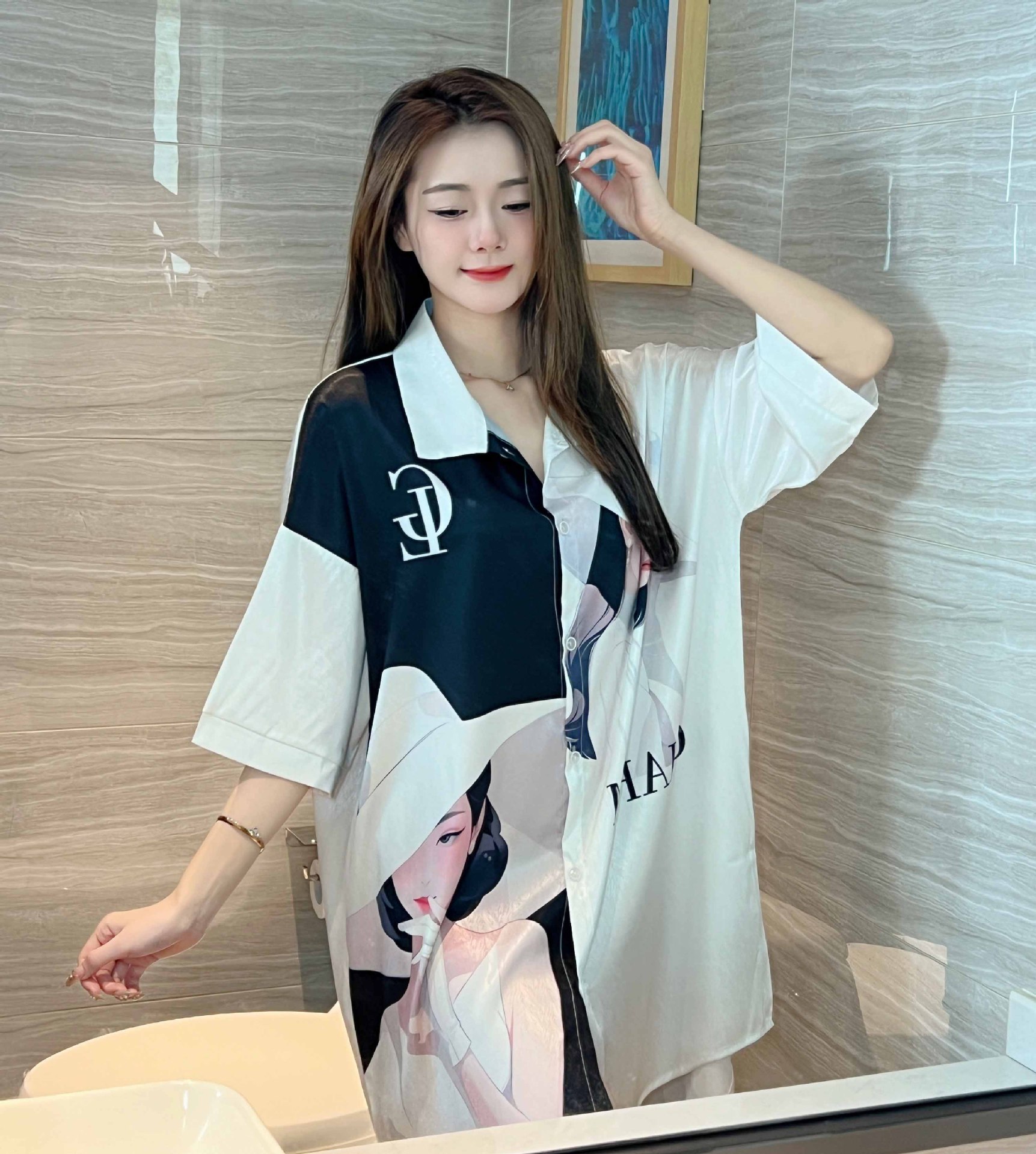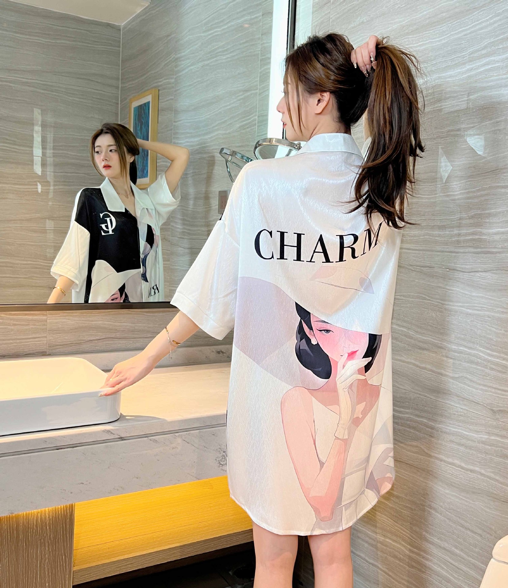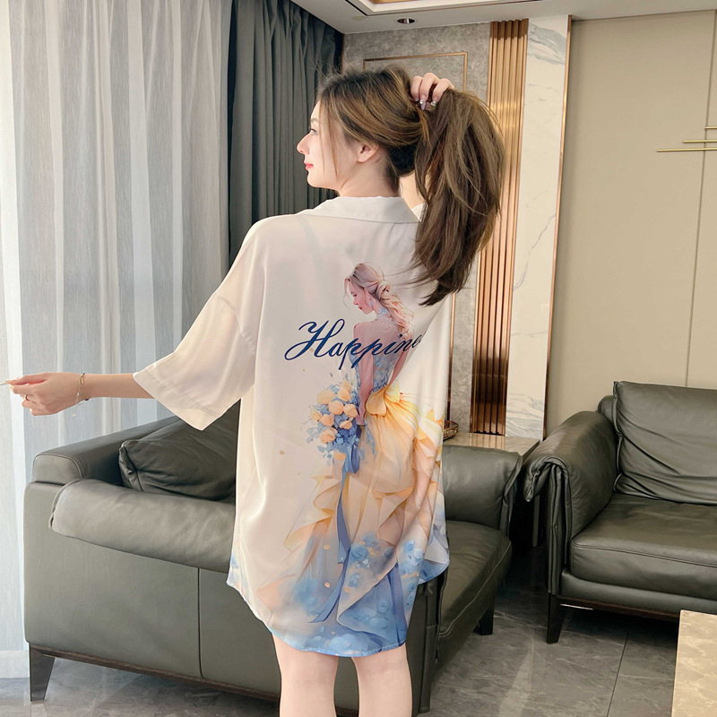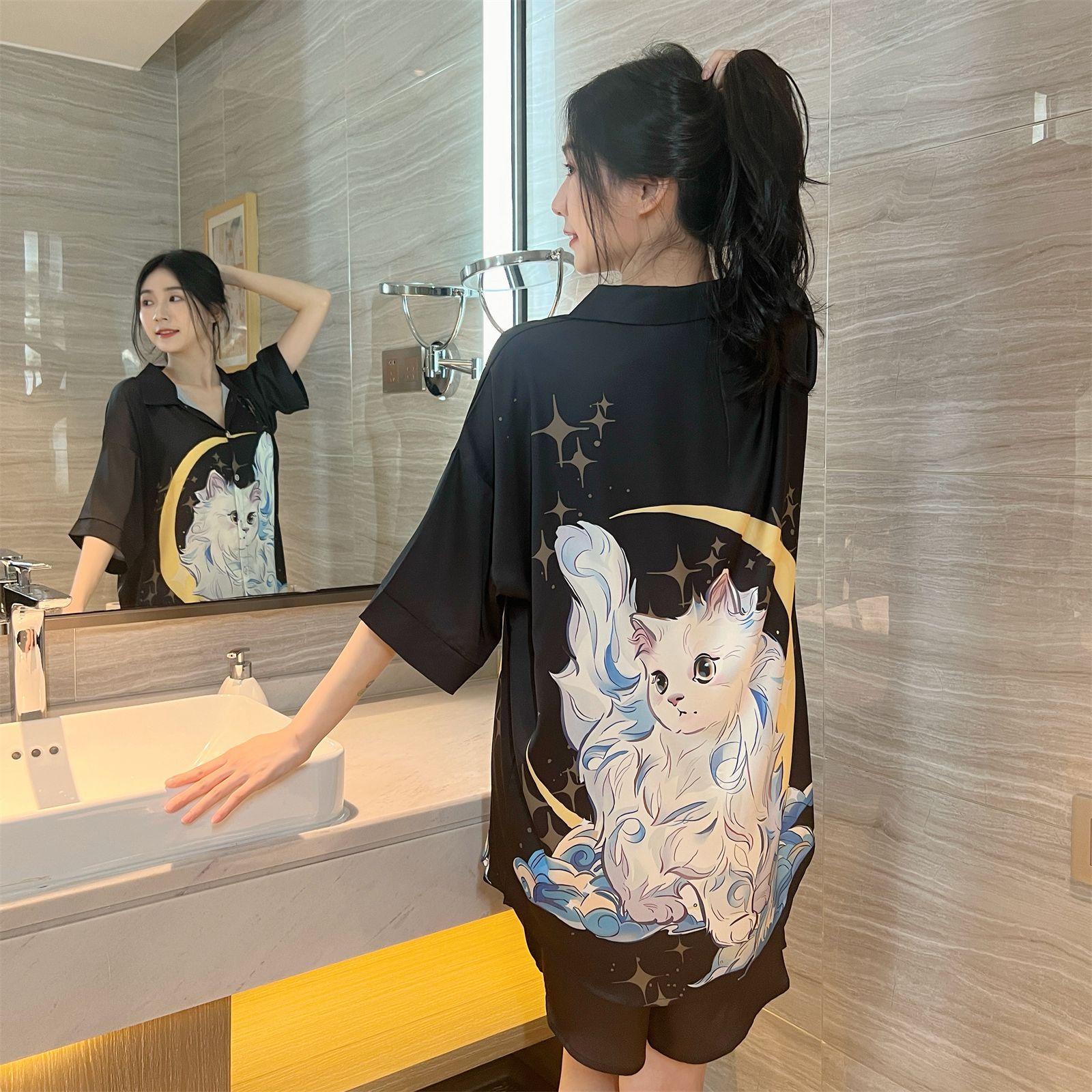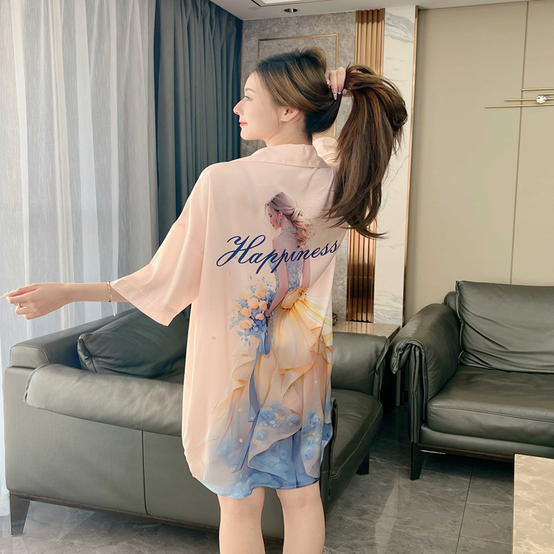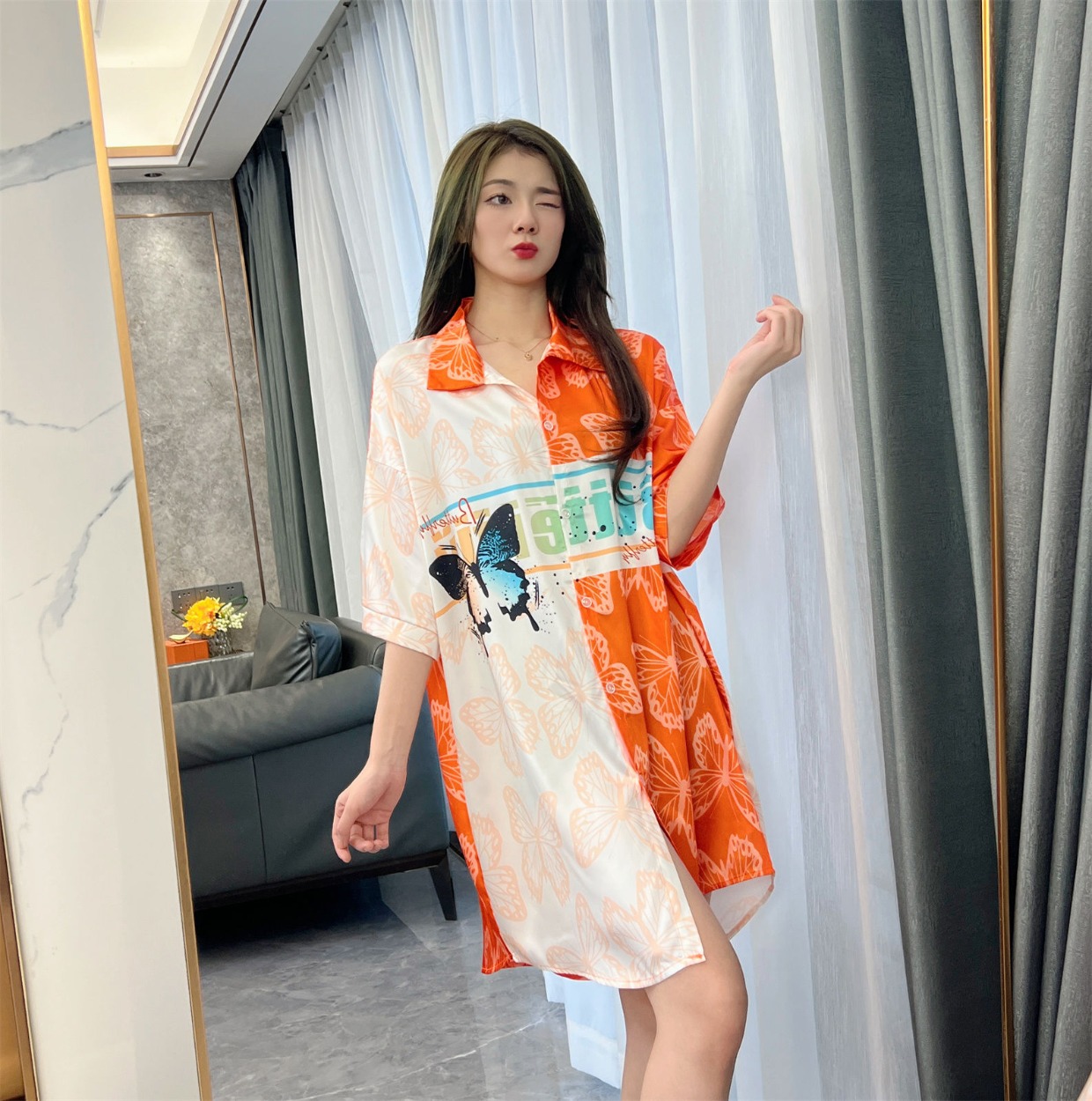 网红夏季睡衣可爱2025衬衫新款高级感冰丝宽松大码睡裙衣裙女裙