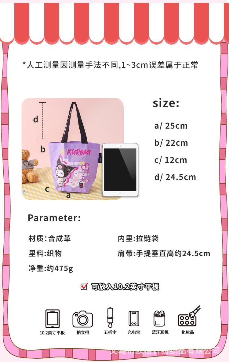 Tas Anyaman Versi IKEA Resmi Asli Sanrio Tas Bahu Tunggal Tot Dapat Diterima Kartun Portabel untuk Pria dan Wanita
