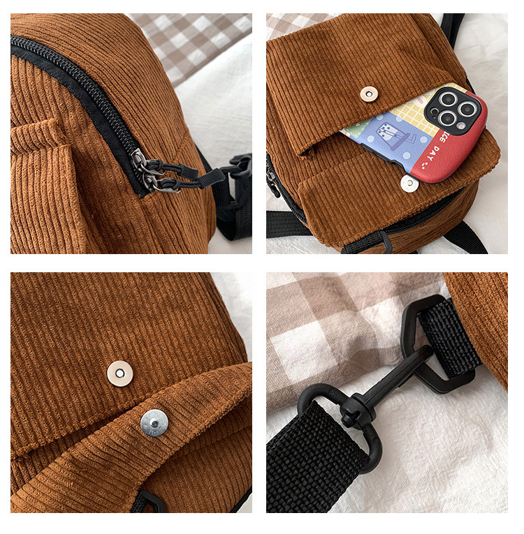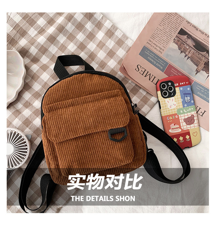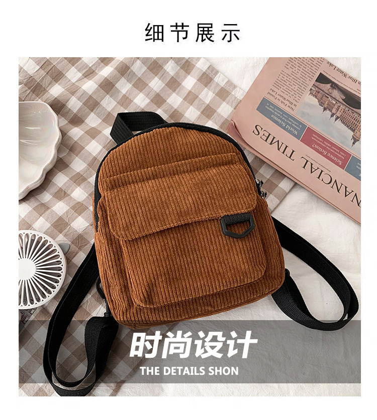 Tas bahu wanita kasual sederhana, tas punggung kecil korduroi gaya Korea bertekstur, tas wanita ins 2024