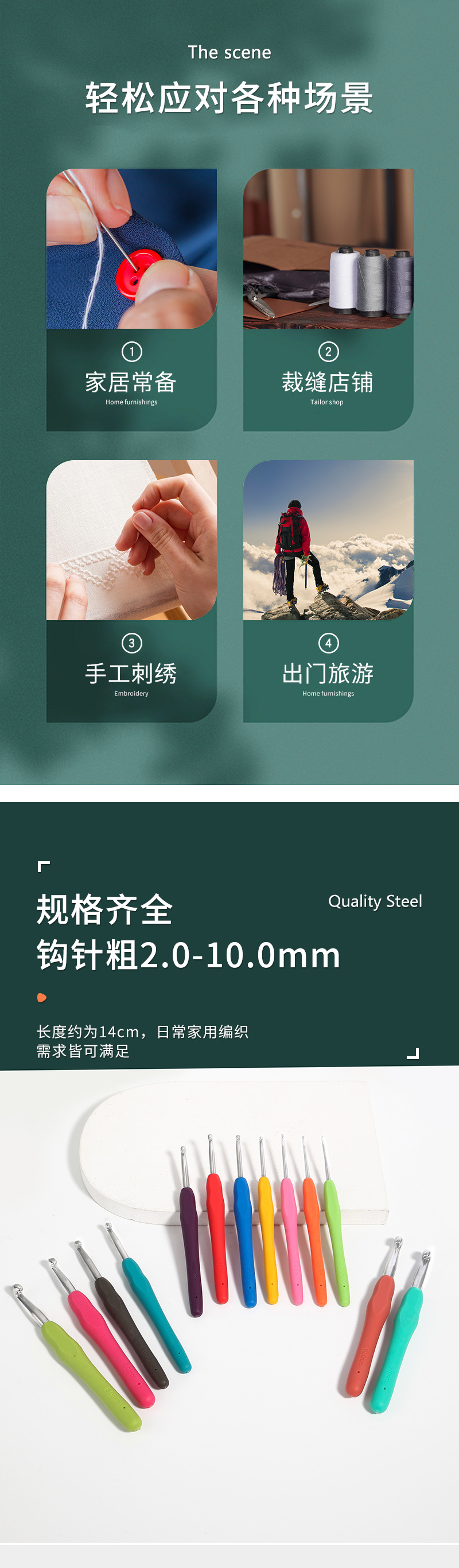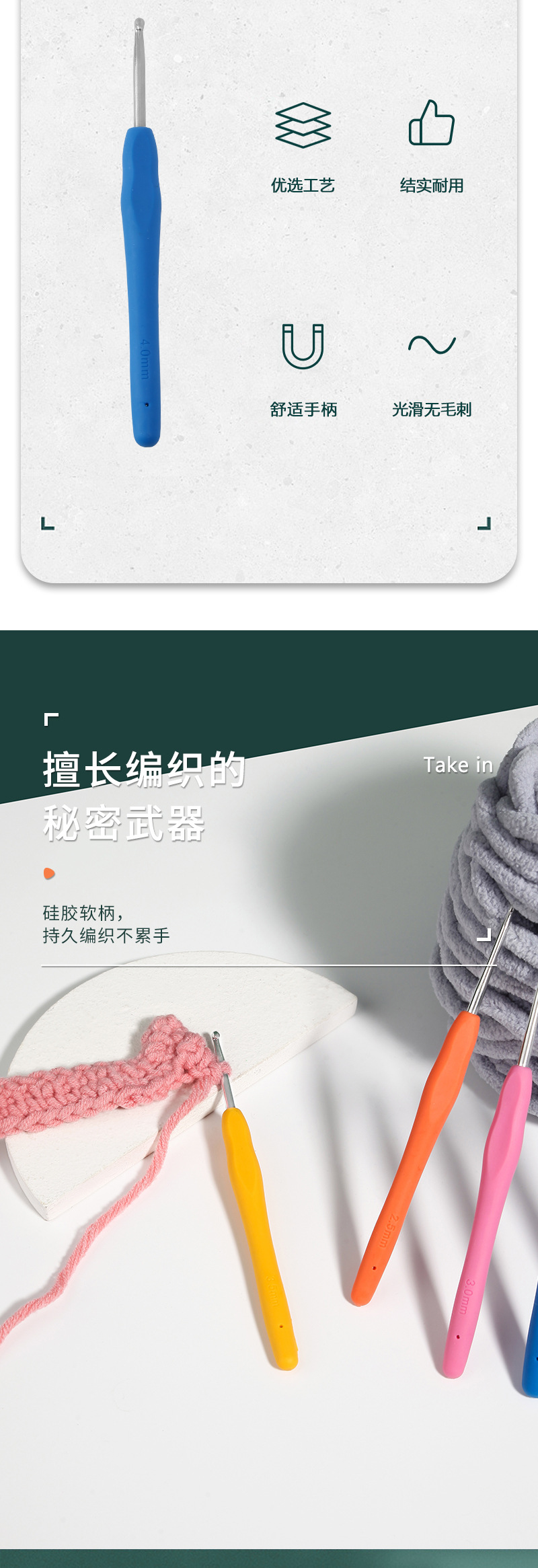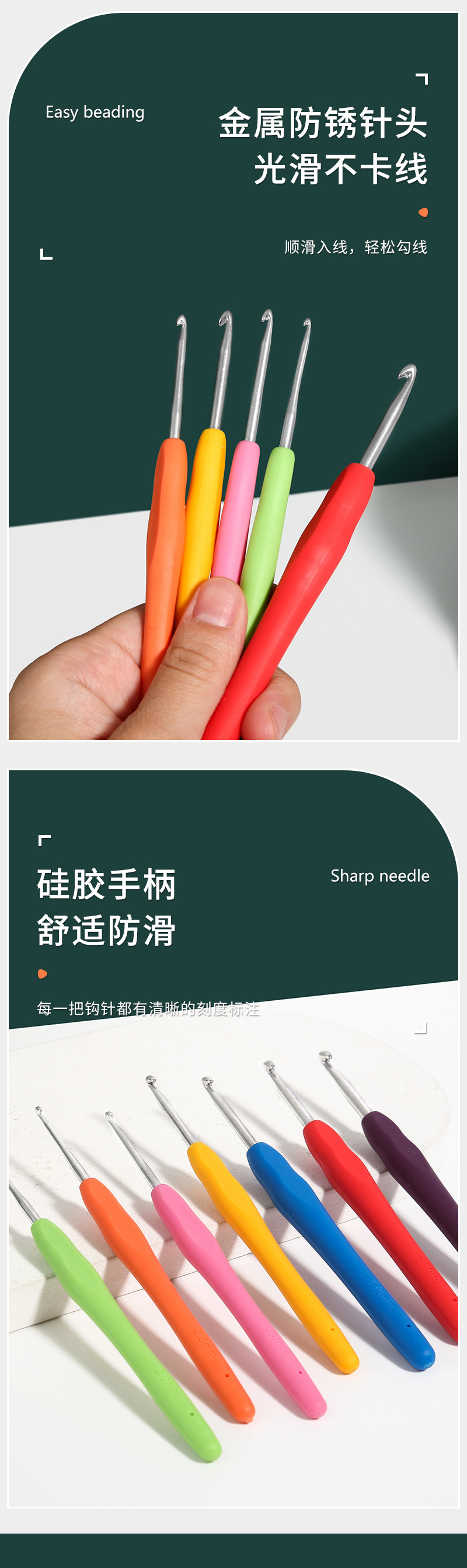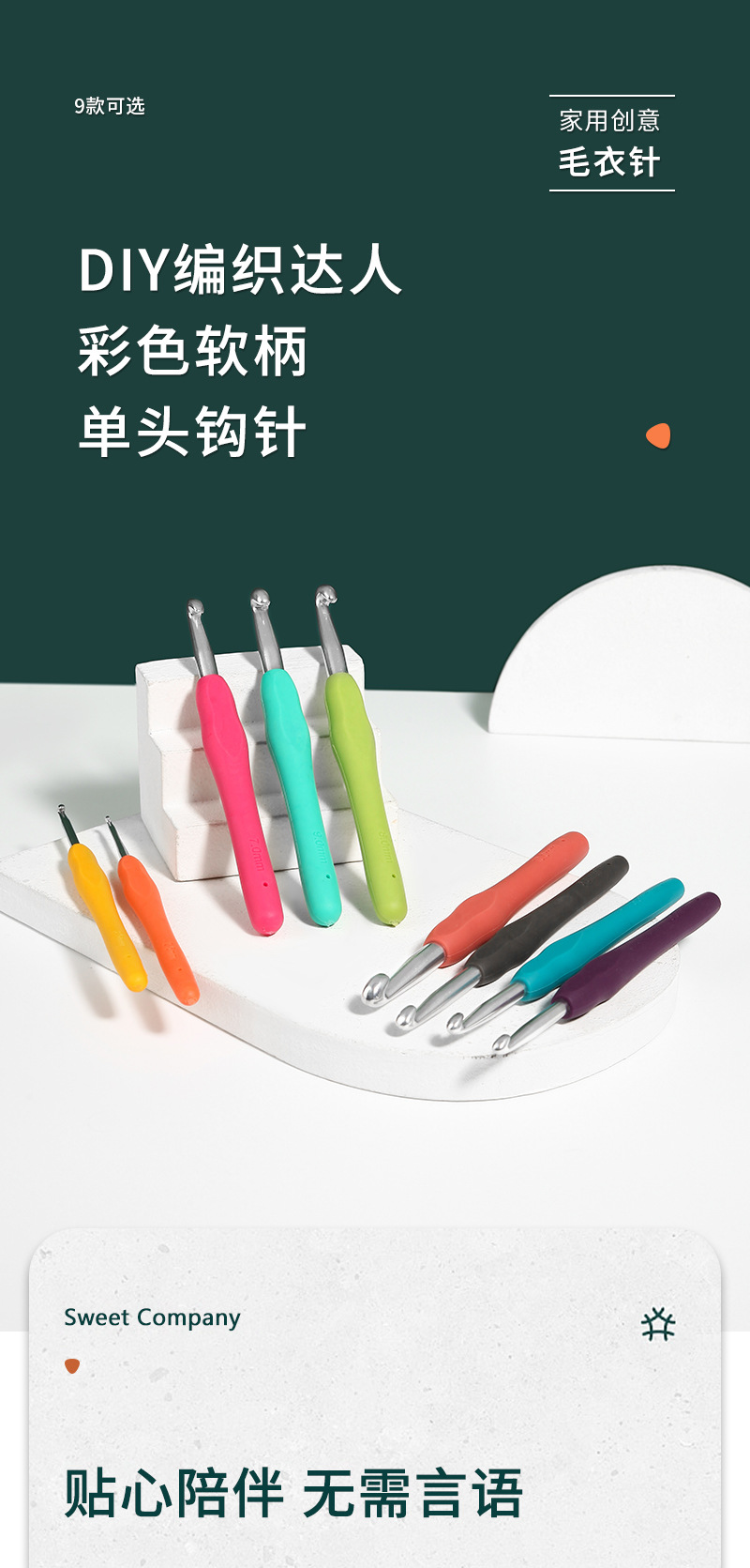 Pabrik langsung pegangan warna lembut sweater crochet Alat rajut tangan crochet kepala logam crochet wol padat