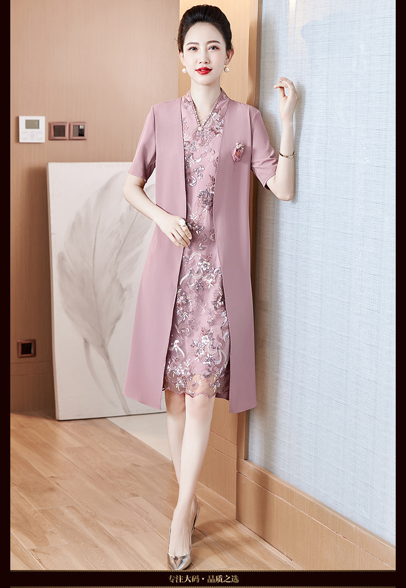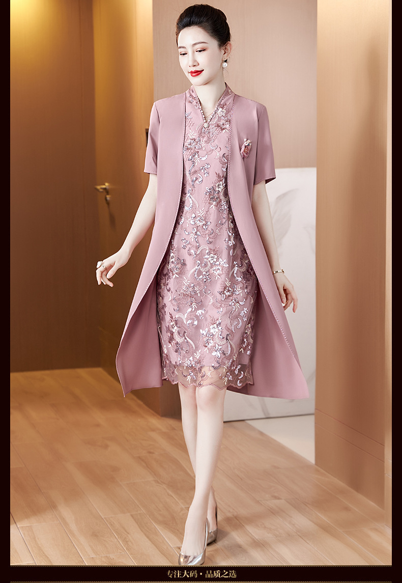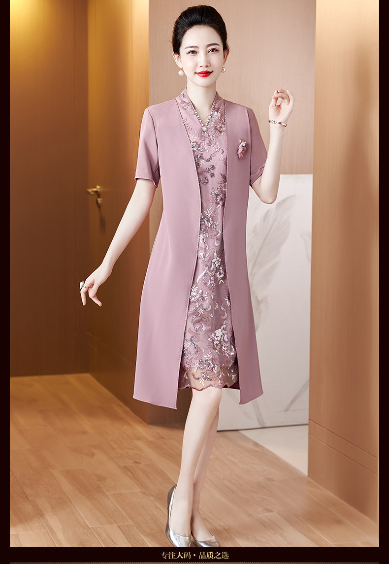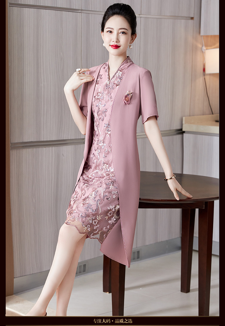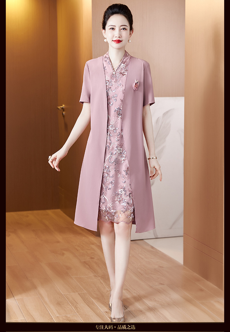 Gaun perjamuan pernikahan mulia baru musim panas gaun ibu-ibu senang mertua dua potong palsu gaya Barat gaun ibu dapat dipakai di waktu biasa