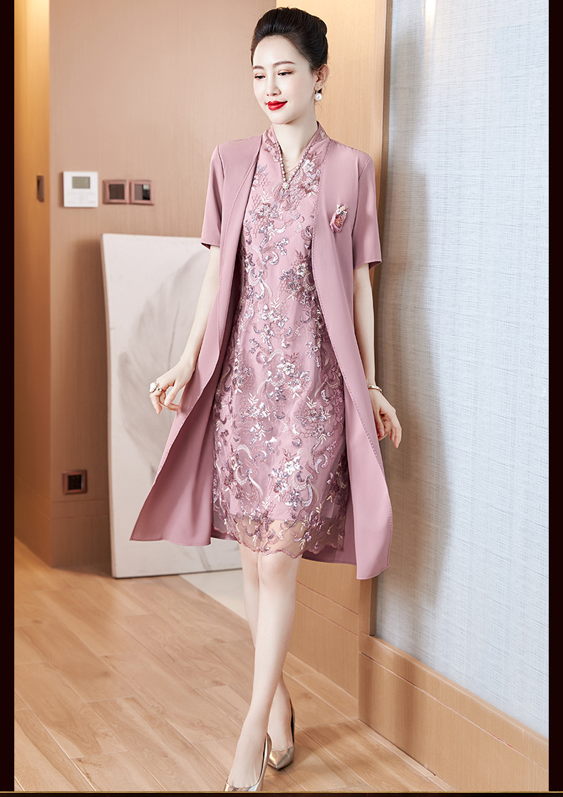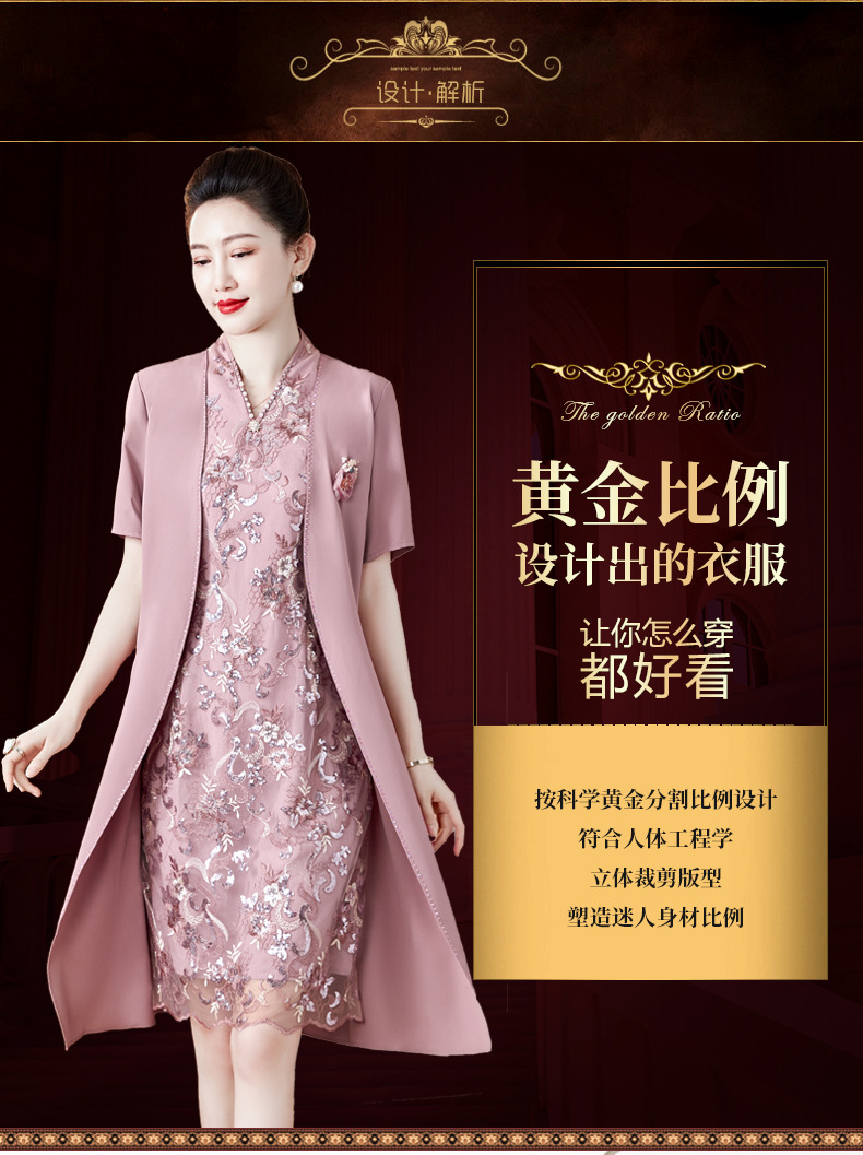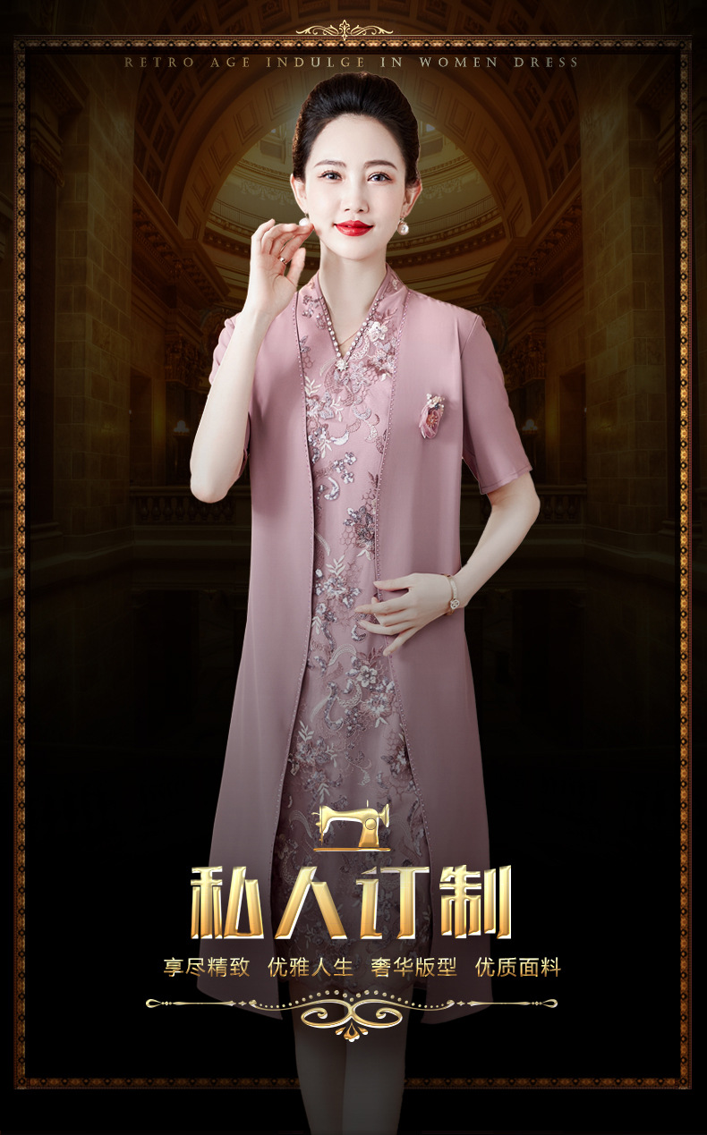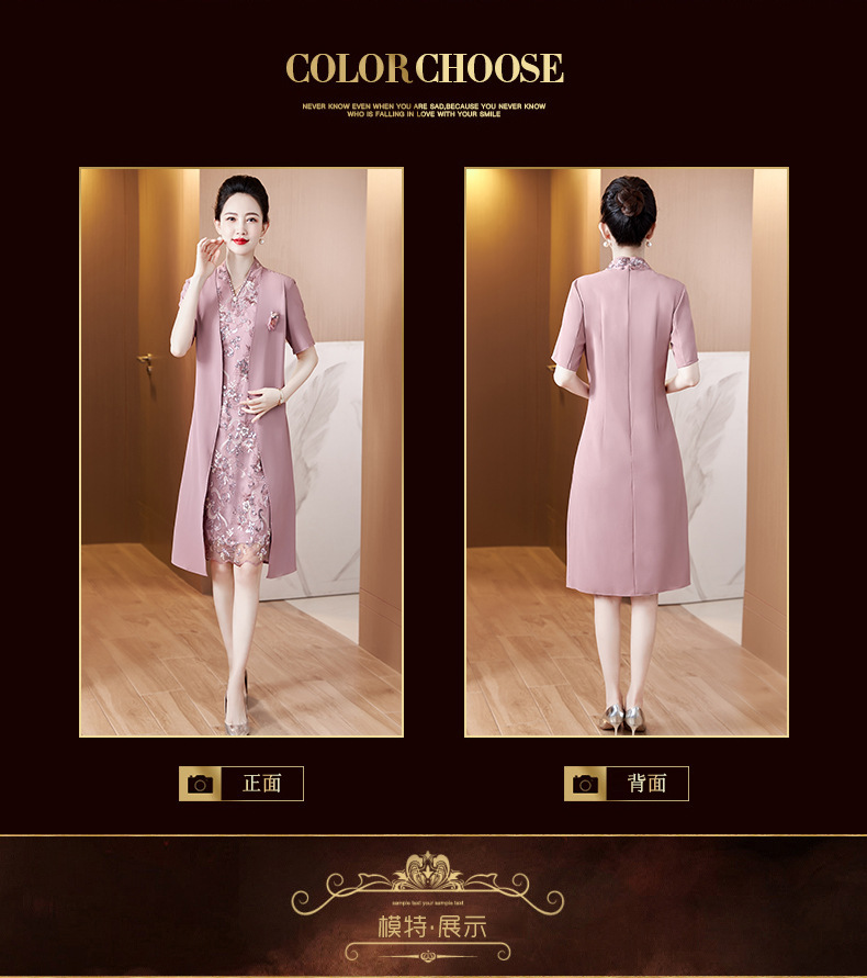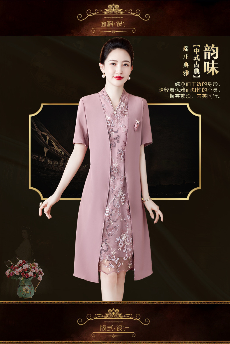 Gaun perjamuan pernikahan mulia baru musim panas gaun ibu-ibu senang mertua dua potong palsu gaya Barat gaun ibu dapat dipakai di waktu biasa