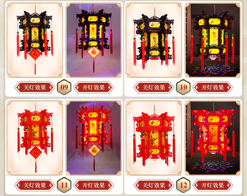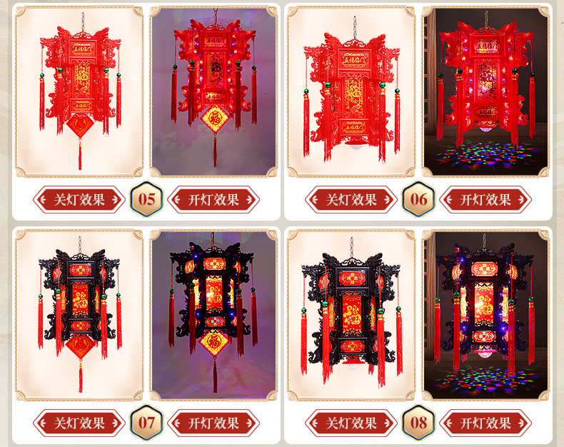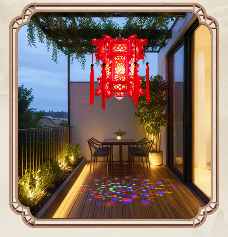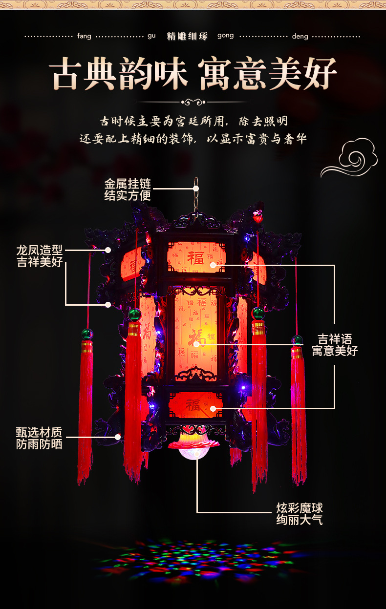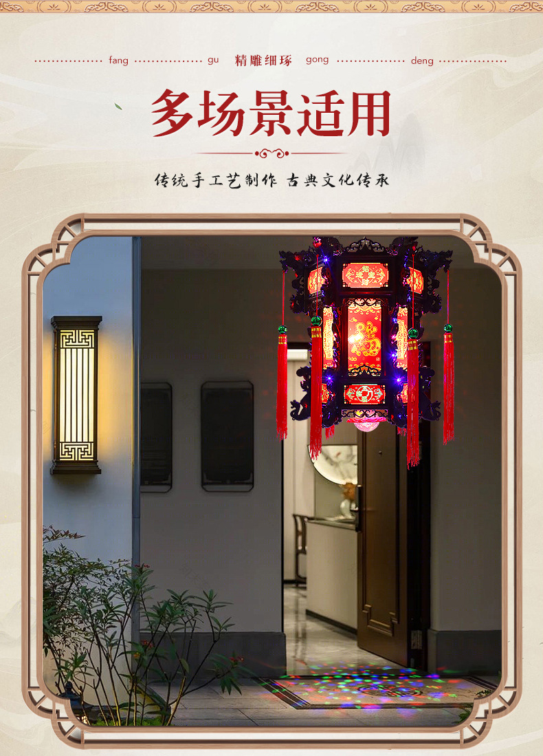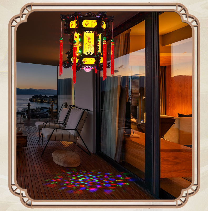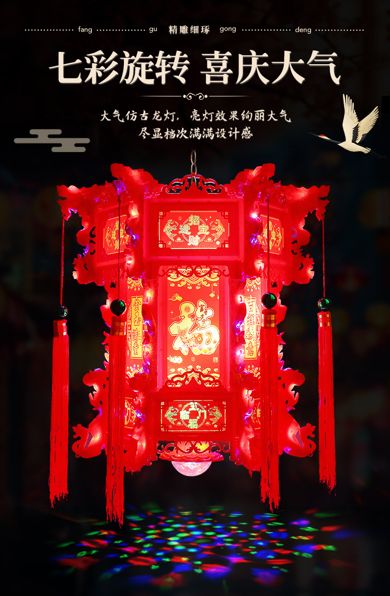 Lampu LED Tiongkok, lampu naga heksagonal antik, lampu istana warna-warni pintu balkon berputar, lampu tempat lilin kuda