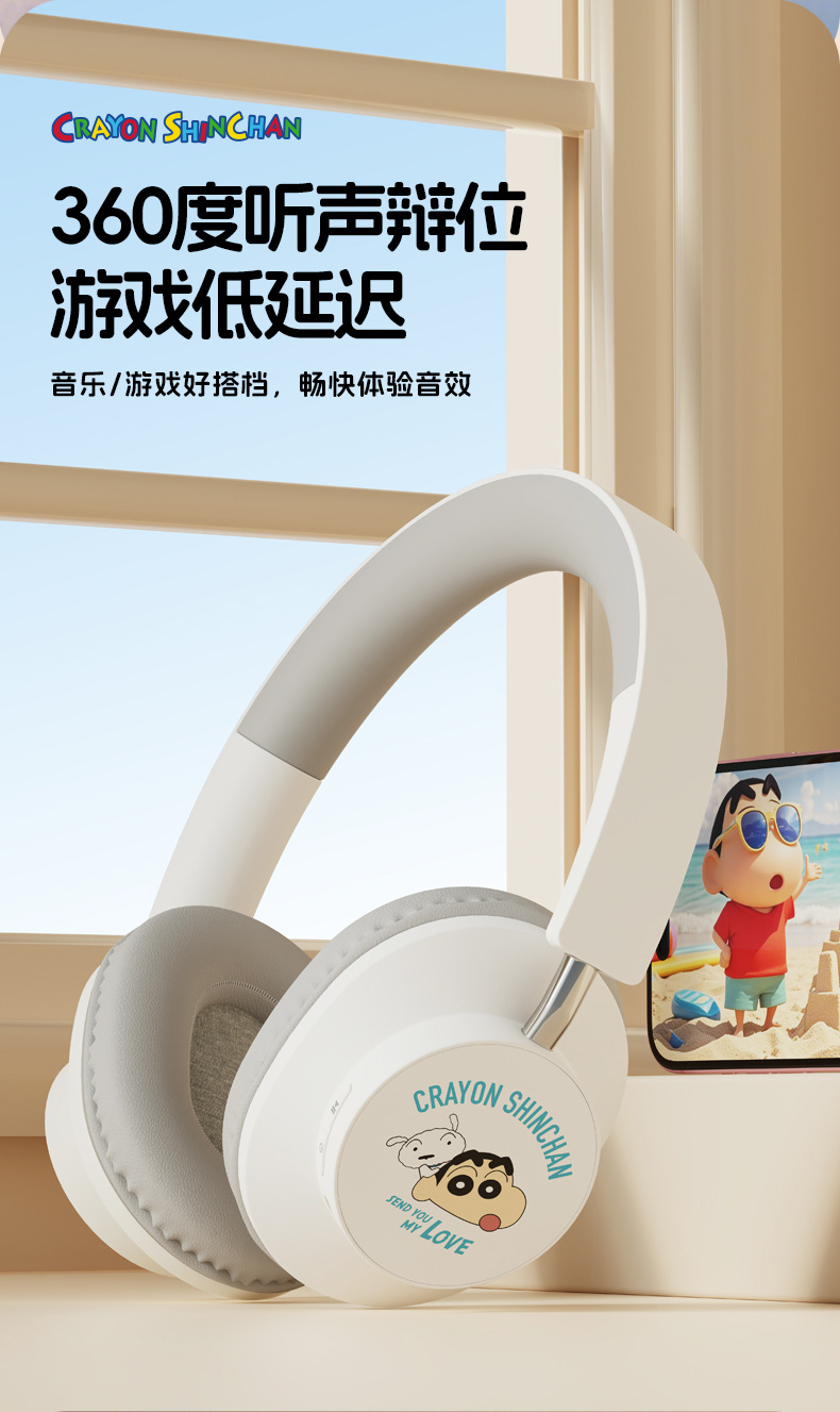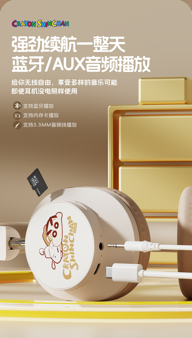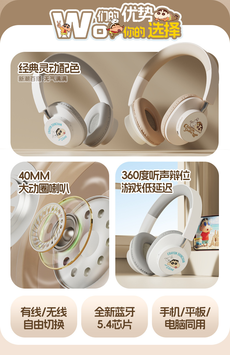 蜡笔小新头戴蓝牙耳机高颜值全包电竞游戏音乐可插卡接线电脑耳麦