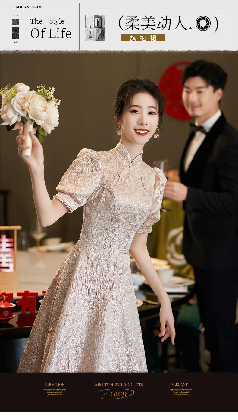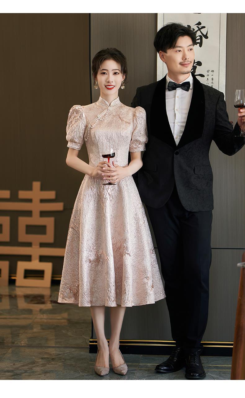 Gaun kecil gaya China baru untuk wanita gaun roti bakar cheongsam baru 2024 gaun pesta pertunangan pernikahan