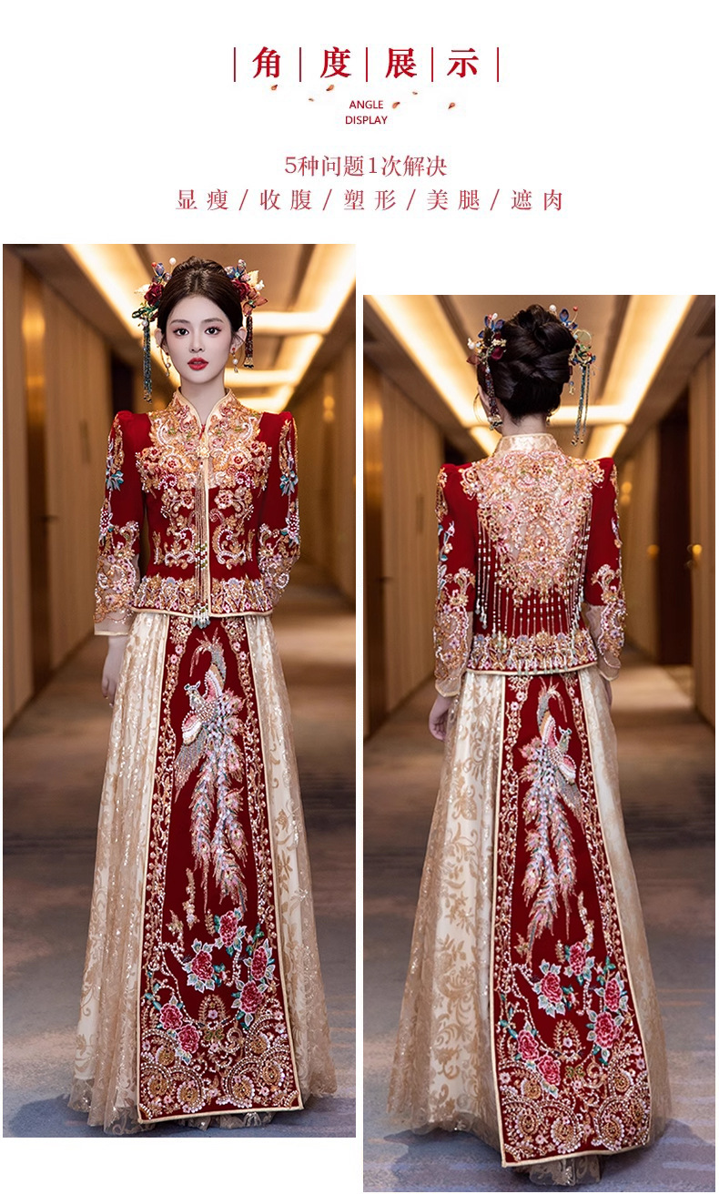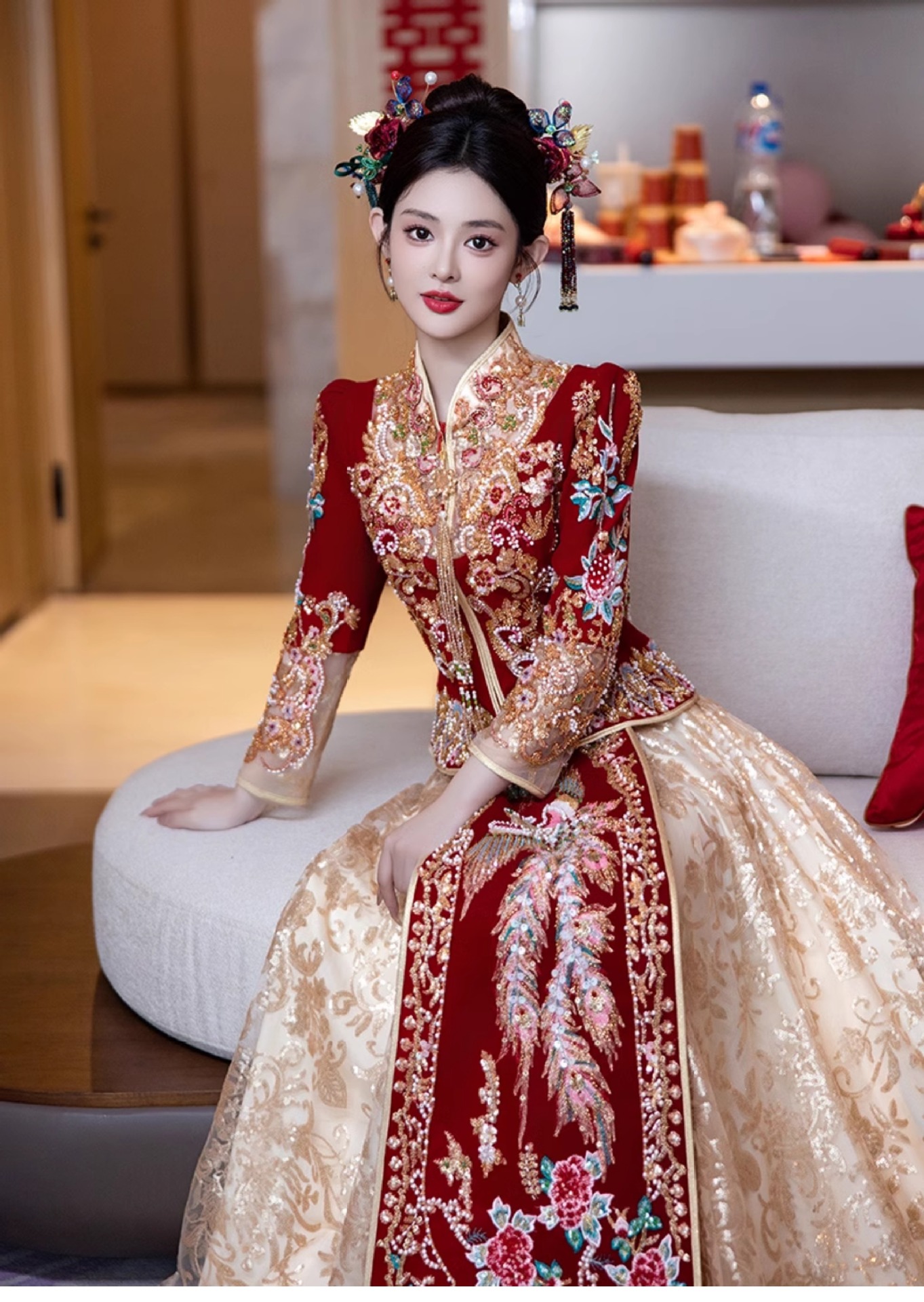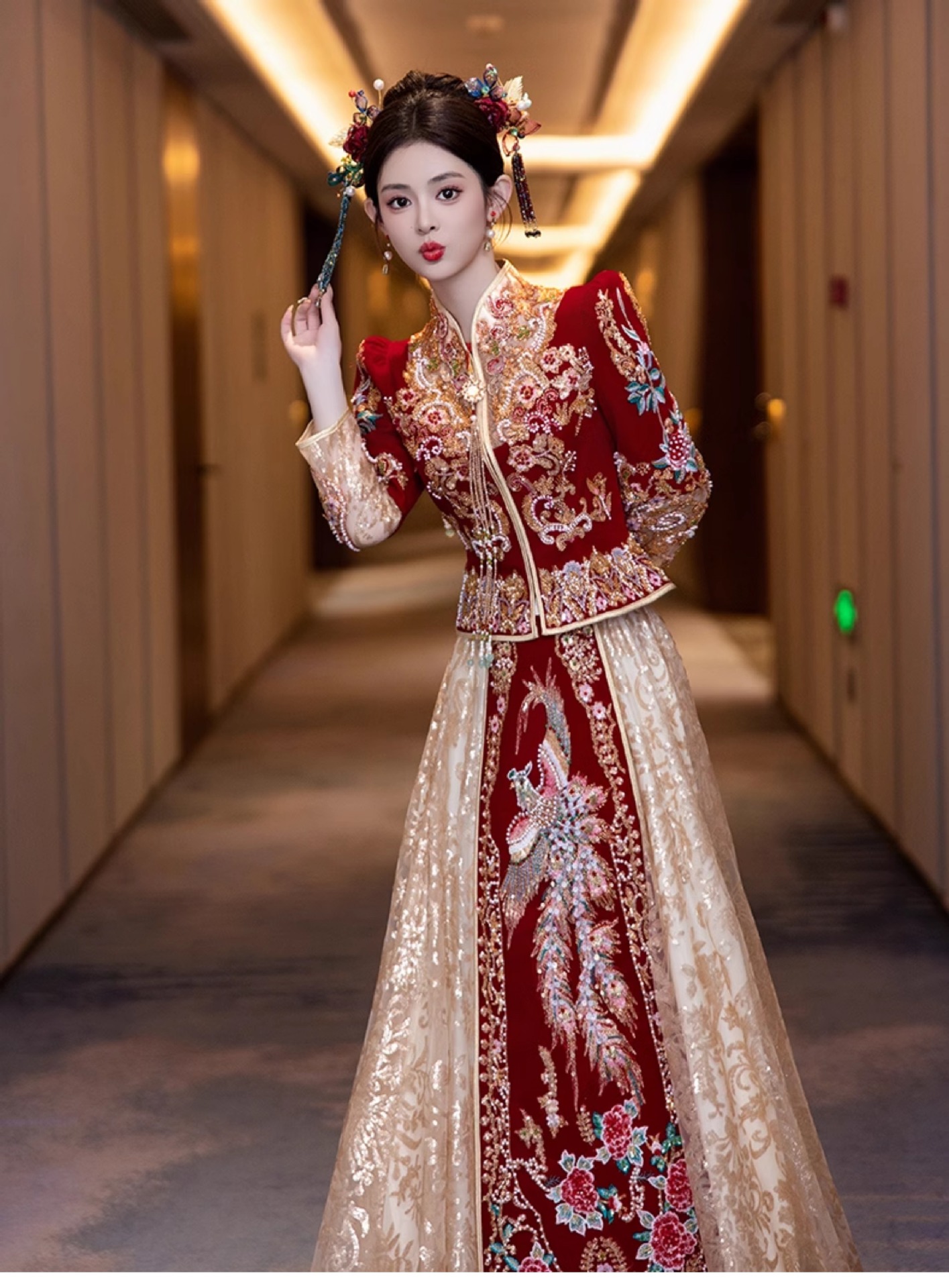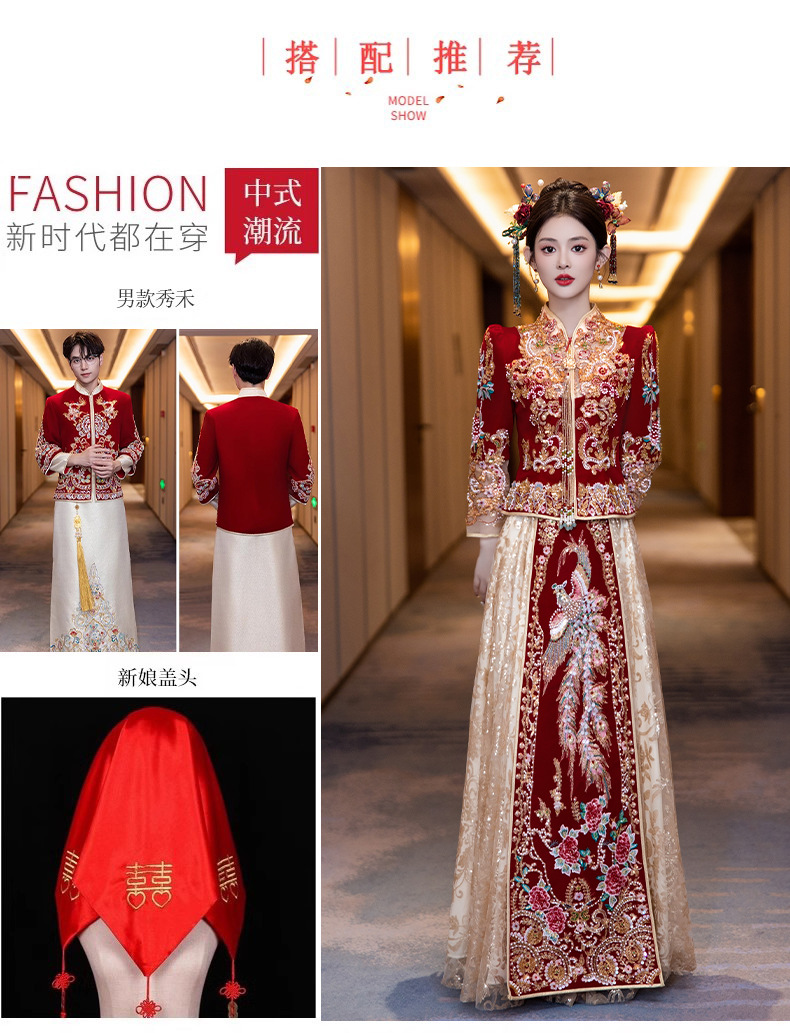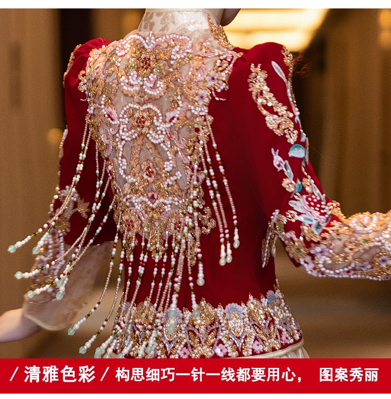 Pakaian Beludru Pakaian Pernikahan Pengantin Wanita Model Baru 2025 Pakaian Pernikahan Gaya Tiongkok Pakaian Bersulang Ukuran Besar Pakaian Pernikahan Musim Semi dan Musim Panas
