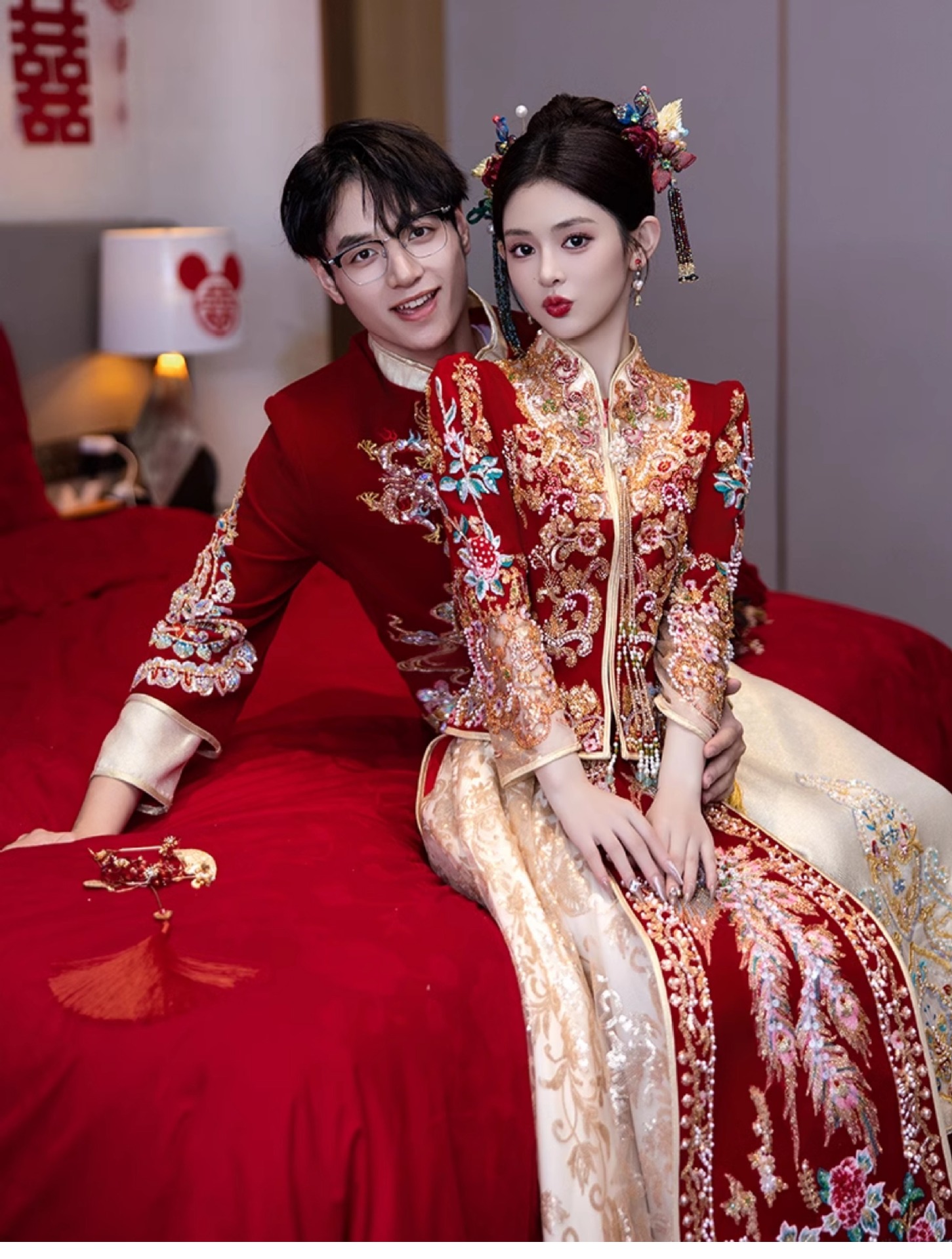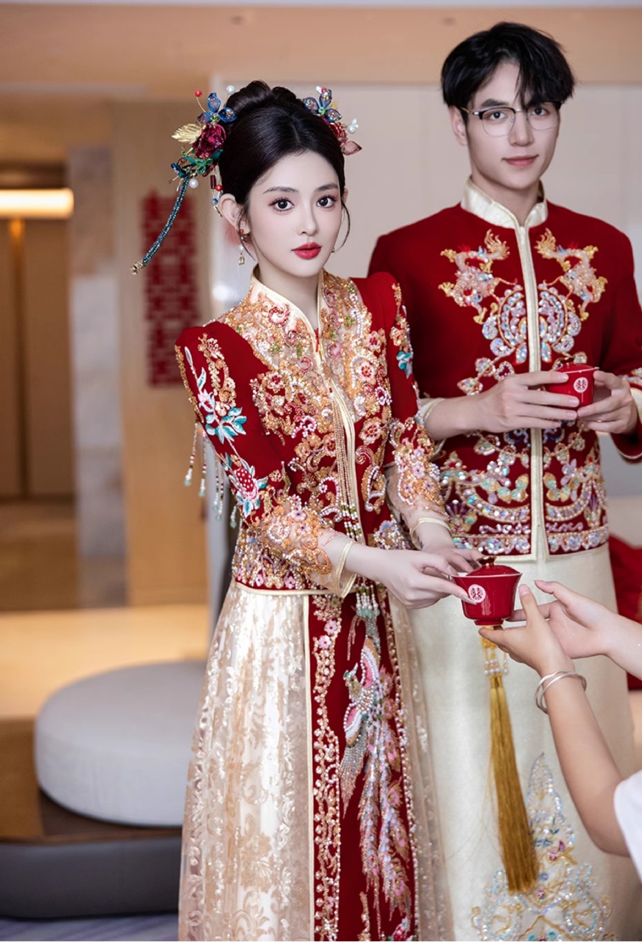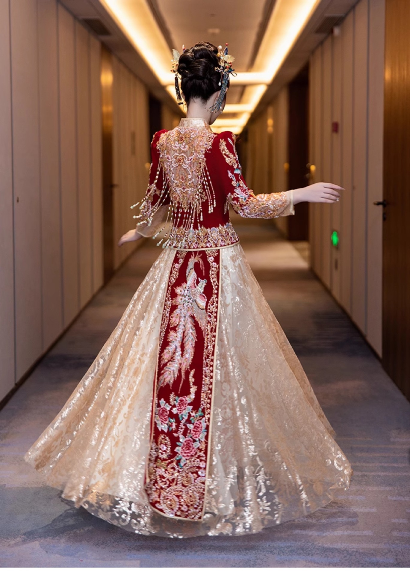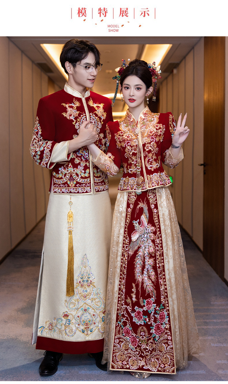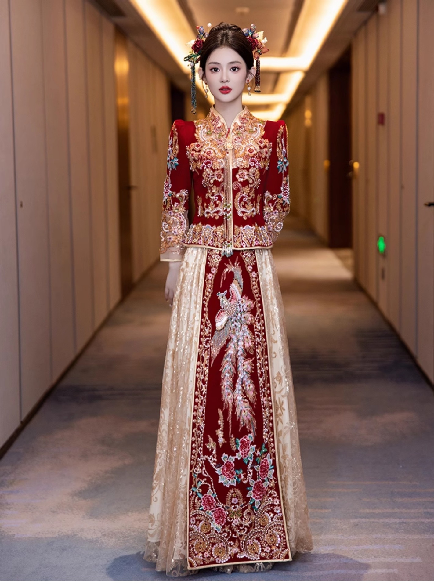 Pakaian Beludru Pakaian Pernikahan Pengantin Wanita Model Baru 2025 Pakaian Pernikahan Gaya Tiongkok Pakaian Bersulang Ukuran Besar Pakaian Pernikahan Musim Semi dan Musim Panas