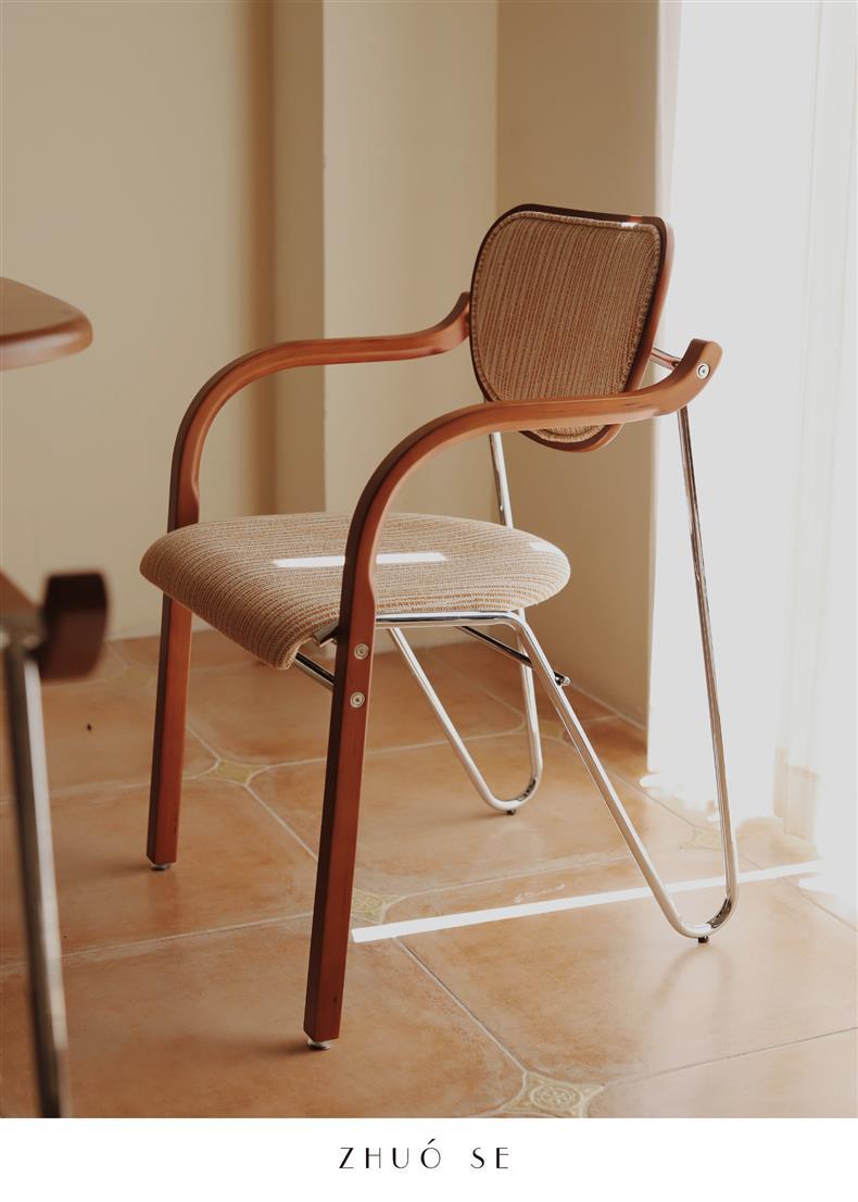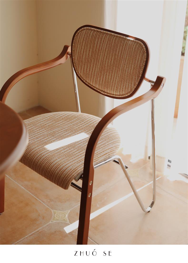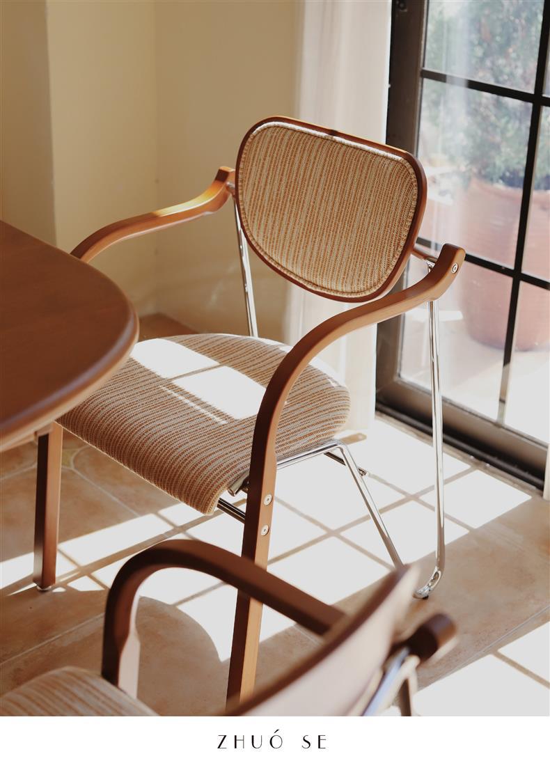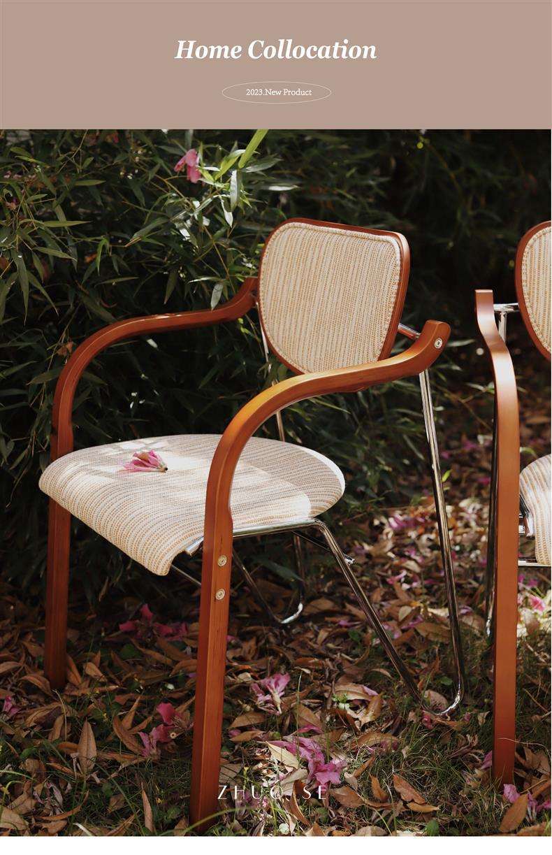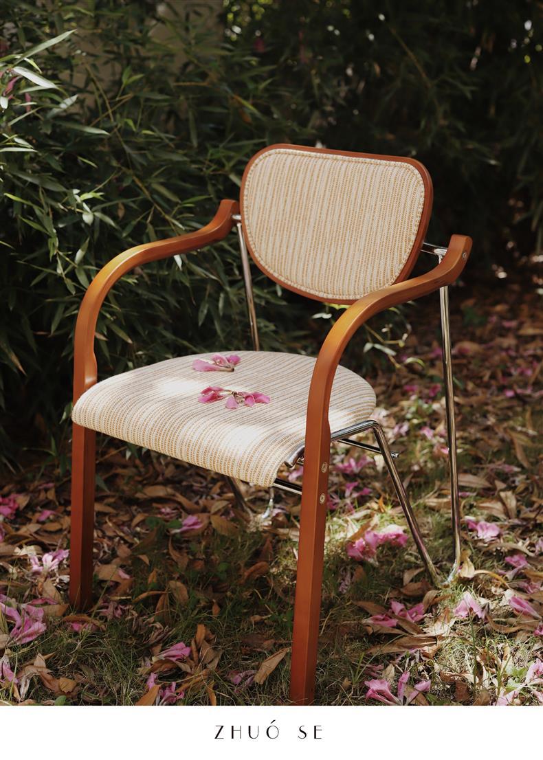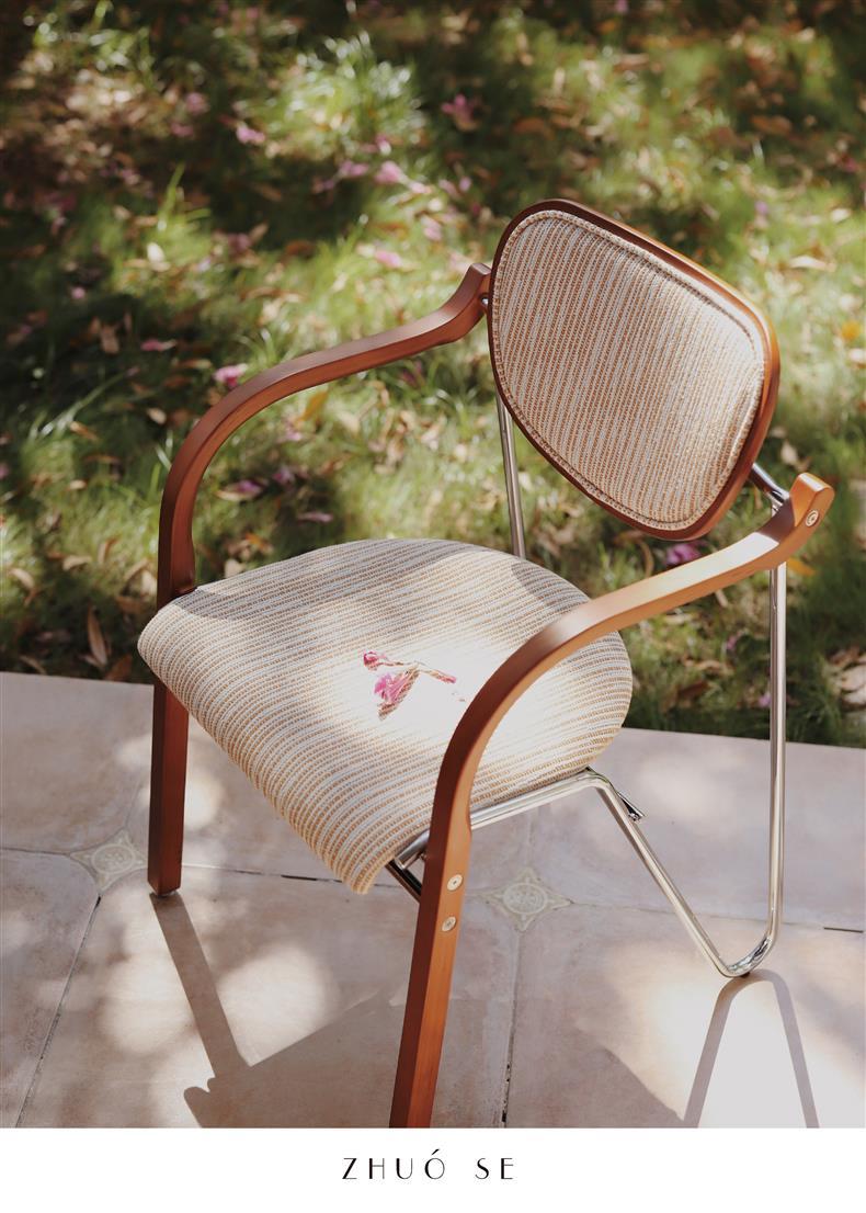Kursi makan retro Prancis warna oranye ZHUOS “Sunset”, kursi berlengan kayu solid berlapis kain, kursi santai kantor dengan sandaran