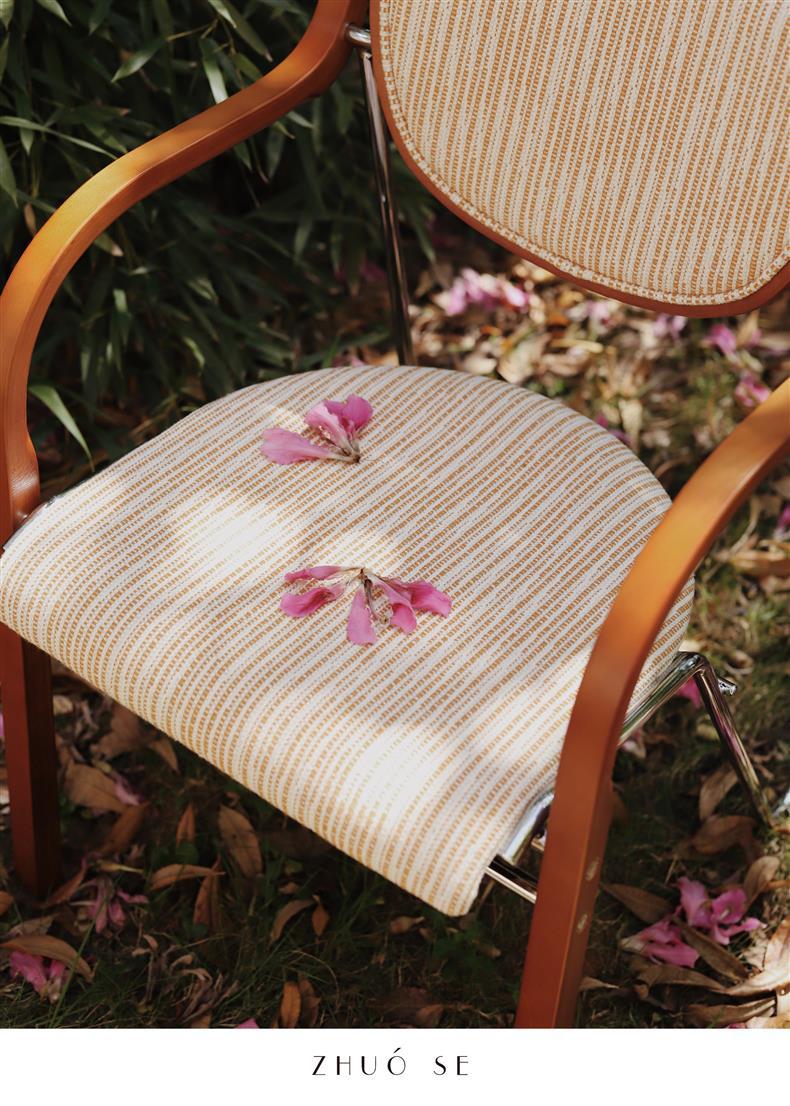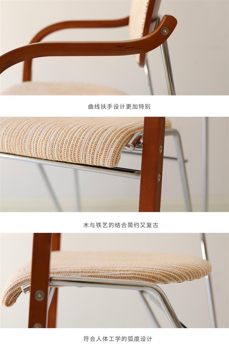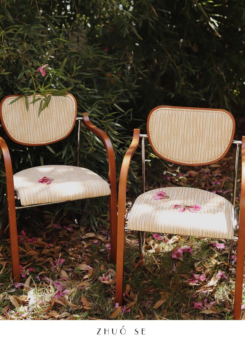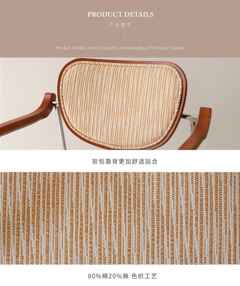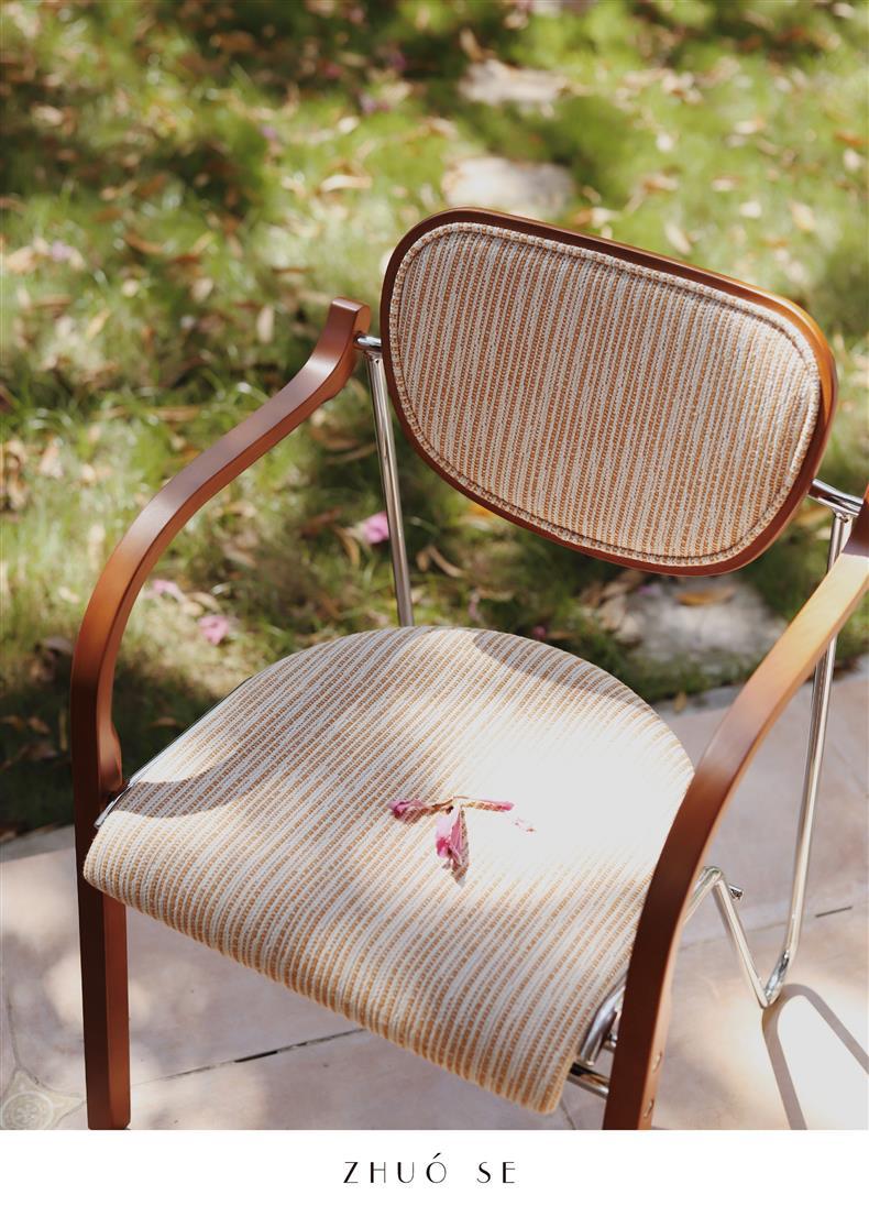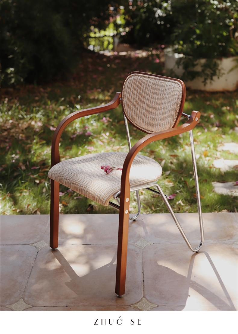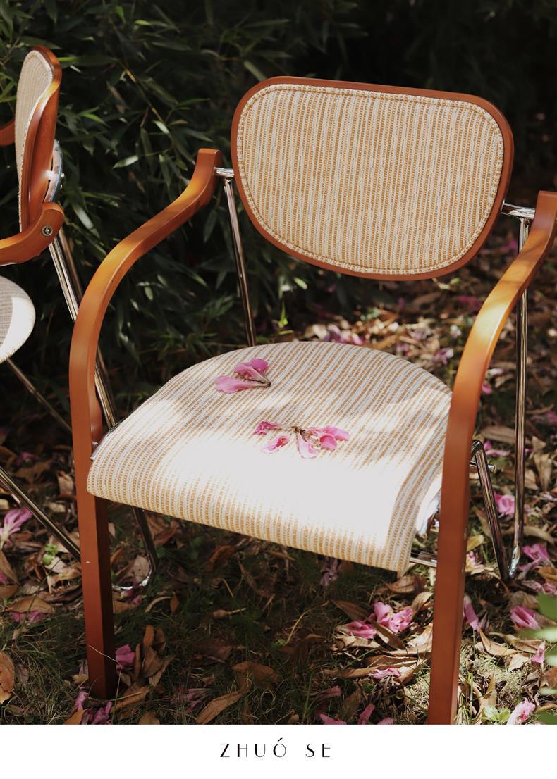 Kursi makan retro Prancis warna oranye ZHUOS “Sunset”, kursi berlengan kayu solid berlapis kain, kursi santai kantor dengan sandaran