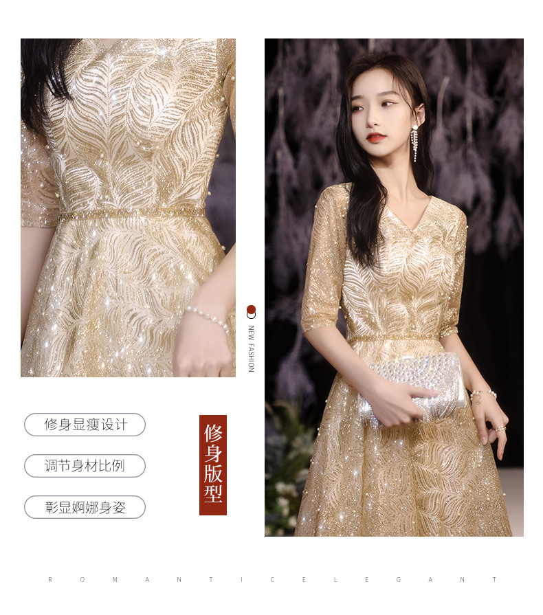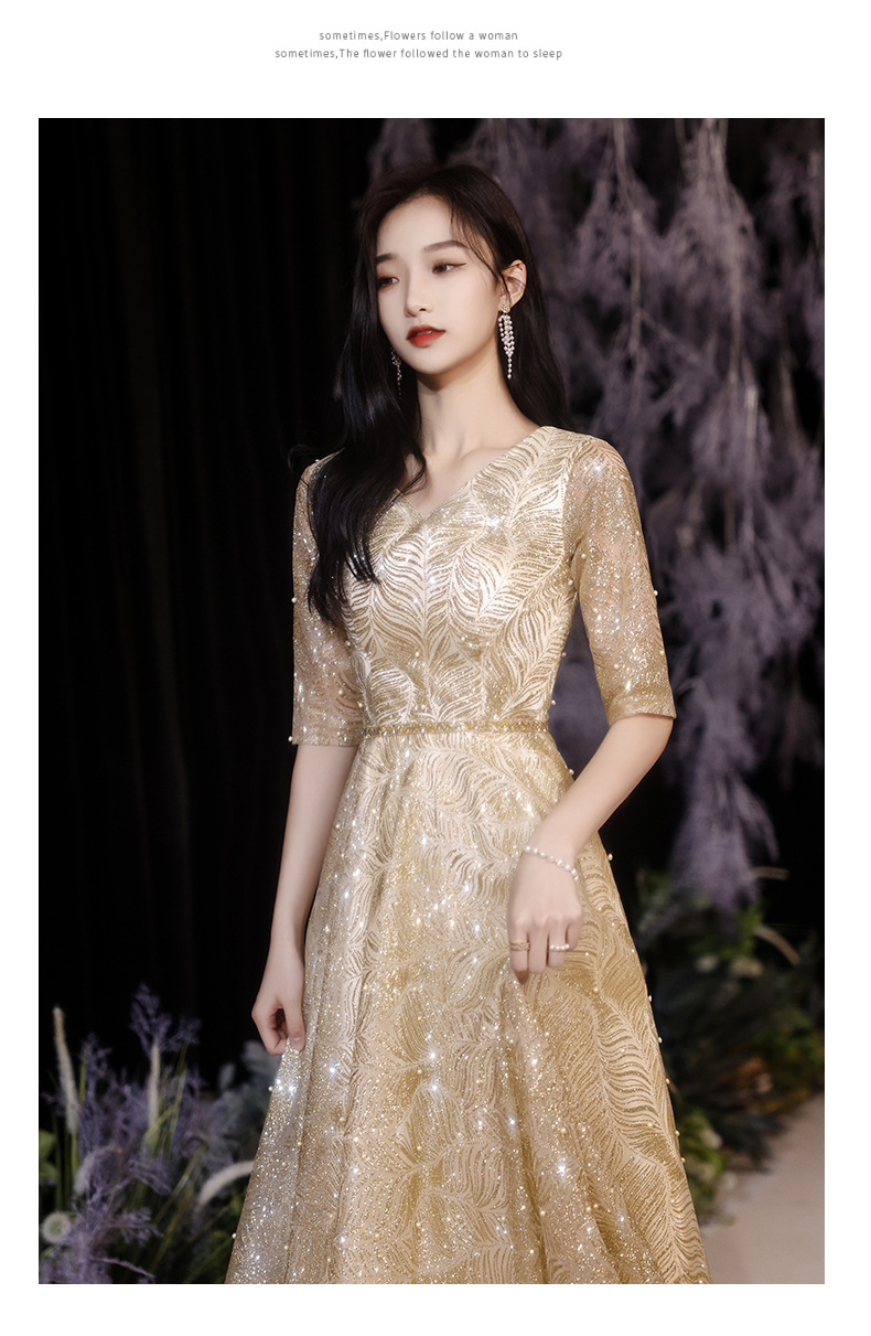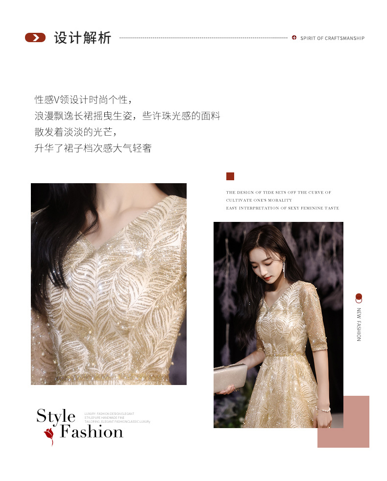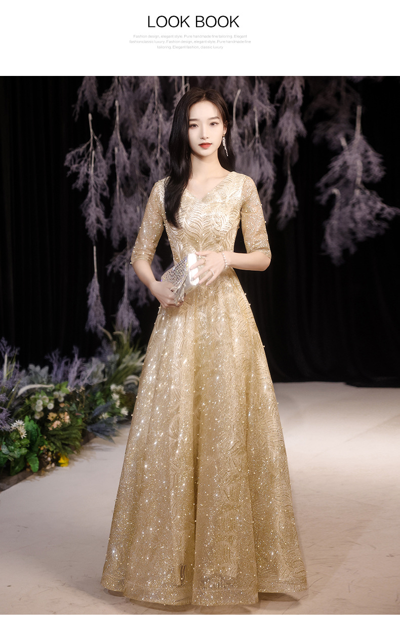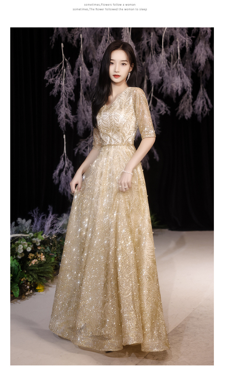 金色演出礼服连衣裙女宴会星空年会主持人大合唱团表演出晚礼服裙